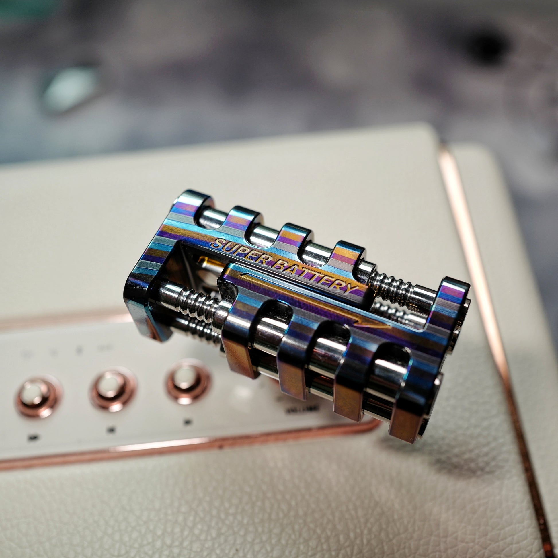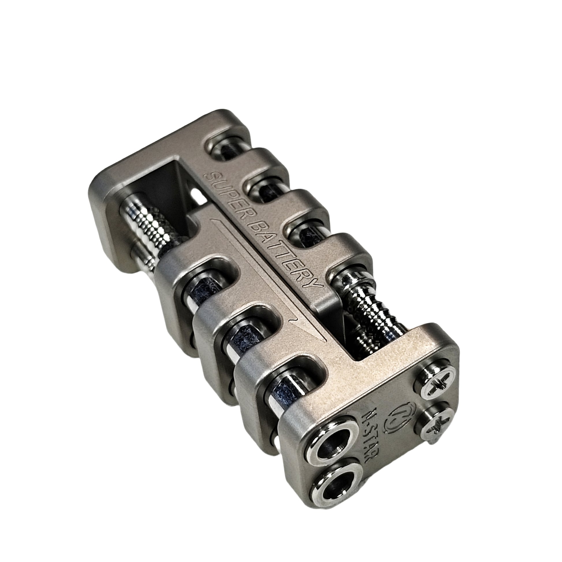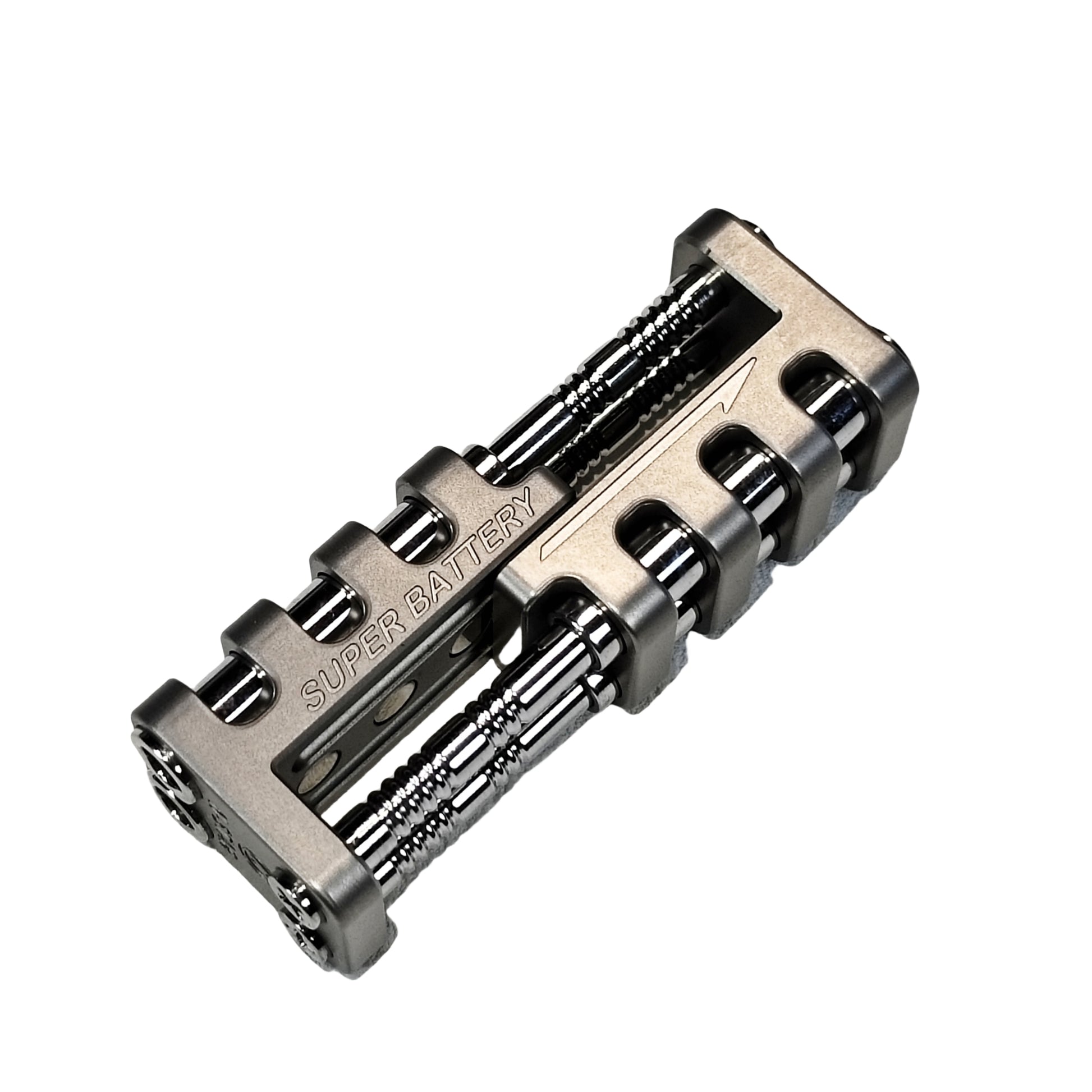 Super Battery is a kind of magnet slider. This is a science fiction style design. The overall design is rugged. All edge lines have been rounded and will not cut hands. The irregular symmetrical structure makes Super Battery appear more technological.