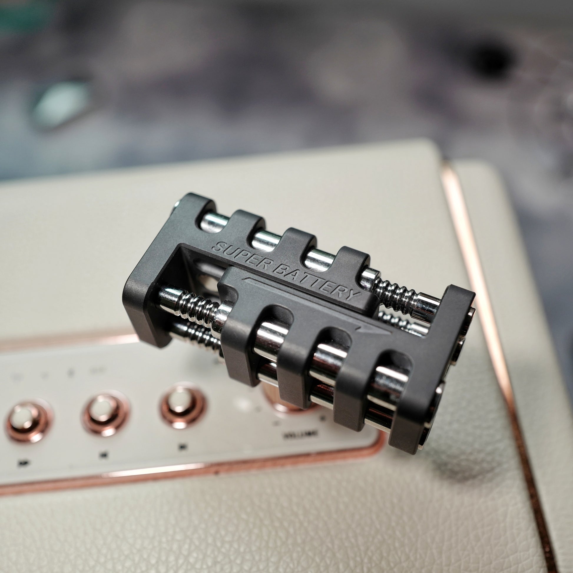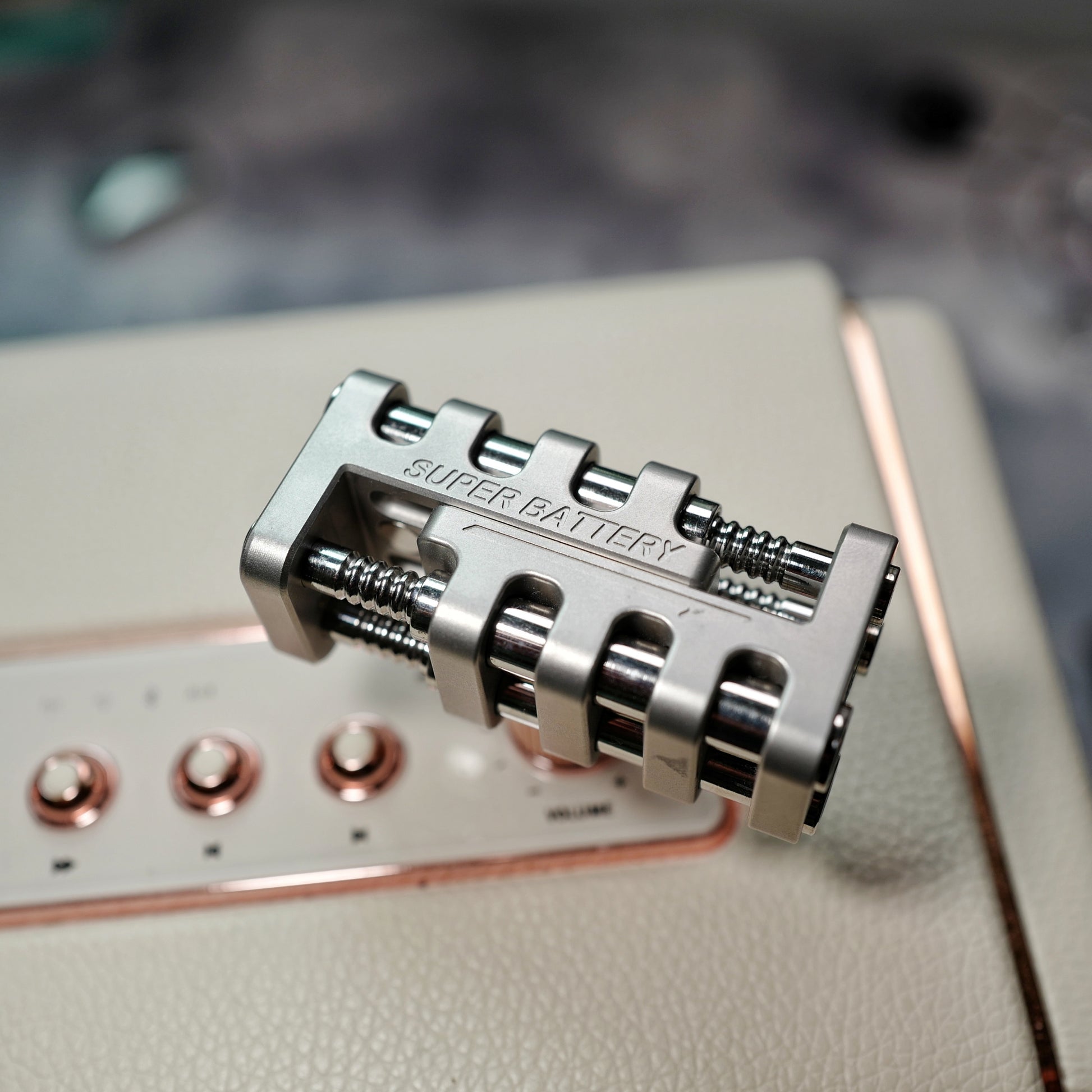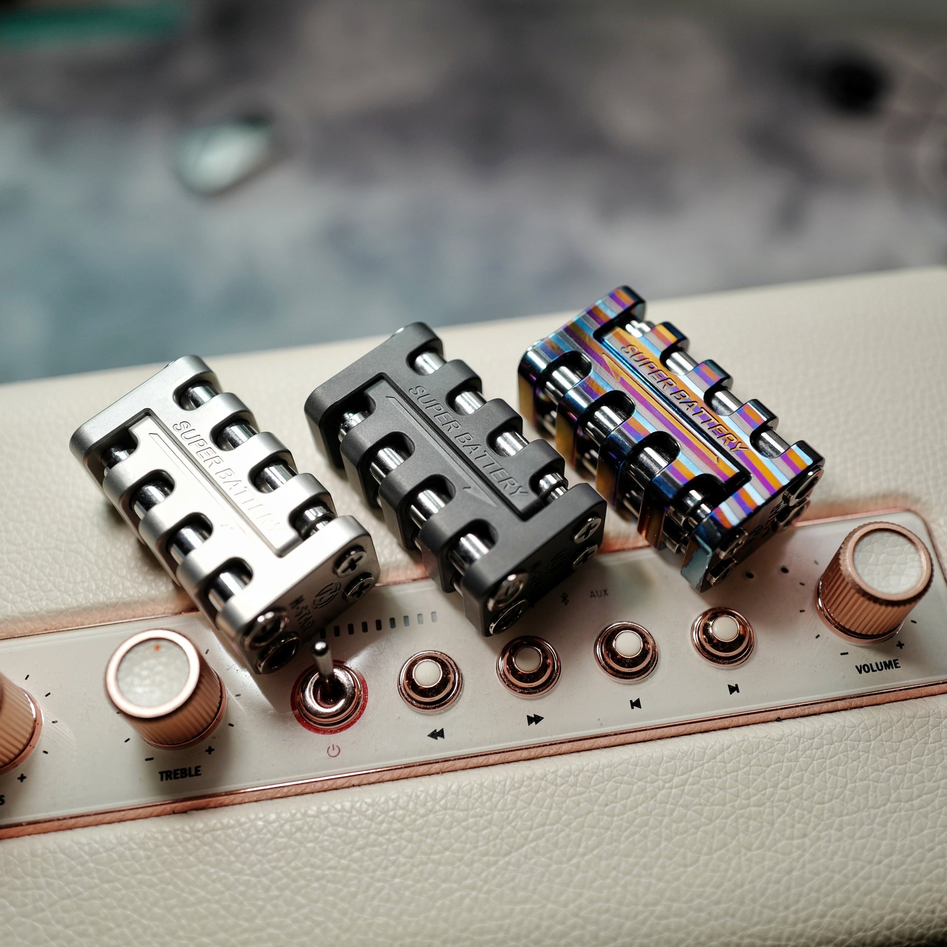 Super Battery is a kind of magnet slider. This is a science fiction style design. The overall design is rugged. All edge lines have been rounded and will not cut hands. The irregular symmetrical structure makes Super Battery appear more technological.