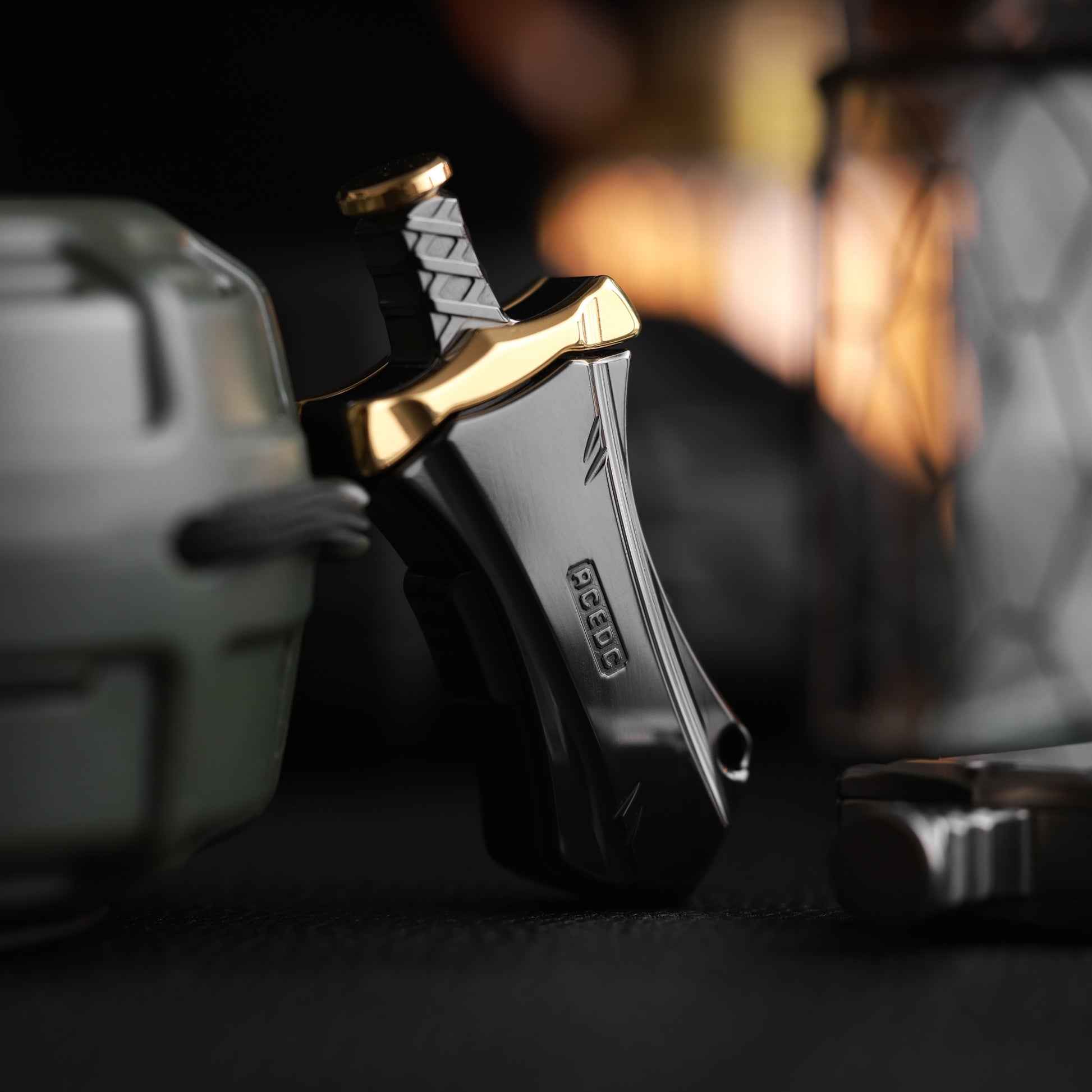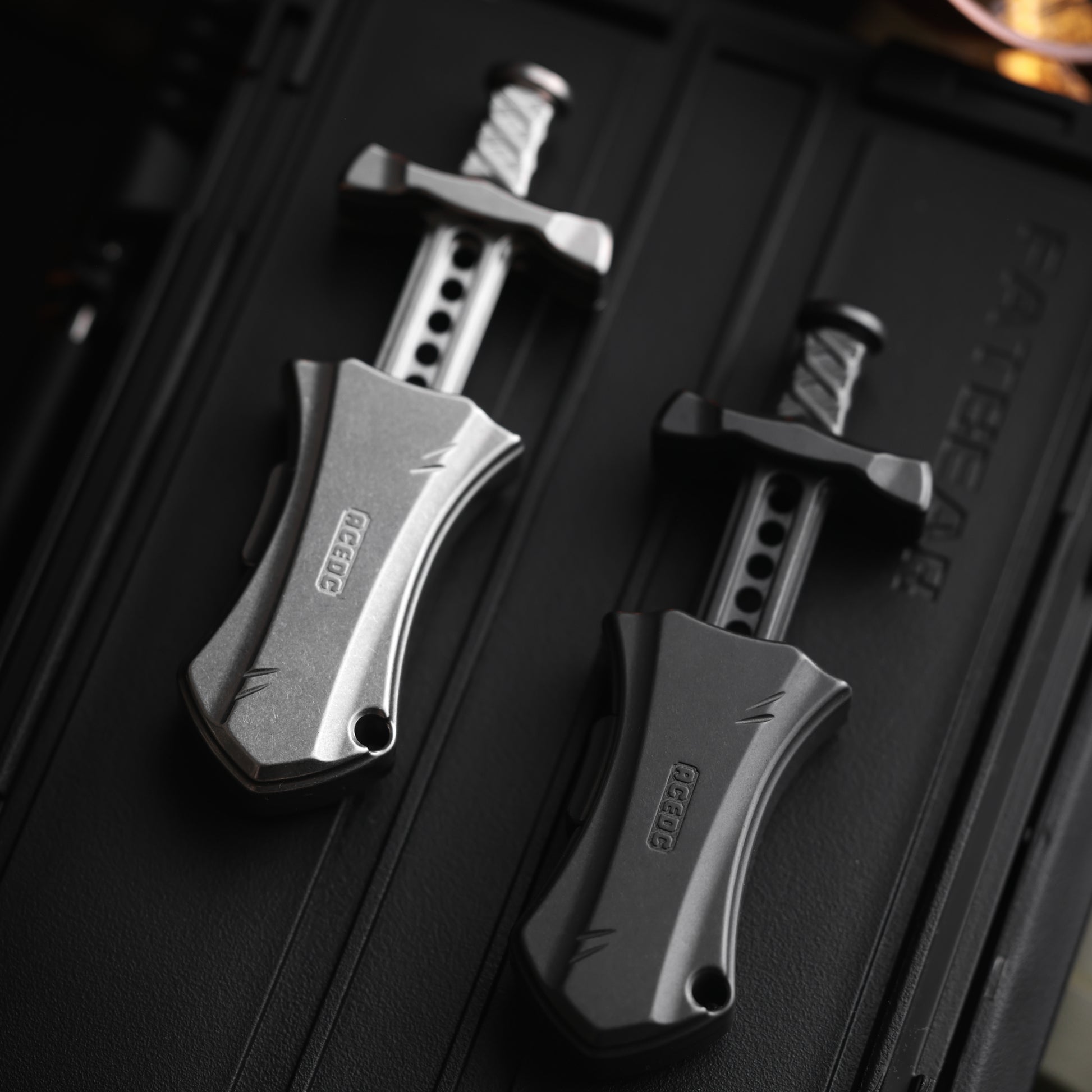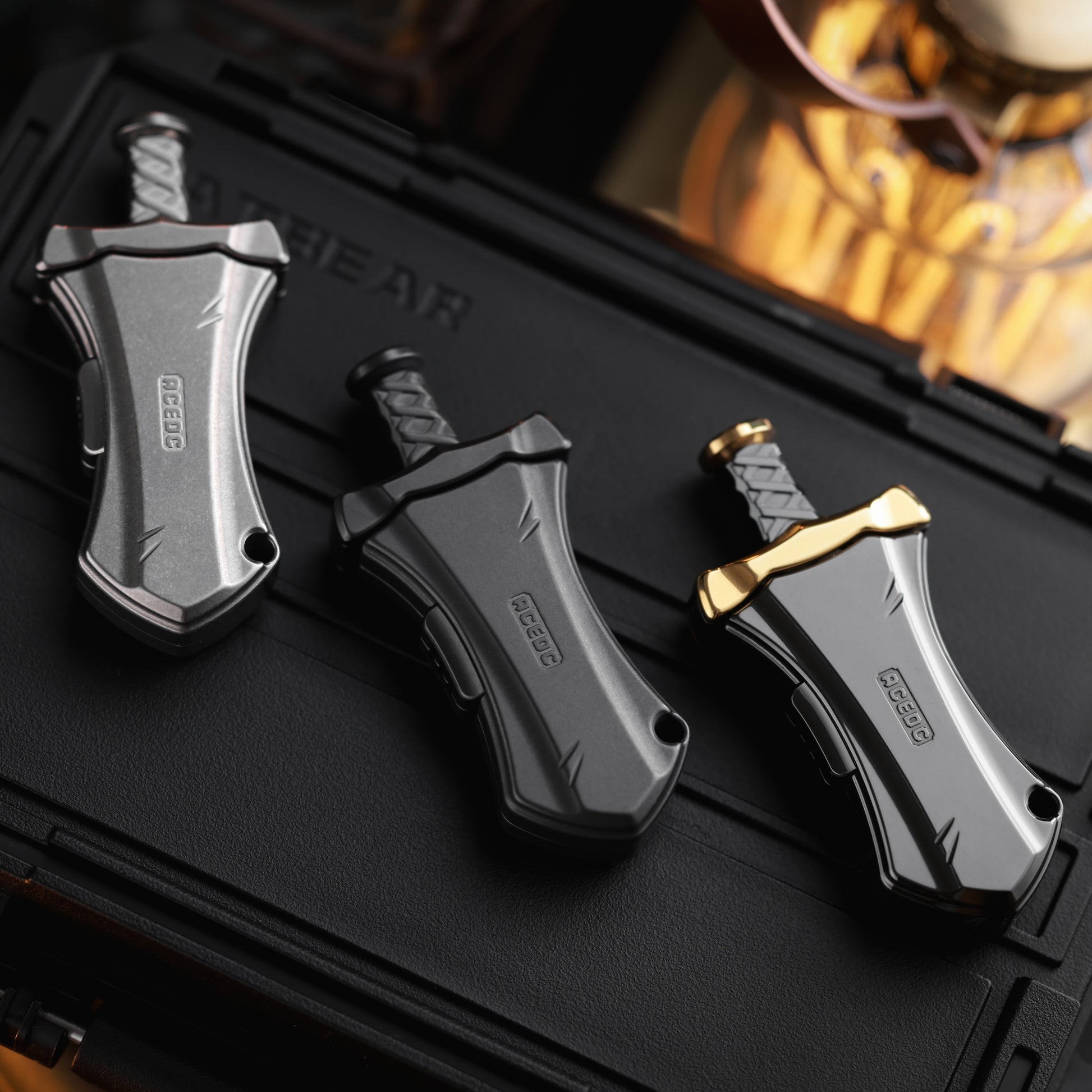 Master Sword is a mechanical bouncing EDC. Compact in design, so it can be carried around in the pocket. Press the side button and the blade will pop out. When pressing the handle, you will feel clear paragraph feedback and crisp sound. There are a total of 8 paragraphs. When locked to the bottom, there is a wonderful magnetic touch. If not pressed to the bottom, the blade will continue to pop out when released. The blade cannot be completely pulled out.