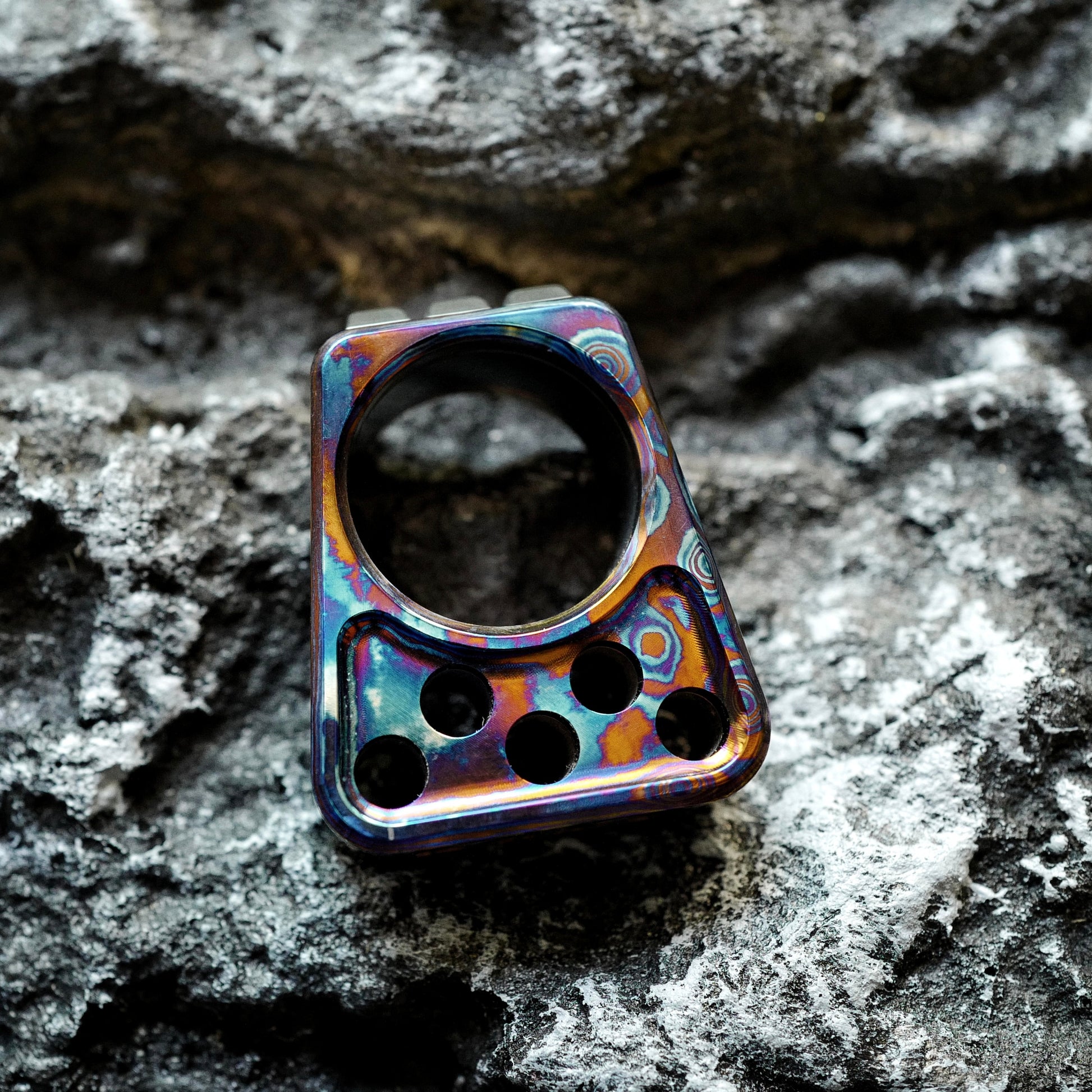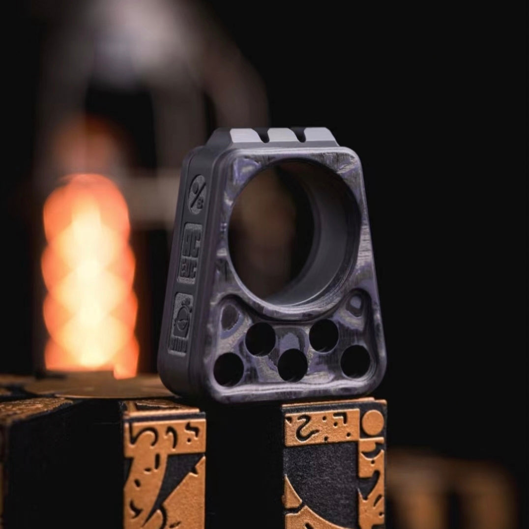 The top is the head shape of Dino, a little chicken. The shape of multiple holes is Dino's design language, taken from cheese. The compact design ensures that the middle finger is tightly pressed against the bottom of the knuck during grip, making it more stable and less prone to injury to the hand. The edge of the finger hole has been further reduced to avoid the uncomfortableness between the index and ring fingers.