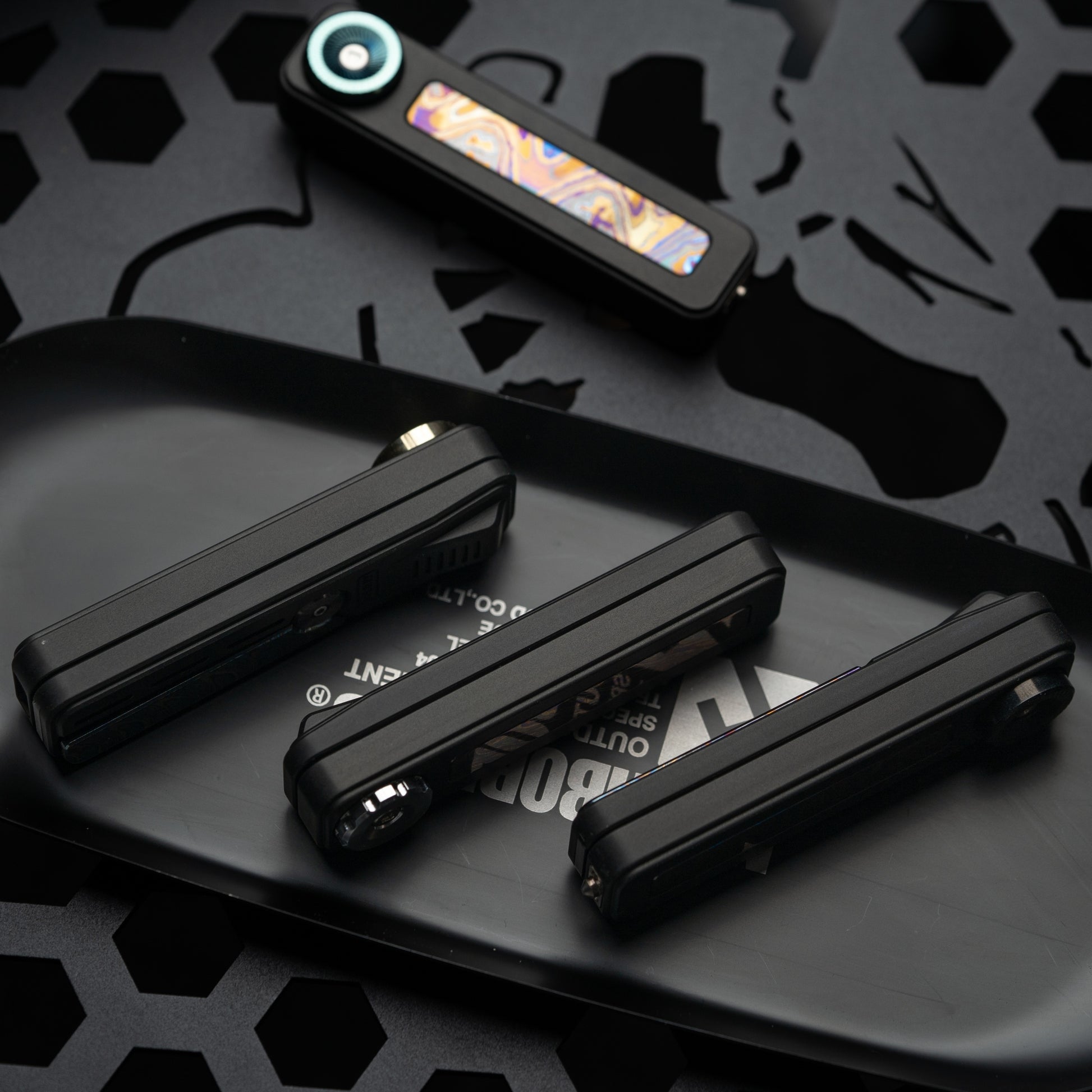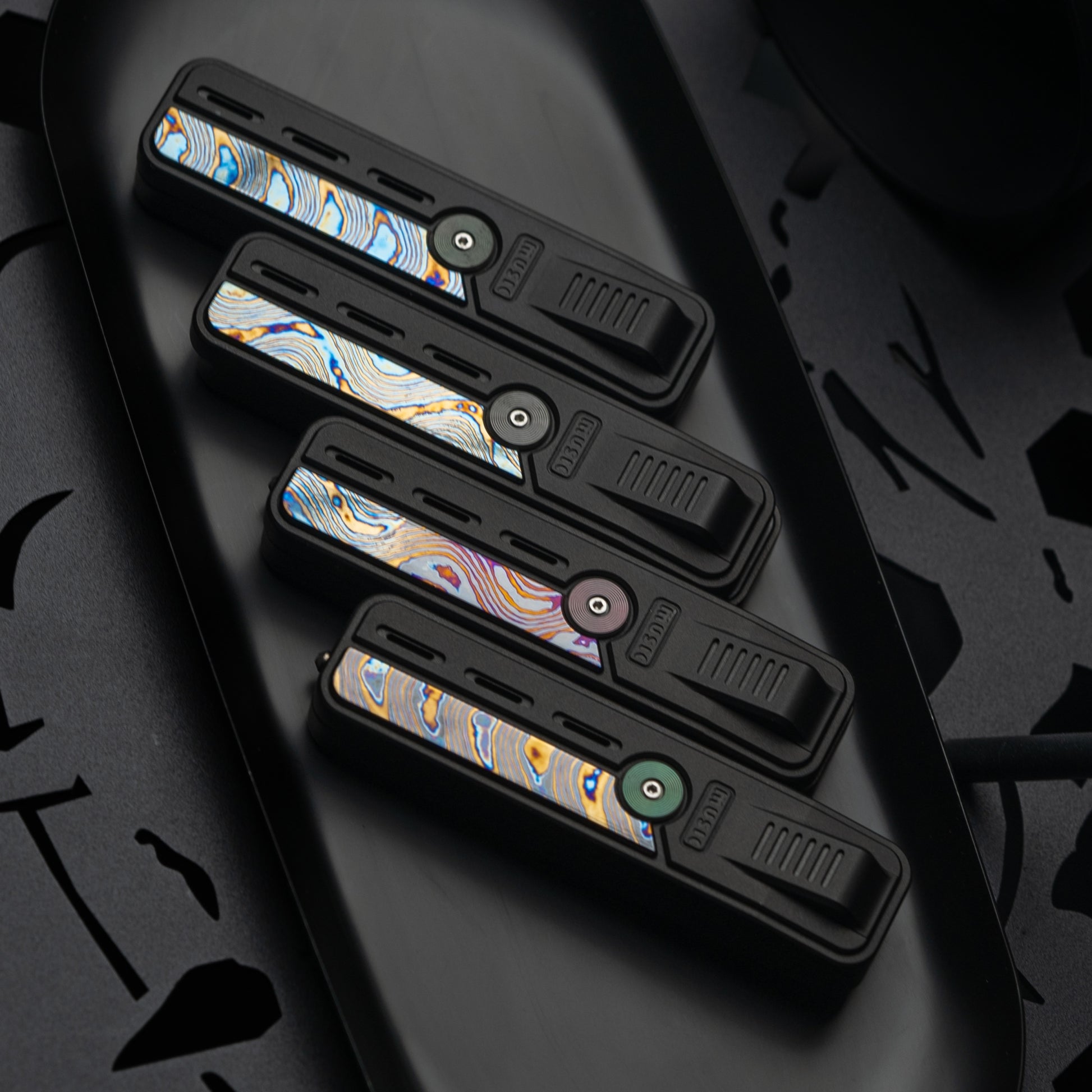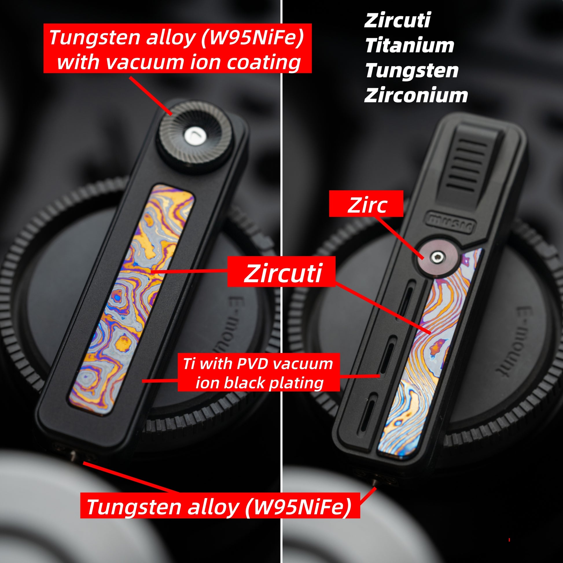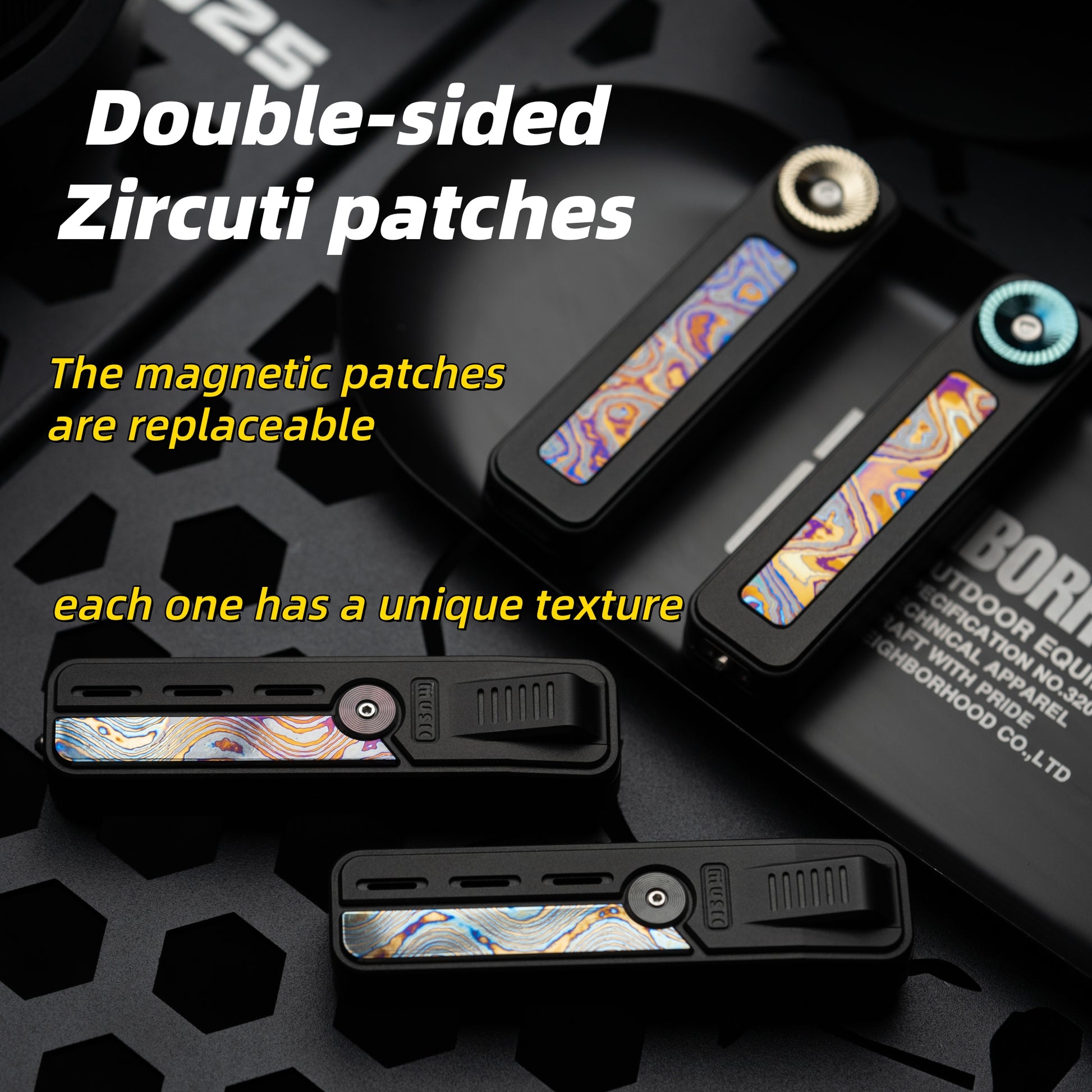 The main body is made of titanium alloy with PVD vacuum ion black plating. Both sides are inlaid with Zircuti patches, each one has a unique texture. The patches are attached by magnets and can be replaced. In the future, the official will also release various collection patches made of different materials, as well as engraved and inlaid versions for everyone to choose from.