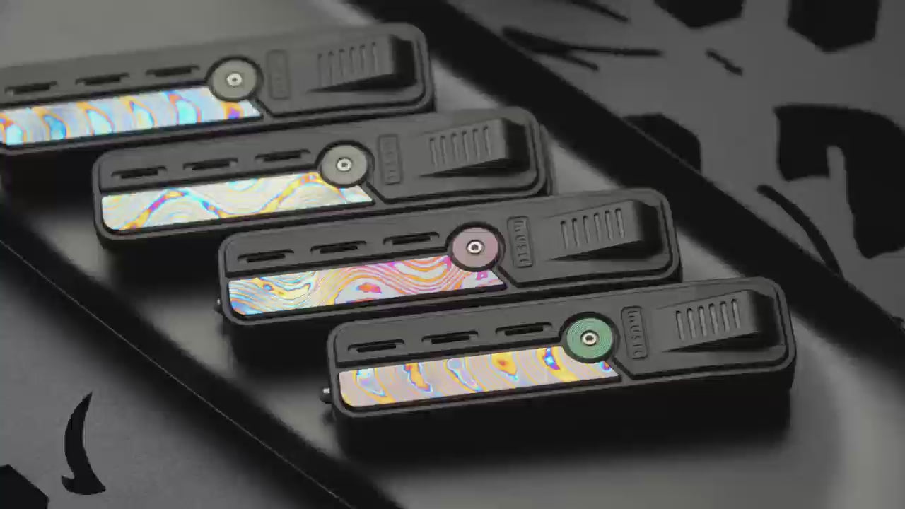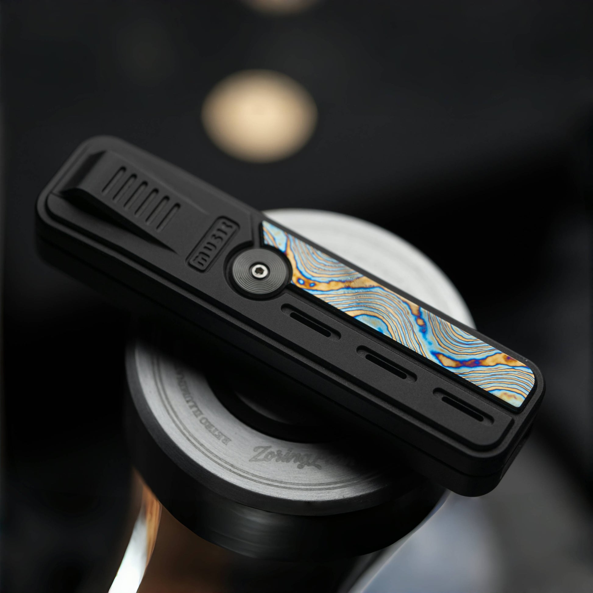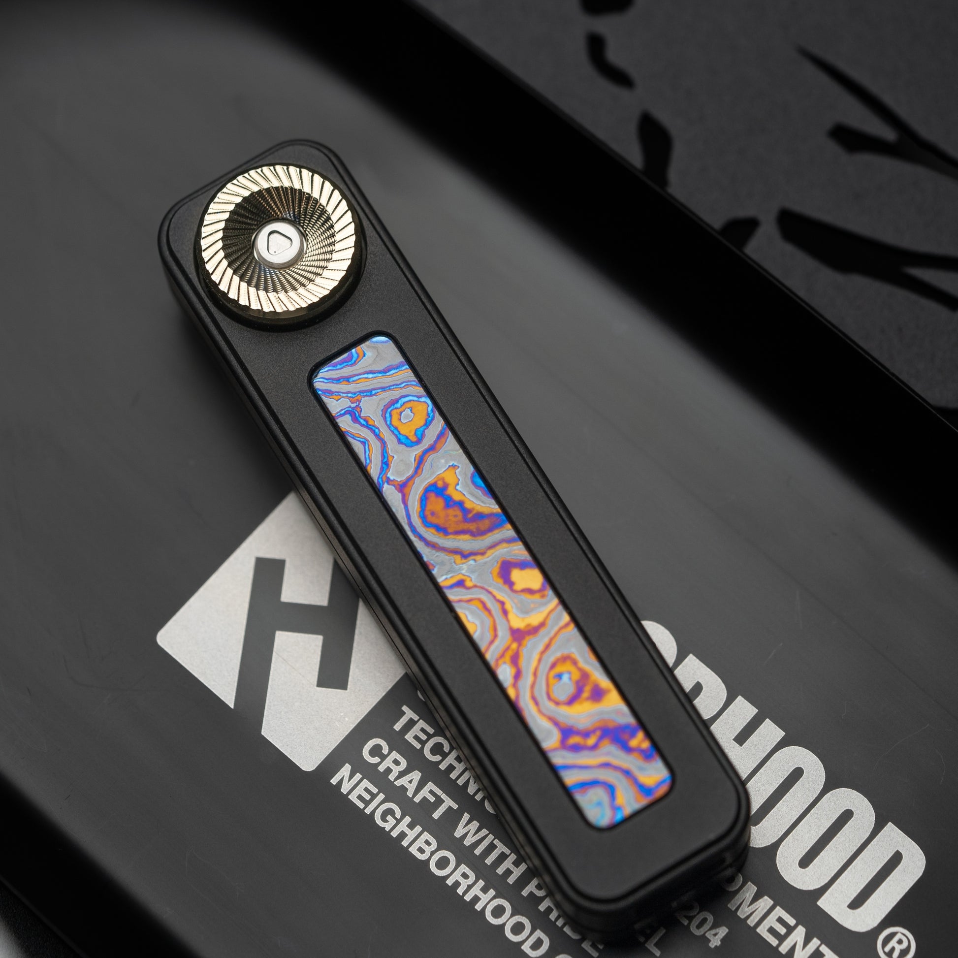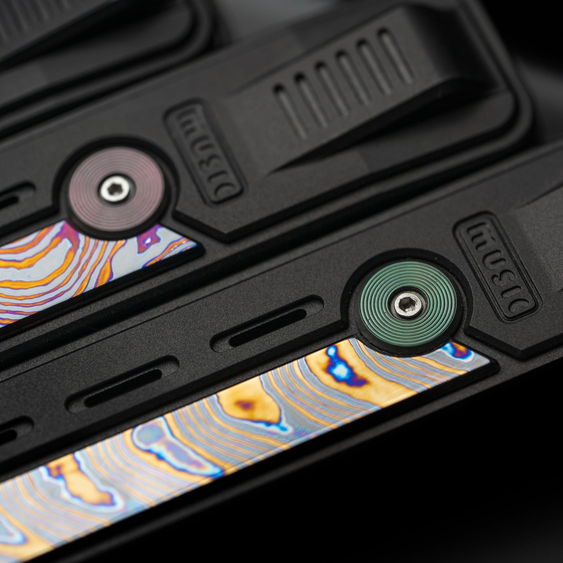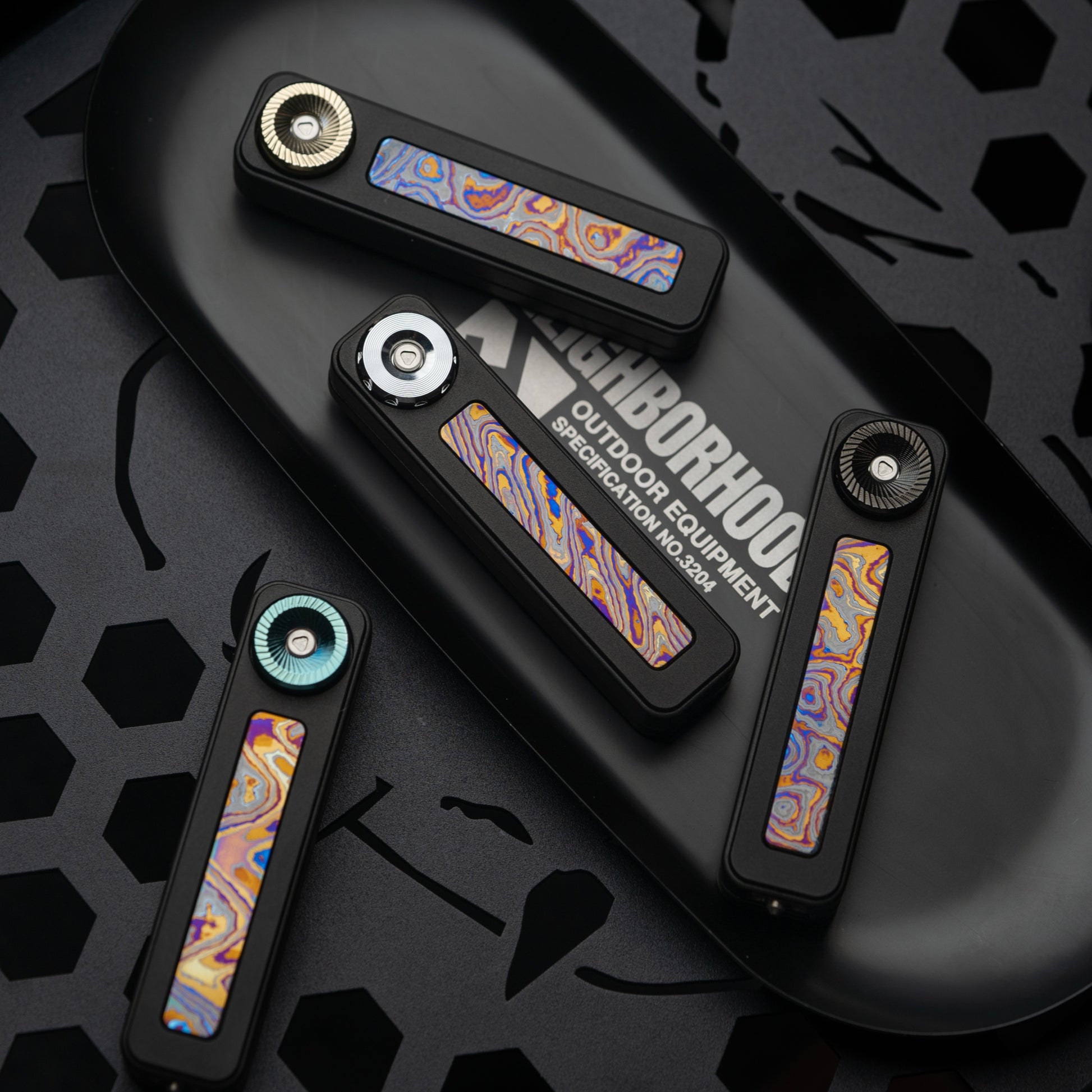 The main body is made of titanium alloy with PVD vacuum ion black plating. Both sides are inlaid with Zircuti patches, each one has a unique texture. The patches are attached by magnets and can be replaced. In the future, the official will also release various collection patches made of different materials, as well as engraved and inlaid versions for everyone to choose from.