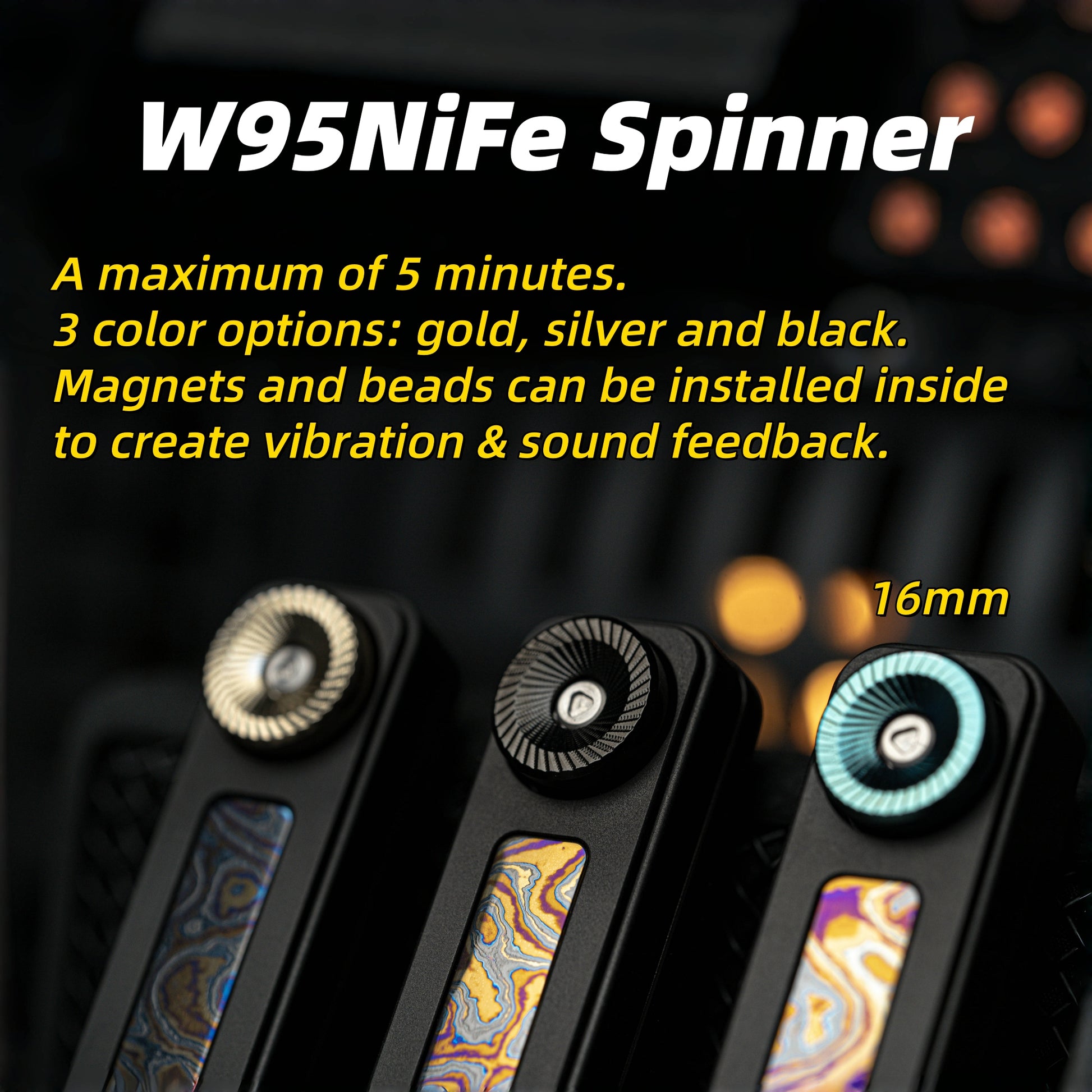 The mini spinner made of W95NiFe material has a diameter of 16mm. Due to its special structure and precisely designed weight distribution, it can spin for up to five minutes (the time may vary depending on individual strength and techniques). The strong sense of vibration, extremely small size, and high-speed spinning form a strong contrast, bringing people a brand-new paradoxical experience. The mini spinner can have 4 magnets built-in. With different magnetic pole distributions, different linkage effects will be produced when playing with the main body. Different materials of beads or Buckyballs can be placed in the grooves between the spinner and the main body, which will produce different sound responses and tactile feedback.