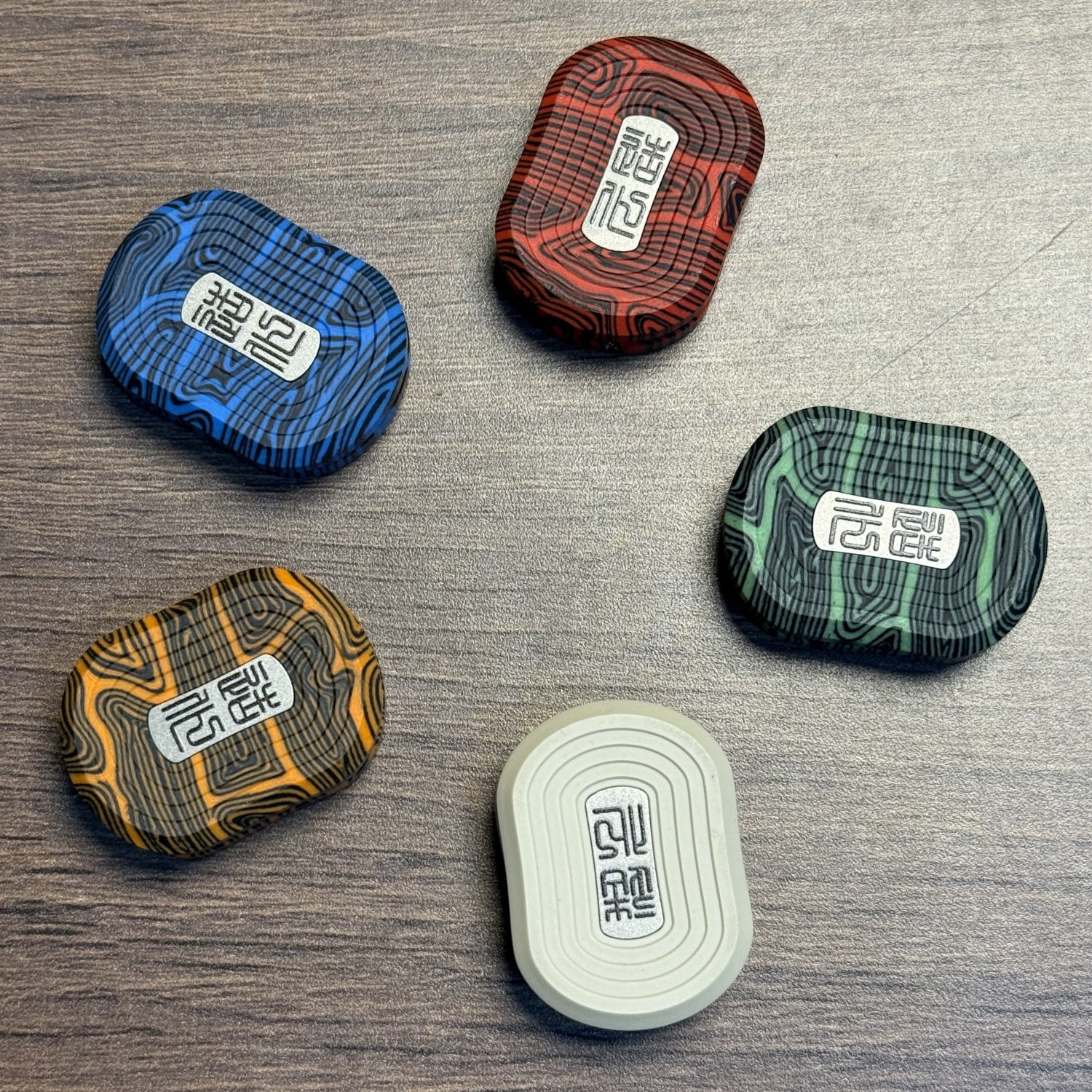 It will be released in the form of mystery boxes, with a total of five variants available. Among them, the beige one is crafted from PEEK, while the orange, green, blue and red variants are made of G10 Damascus.
