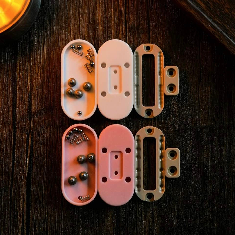 TopB is a mechanical slider. Small and portable in size. This series has produced many different materials and patterns. By replacing the inner plate, springs, and beads, different tactile sensations can be adjusted.