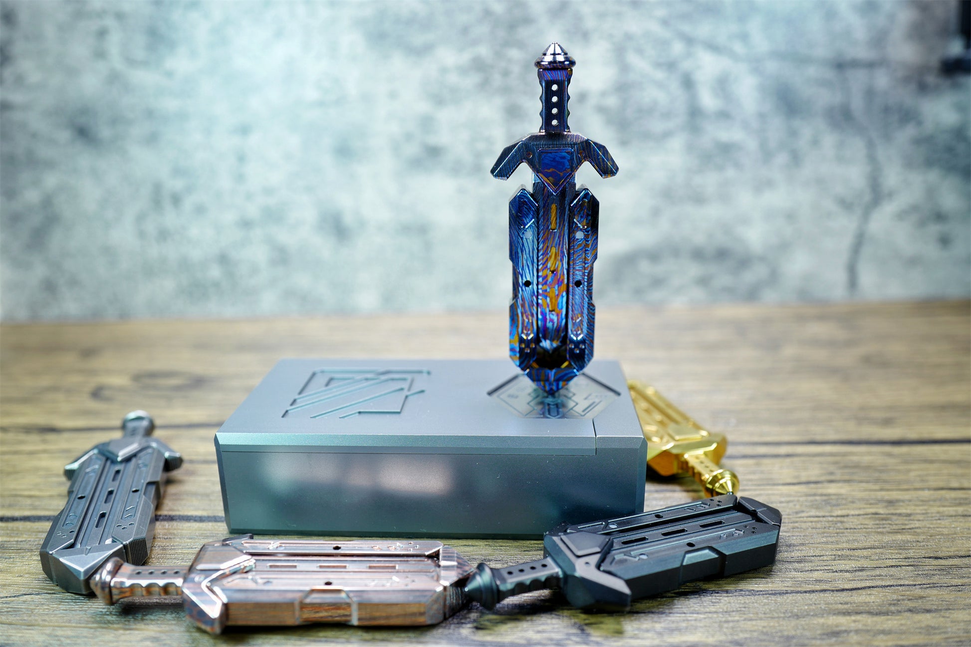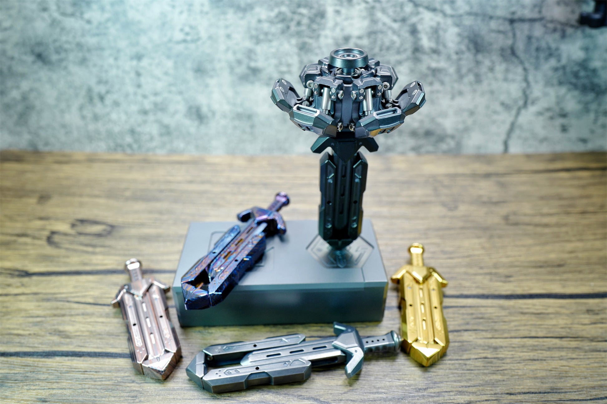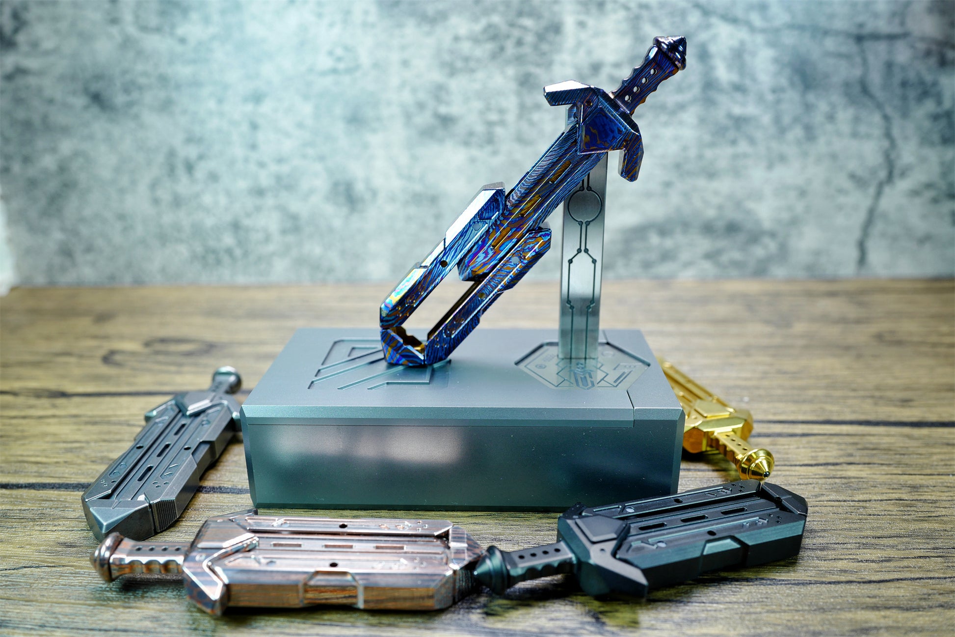 The design of inspiration comes from GUNDAM. The name of the Archangel Sword also refers to the Archangel battleship in SEED. The sense of technology, lines, and layers make Michael's overall appearance present a unique mecha style. All screws are designed with a hidden design. The screws at the tip of the scabbard are fixed from the inside side. The screws of the sword handle are hidden under the gem stones. The end of the sword handle is a broken window cone.
