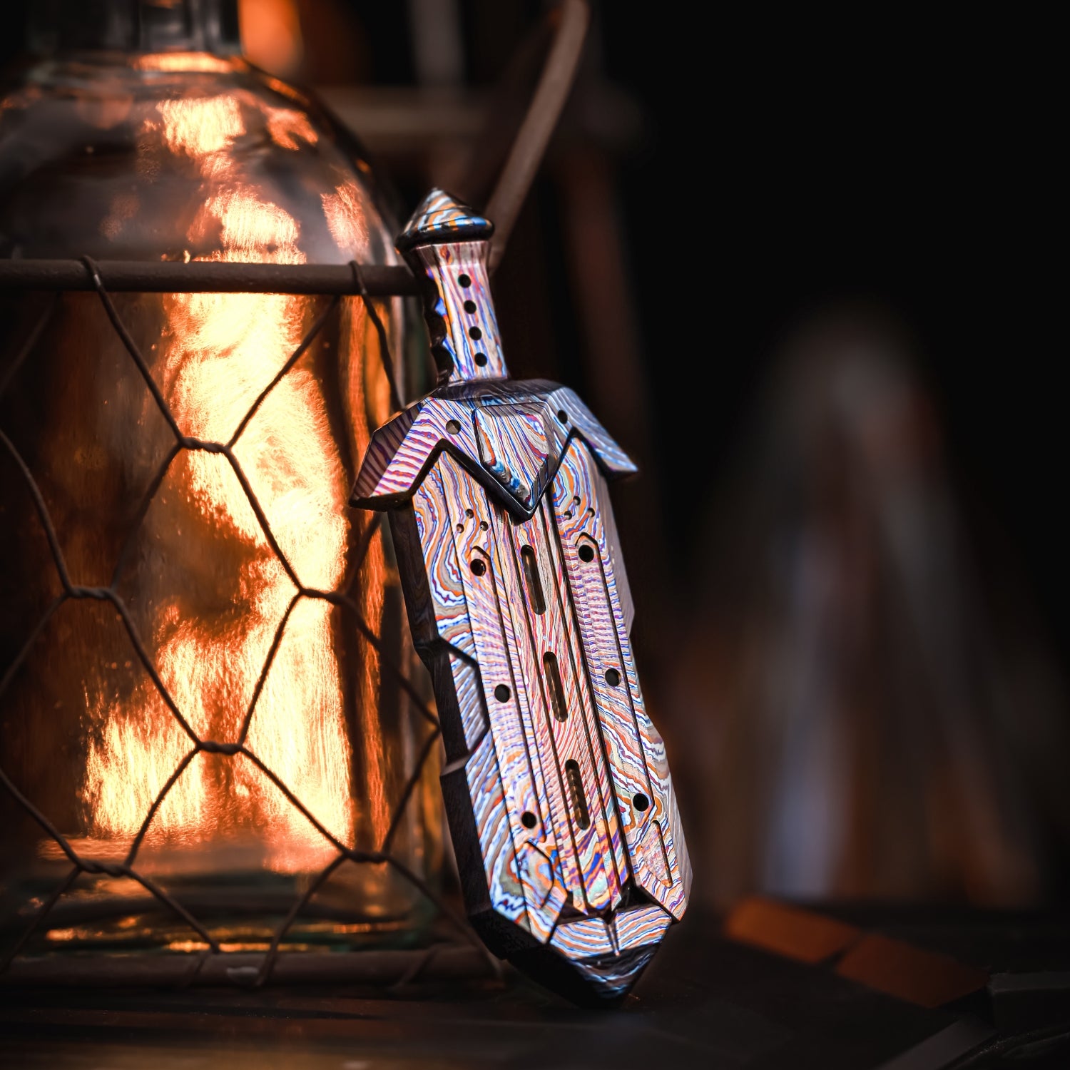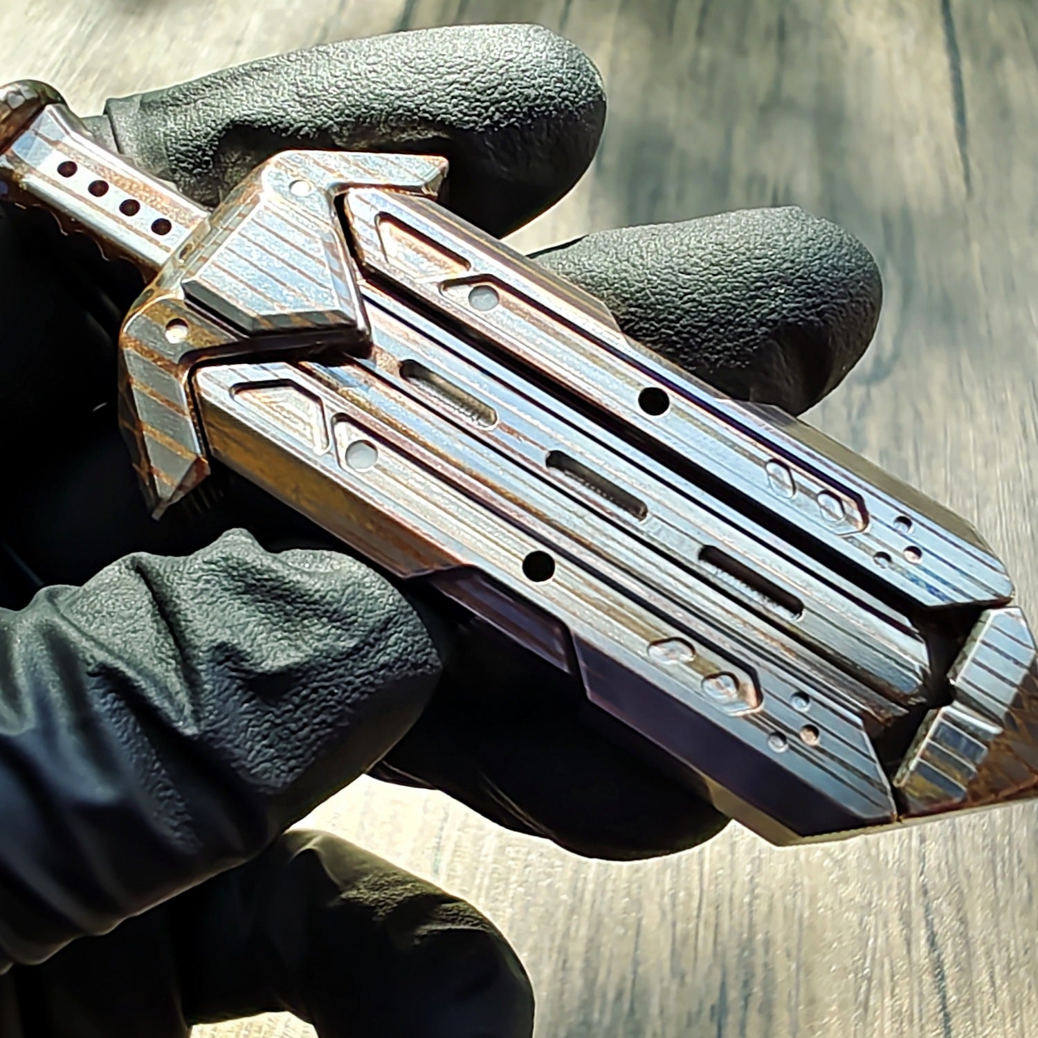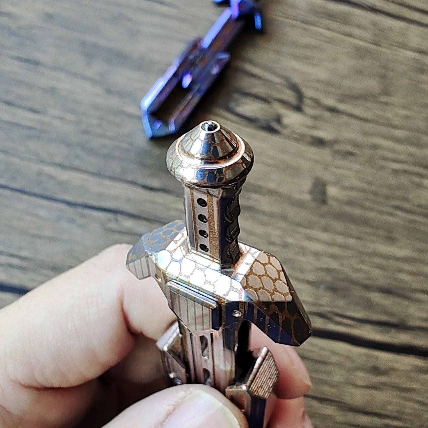 The design of inspiration comes from GUNDAM. The name of the Archangel Sword also refers to the Archangel battleship in SEED. The sense of technology, lines, and layers make Michael's overall appearance present a unique mecha style. All screws are designed with a hidden design. The screws at the tip of the scabbard are fixed from the inside side. The screws of the sword handle are hidden under the gem stones. The end of the sword handle is a broken window cone.