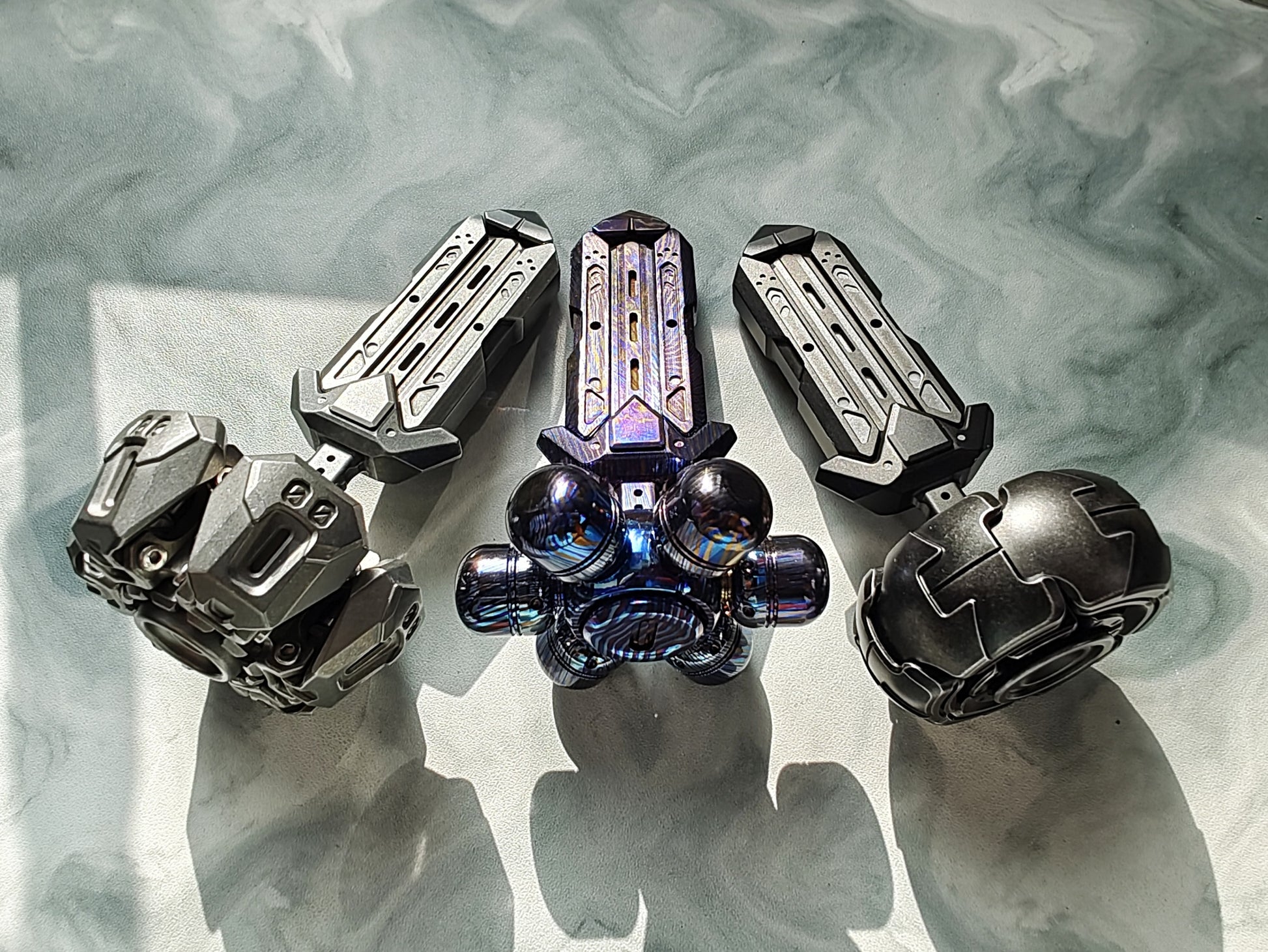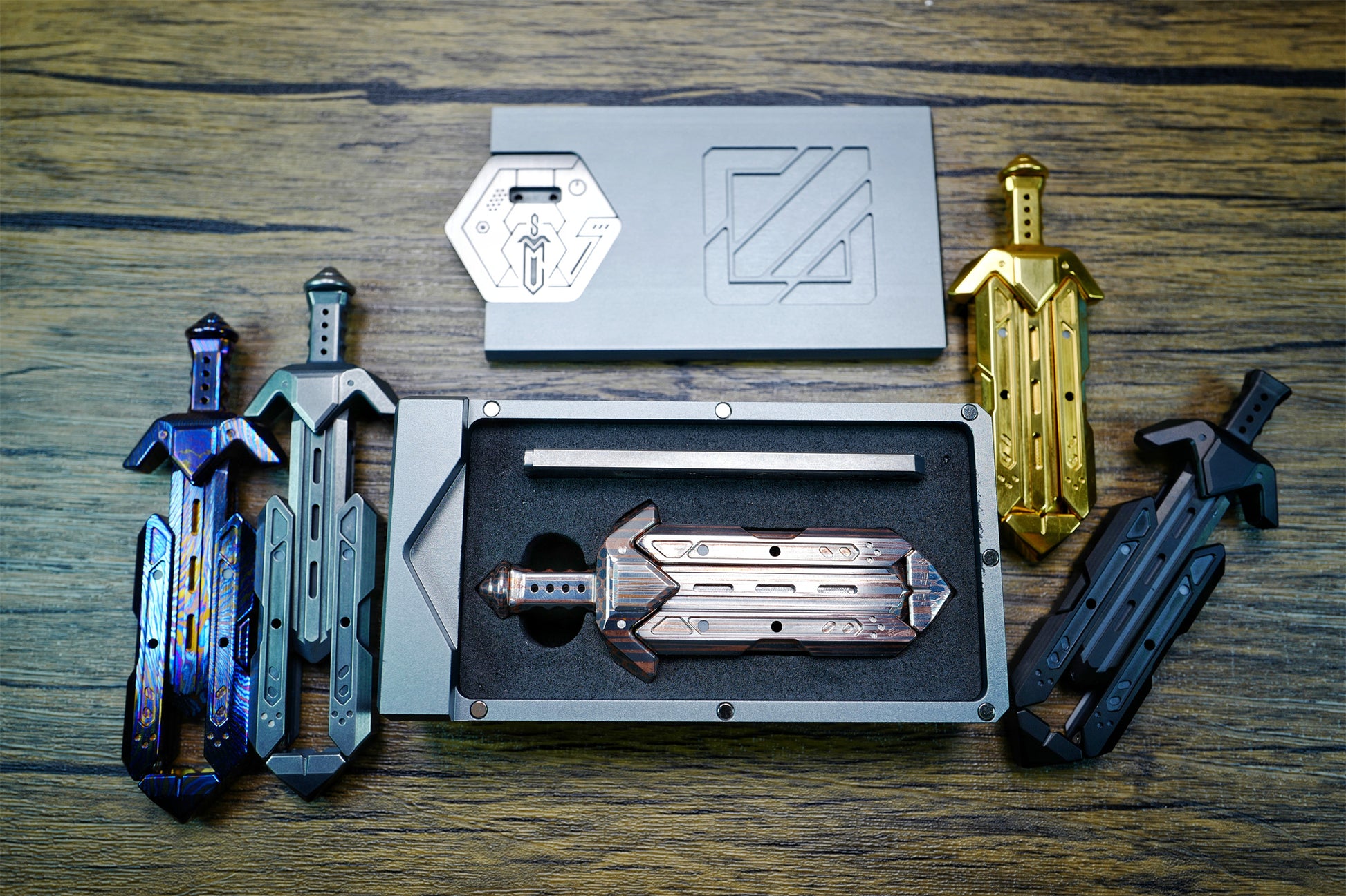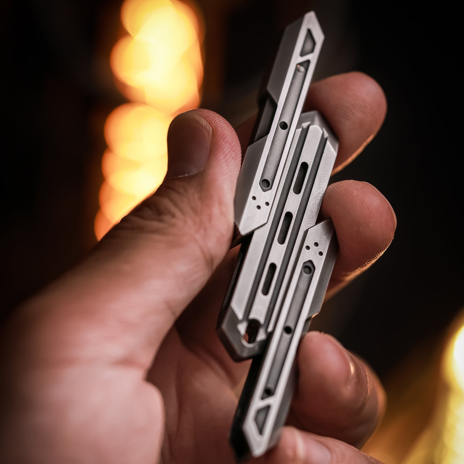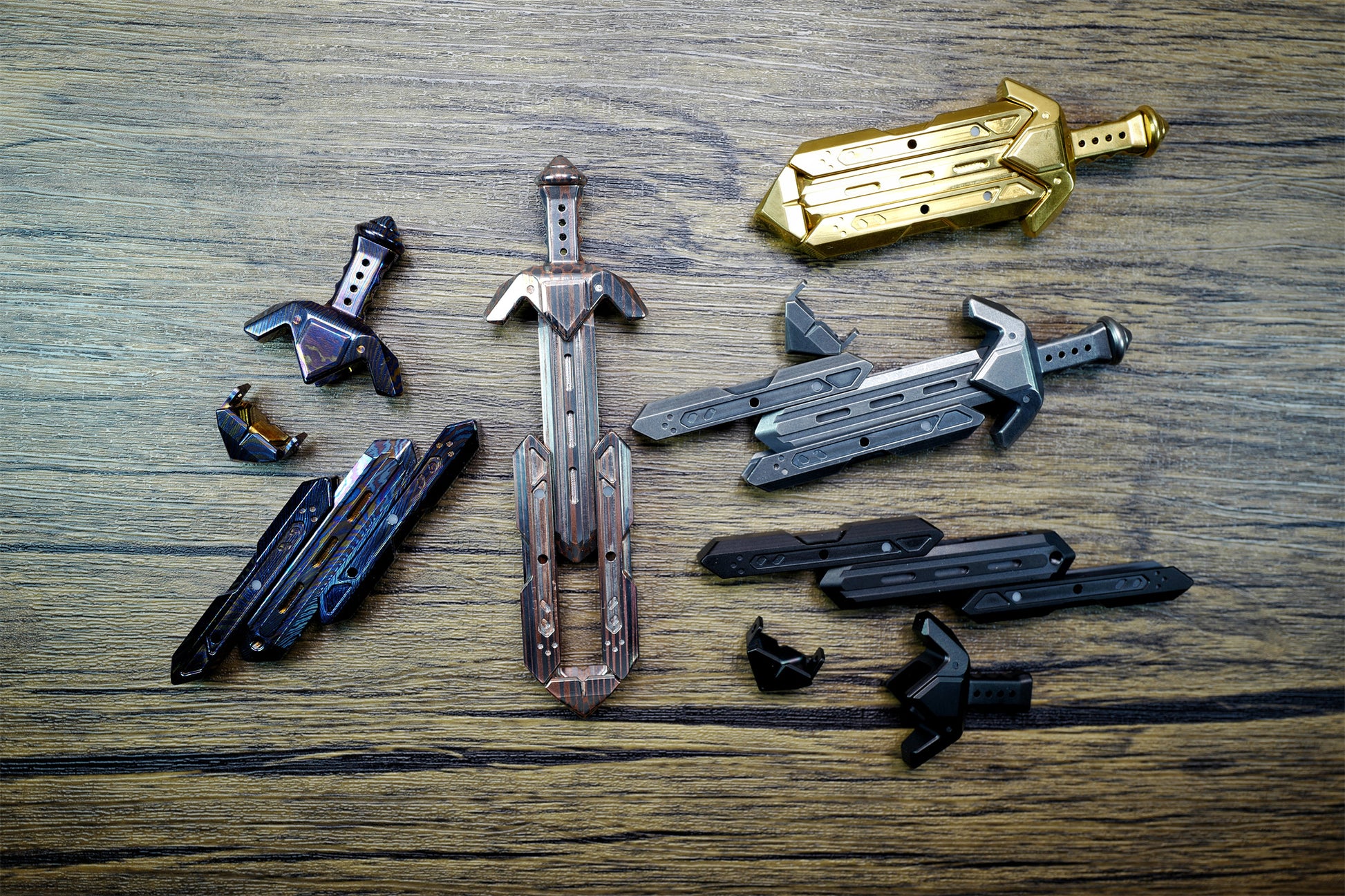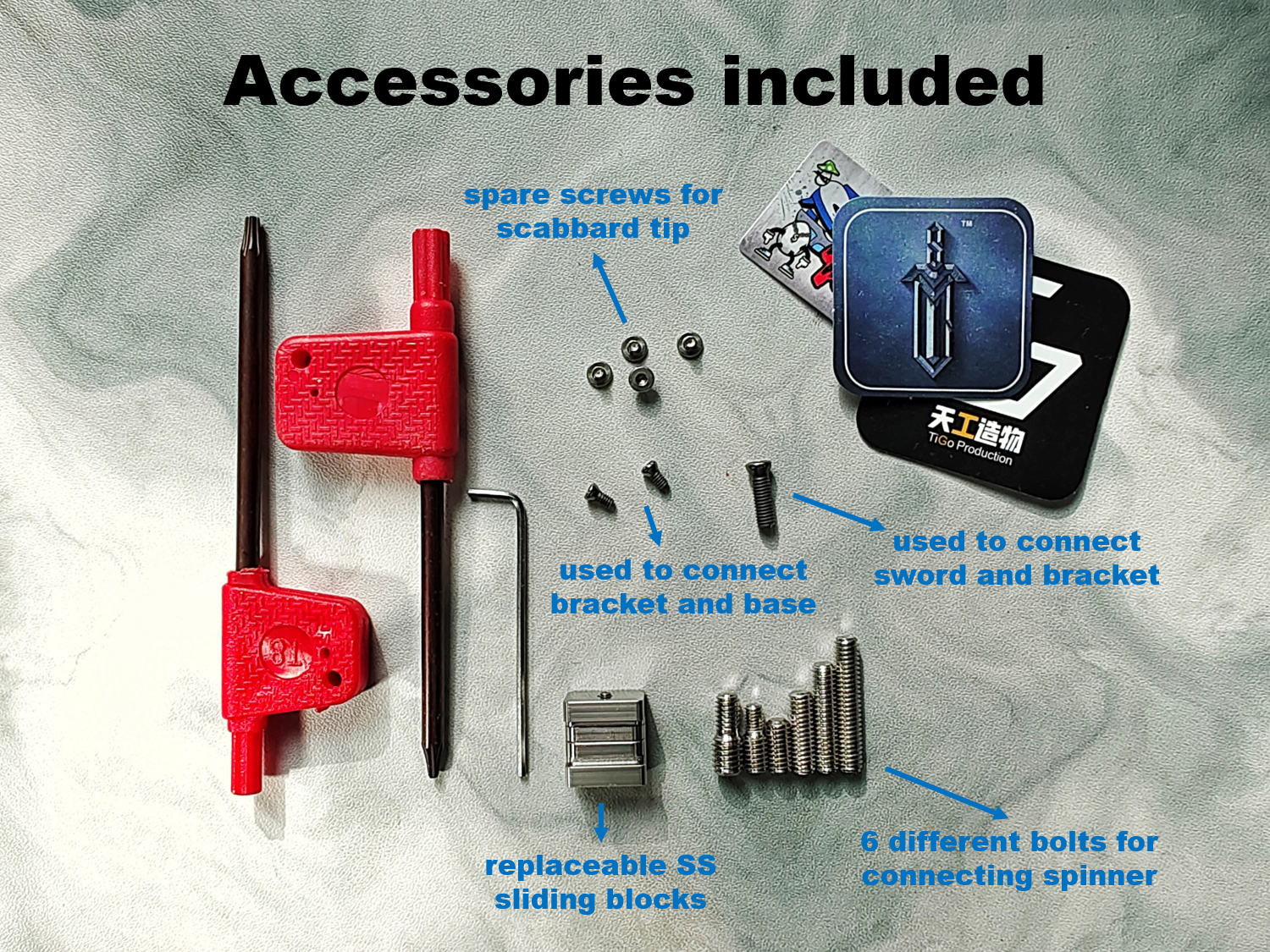 - Form 2: Rail gun Form. Use screwdriver to remove the handle and scabbard tip, turn the direction of one side of the scabbard, then it becomes a slider. By changing the fixed position of the internal sliding blocks, a two-way 2-segment or one-way 4-segment push gameplay can be achieved. You can also replace the Teflon sliding blocks with SS ones to experience different tactile sensations.