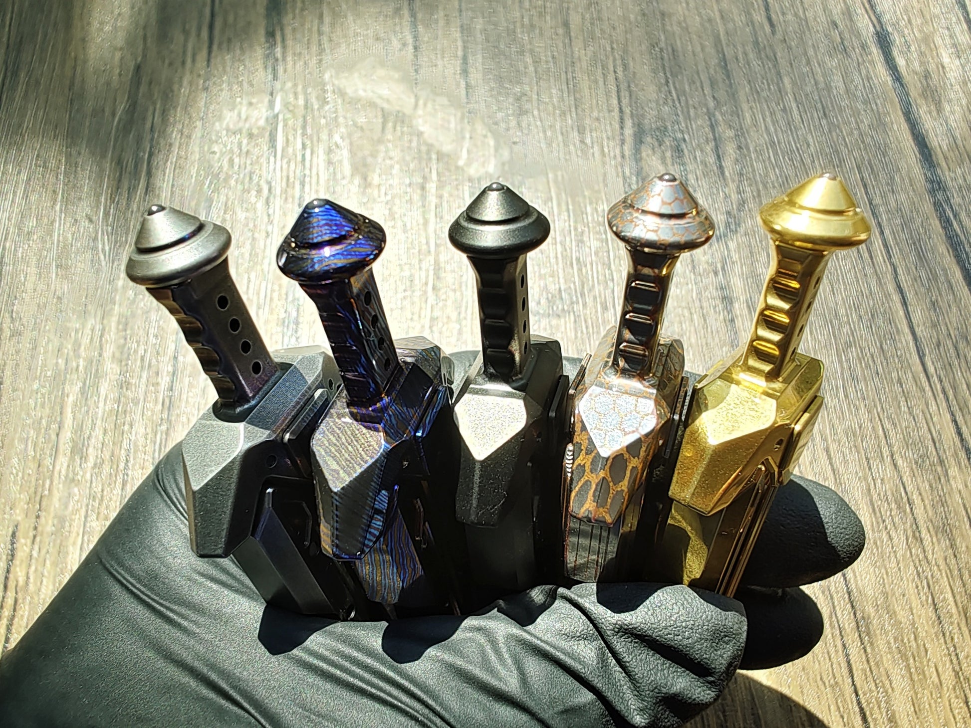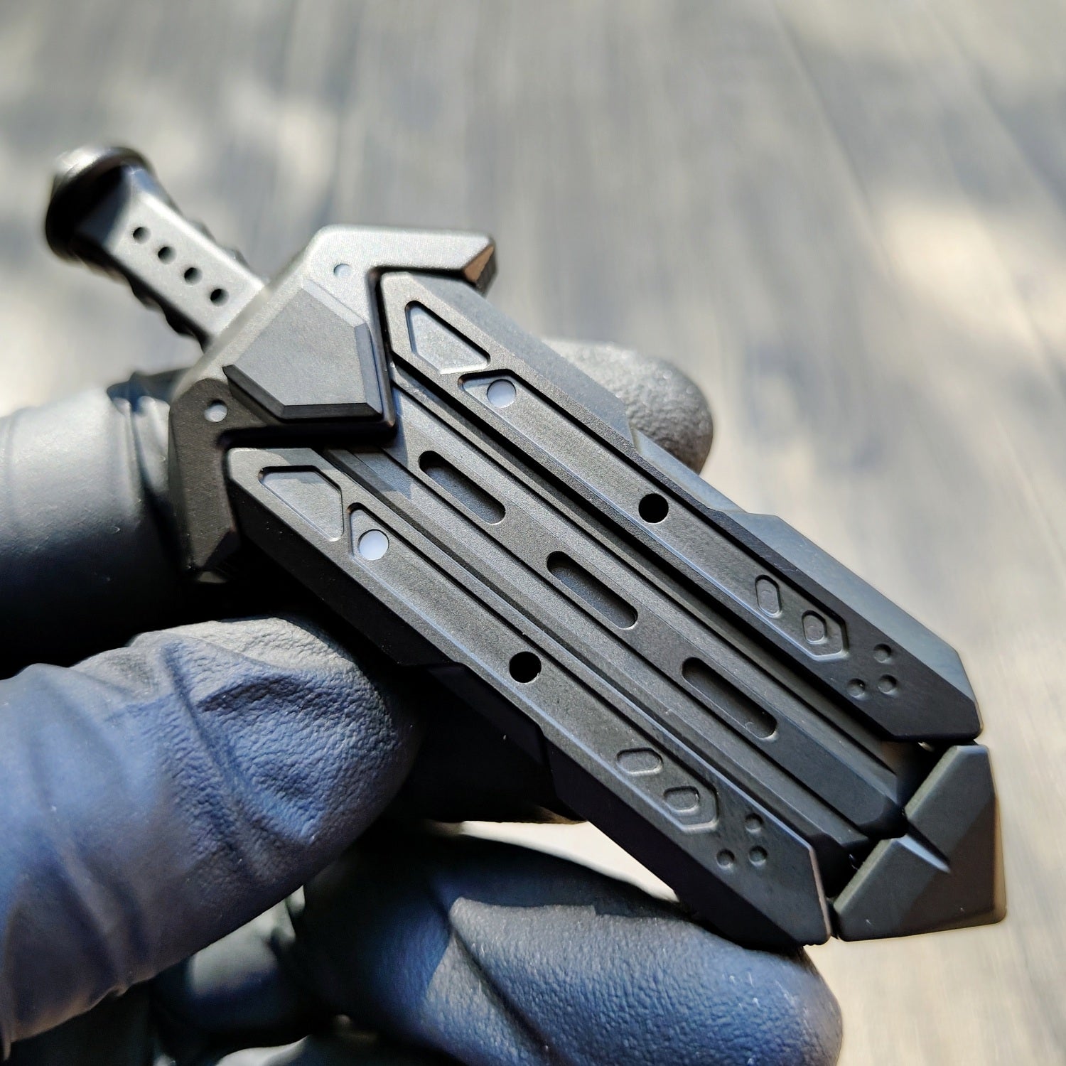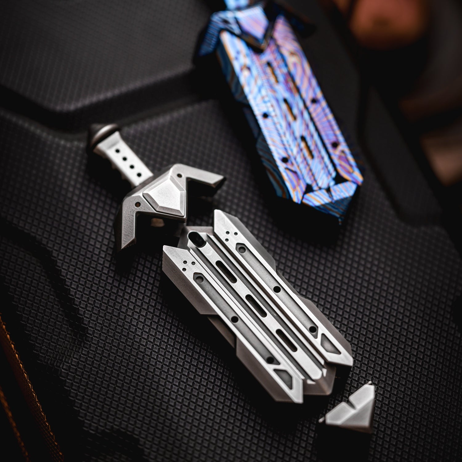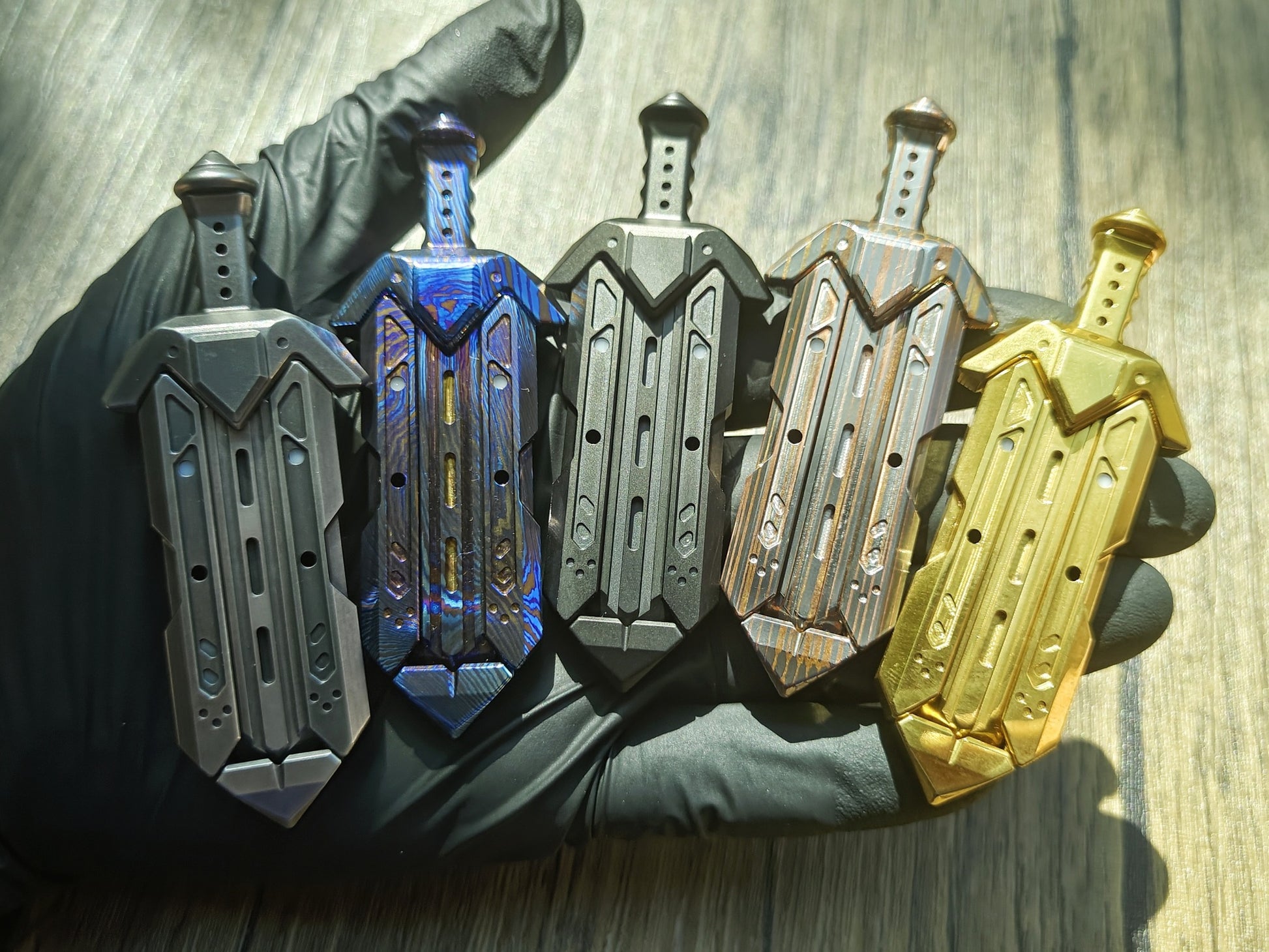- Form 2: Rail gun Form. Use screwdriver to remove the handle and scabbard tip, turn the direction of one side of the scabbard, then it becomes a slider. By changing the fixed position of the internal sliding blocks, a two-way 2-segment or one-way 4-segment push gameplay can be achieved. You can also replace the Teflon sliding blocks with SS ones to experience different tactile sensations.