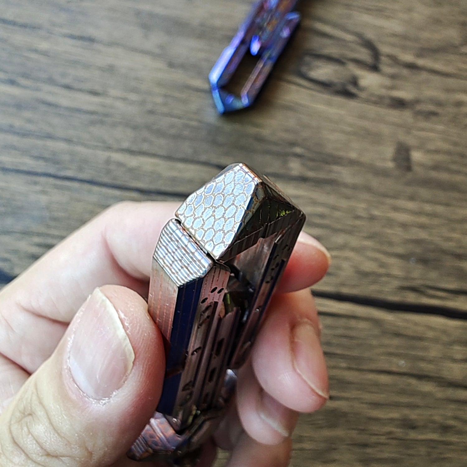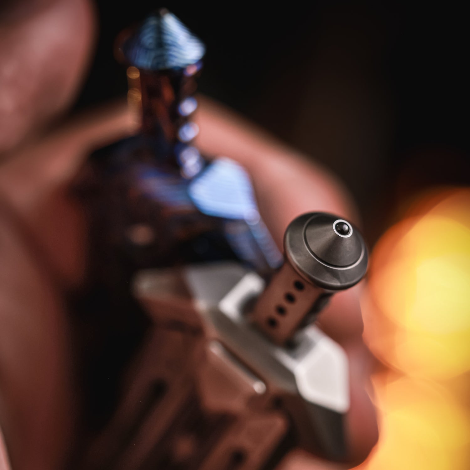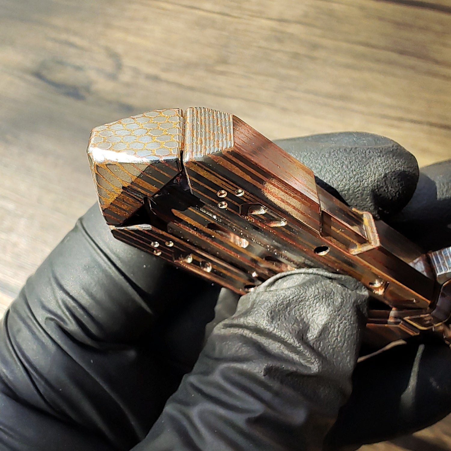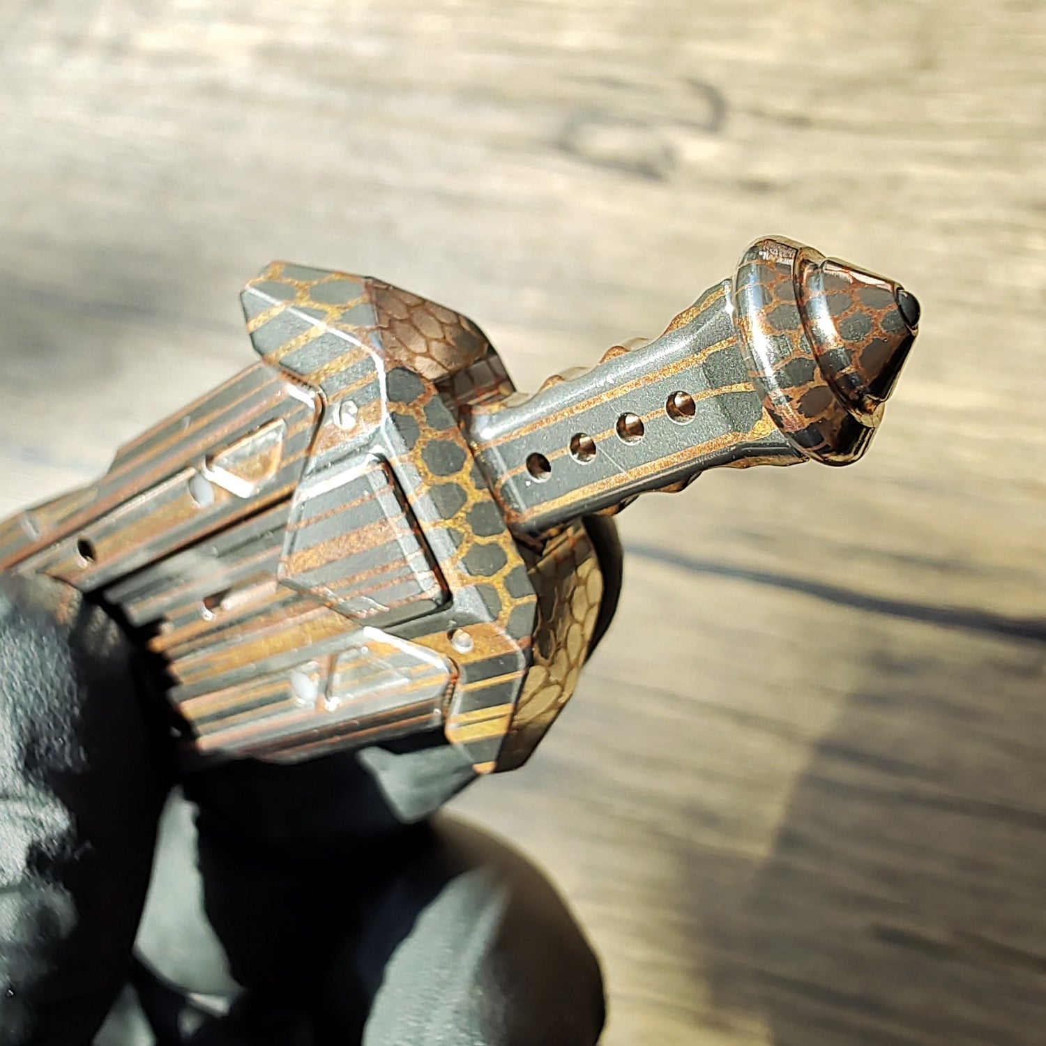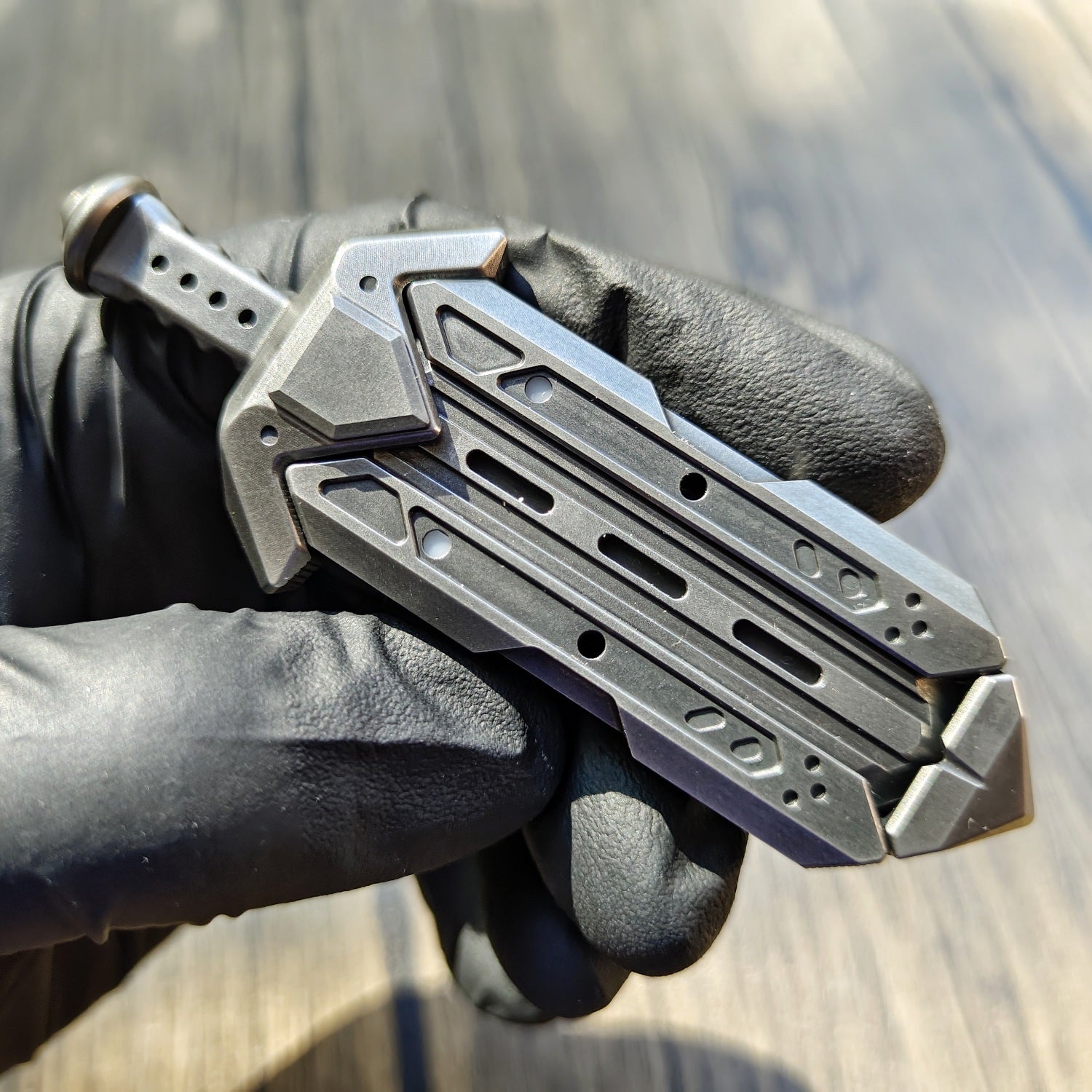 - Form 2: Rail gun Form. Use screwdriver to remove the handle and scabbard tip, turn the direction of one side of the scabbard, then it becomes a slider. By changing the fixed position of the internal sliding blocks, a two-way 2-segment or one-way 4-segment push gameplay can be achieved. You can also replace the Teflon sliding blocks with SS ones to experience different tactile sensations.