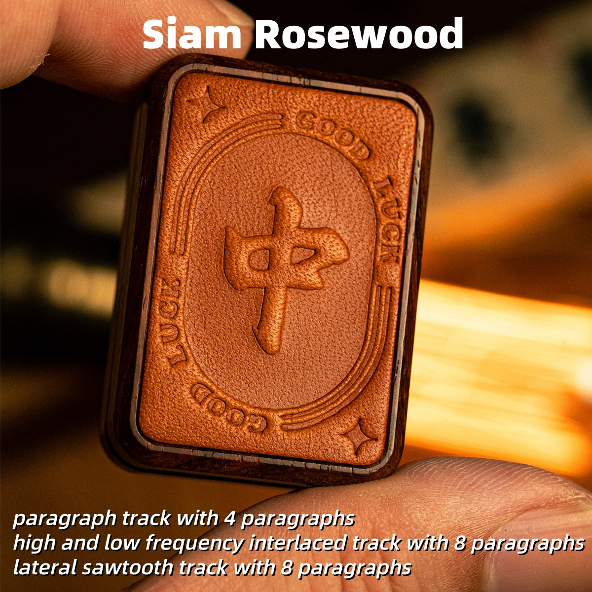 "中", pronounced as Zhong, the Chinese meaning is "Center". This is limited version. The material is Siam Rosewood, which is more expensive. The three types of tracks inside are: paragraph track with 4 paragraphs, high and low frequency interlaced track with 8 paragraphs, and lateral sawtooth track with 8 paragraphs.