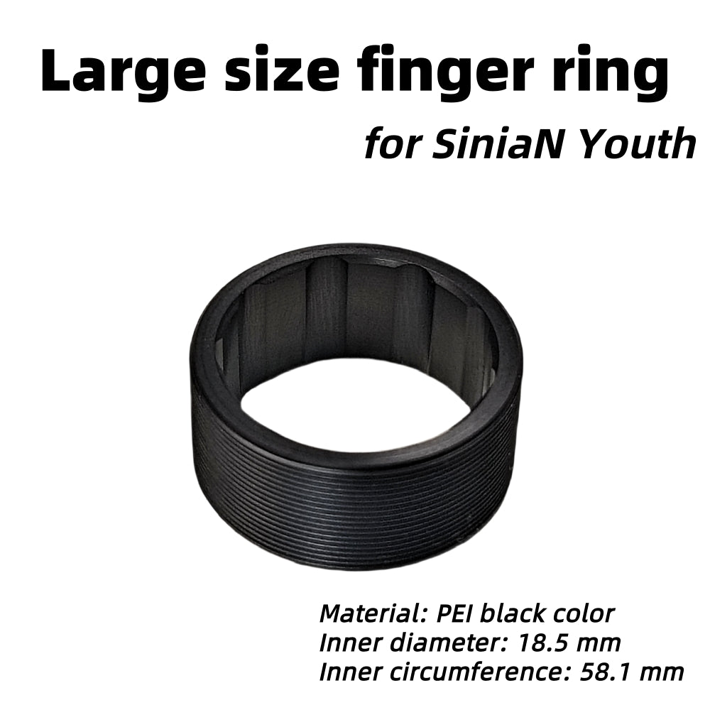 Youth Edition SiniaN doesn't have an extra ring. It only has a standard size finger ring which was mounted on the body. The inner diameter of the standard ring is 17.4 mm, circumference is 54.7 mm. For players with thicker fingers, you can purchase a large-sized finger ring separately.