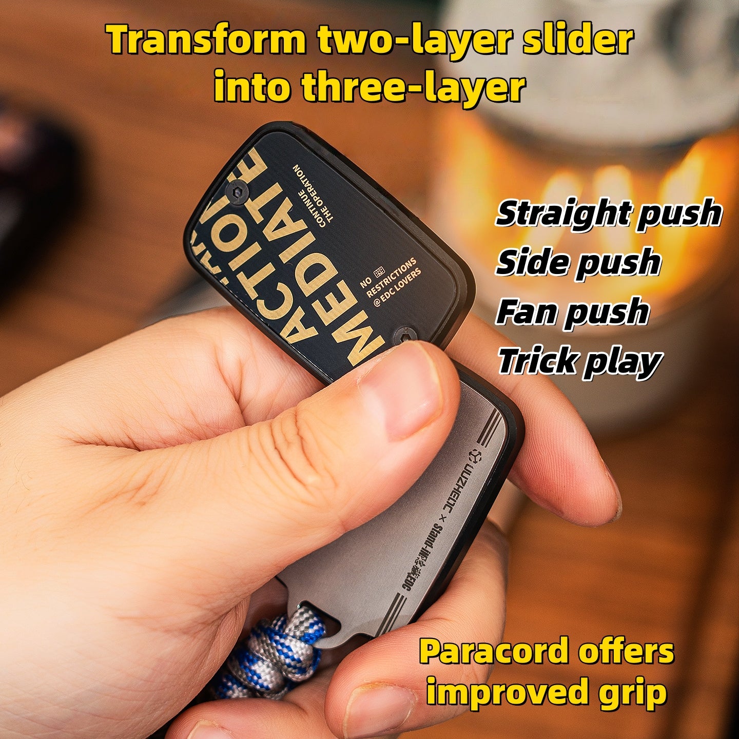 The middle plate is compatible with most floating sliders on the market. By adding the middle plate, you can transform your two-layer slider into a three-layer design, enabling straight pushes, side pushes, fan pushes, and a wide variety of advanced tricks. The middle plate supports necklace or paracord attachment, combining wearable style with enhanced grip and control during use.