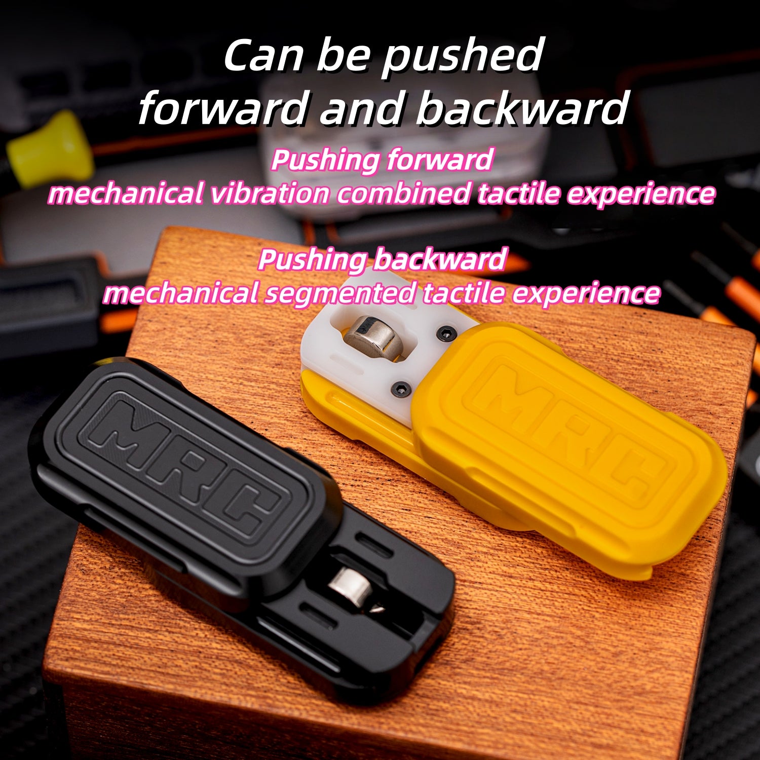 It can be pushed in both forward and backward directions. Pushing forward provides a mechanical vibration combined tactile experience. Pushing backward offers a mechanical segmented tactile experience. The mechanical part adopts a dual-track design: a dense segmented track + a damping track. It enhances the impact feeling at the end.