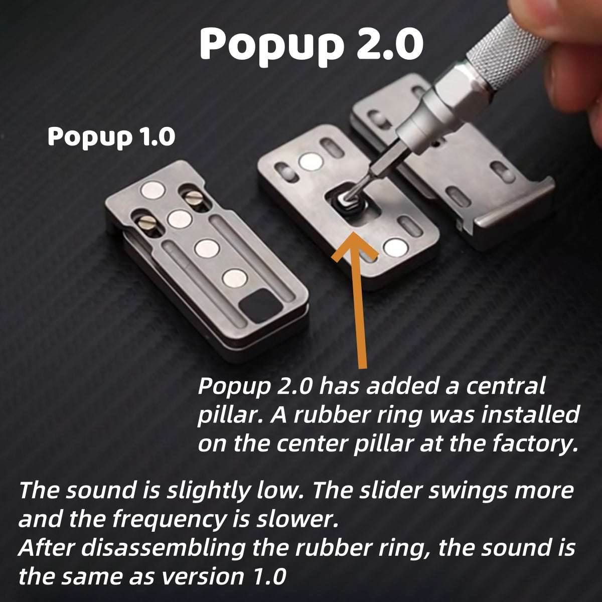 - Popup 2.0 has added a central pillar design. A rubber ring was installed on the center pillar at the factory. Compared to v1.0, the sound is slightly low, the slider swings more and the frequency is slower.