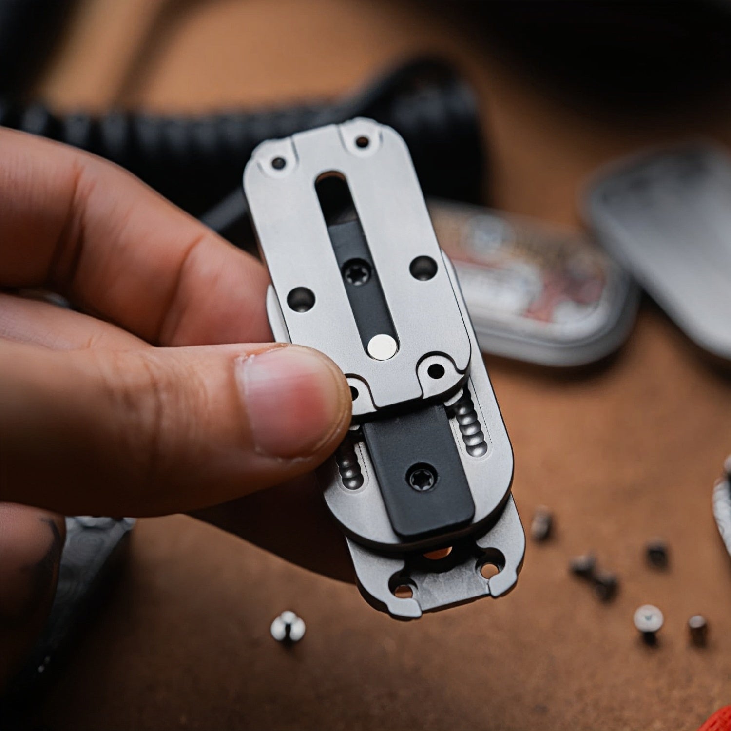 Its surface is engraved with playful cartoon-style patterns, making the slider more lively and fun. LAUTIE piranhas are waiting for opportunities to move underwater. 01EDC chick is wearing a SAM mask, attempting to get away with them. The patterns on this product feature a blend of exquisitely crafted brass and copper, with cute and amusing designs laser-engraved for a refined look.