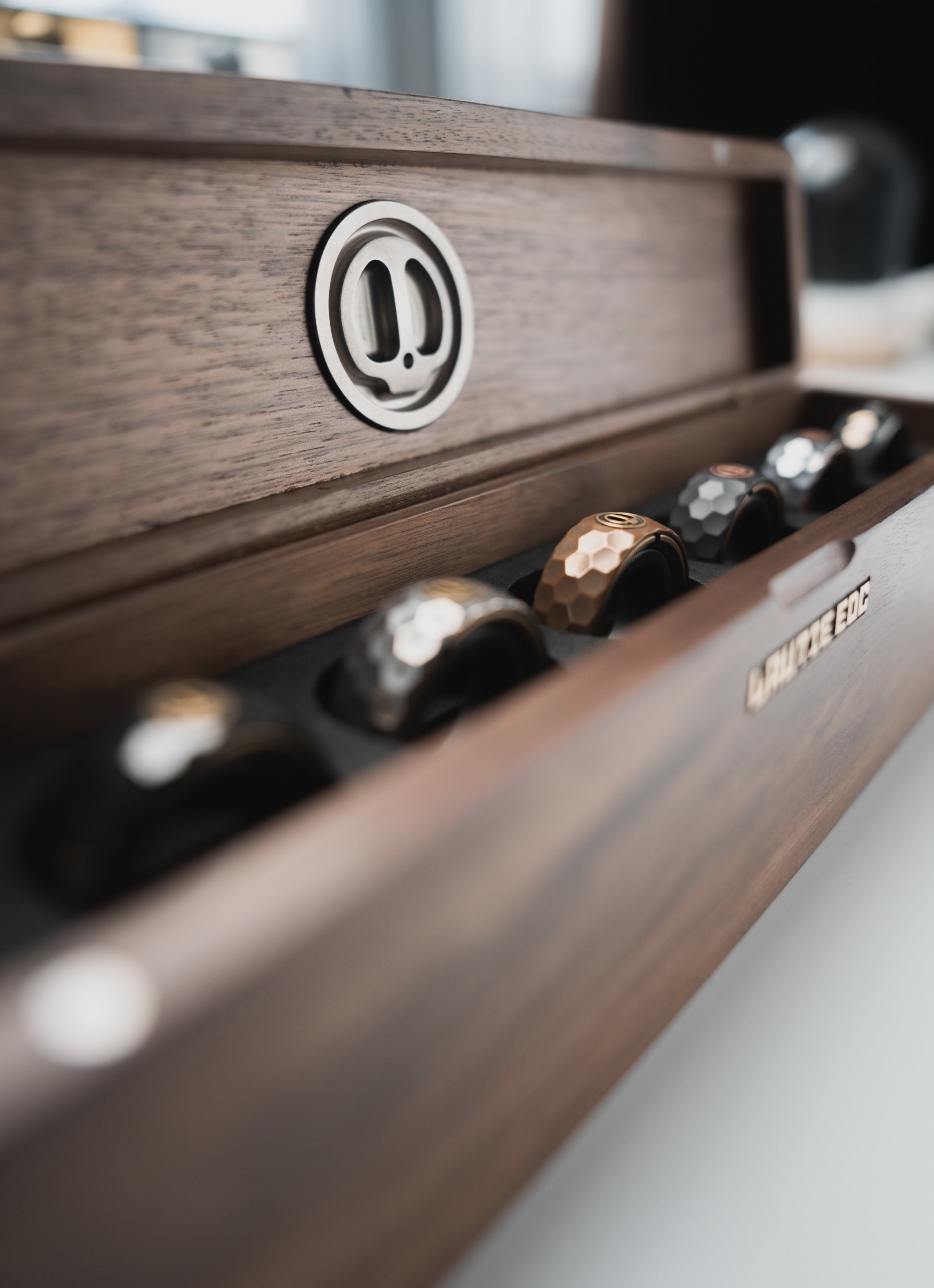 Thorns Zircuti is limited to 200 sets worldwide. Each set includes a zircuti ring spinner and a wooden collection box. The wooden box has 7 slots. You can put in 7 Lautie Mechanic rings. It is also compatible with ACEDC mechanical rings. The 7-hole wooden box is specifically provided for this zircuti version, so it is also limited to 200 pieces and only sold together with zircuti ring.