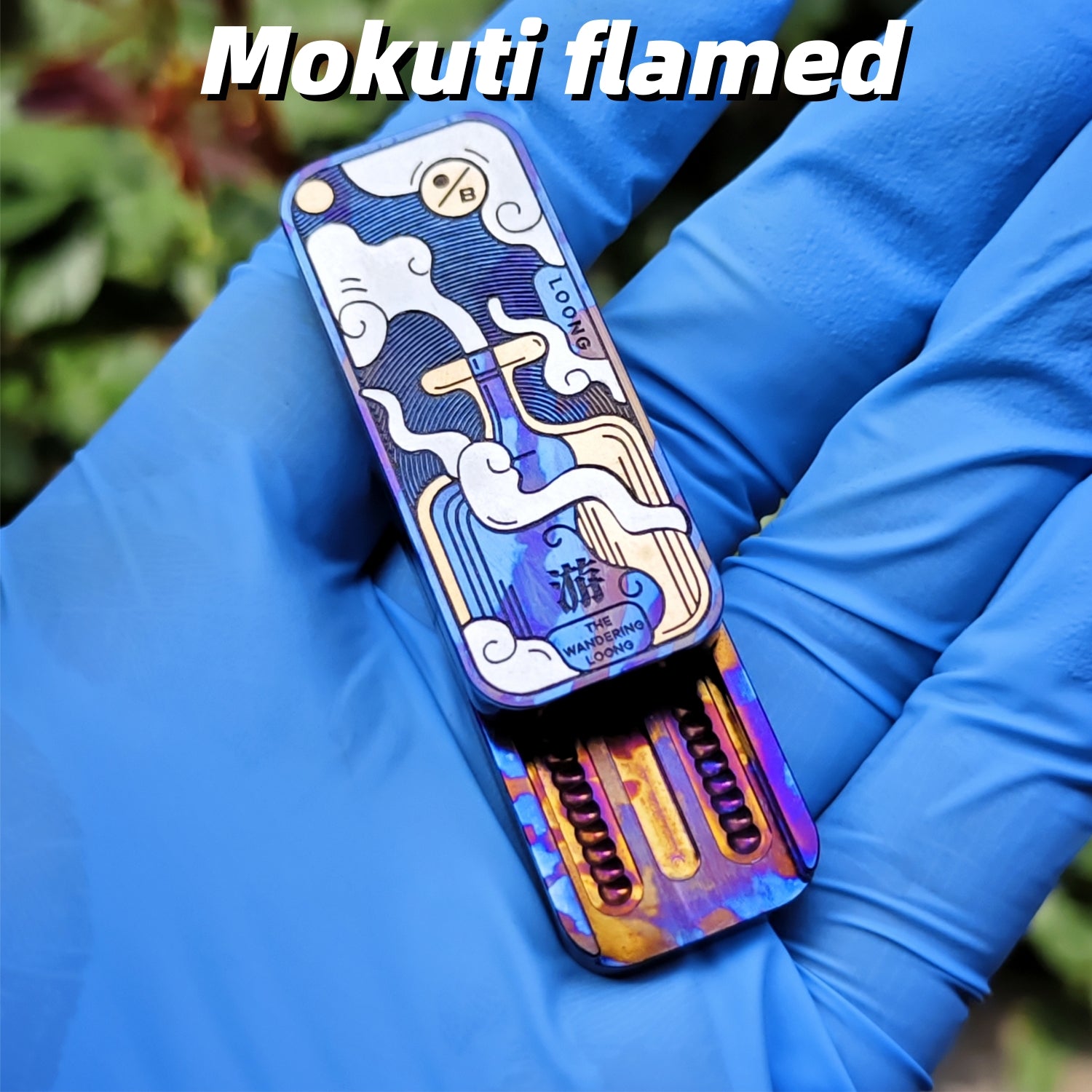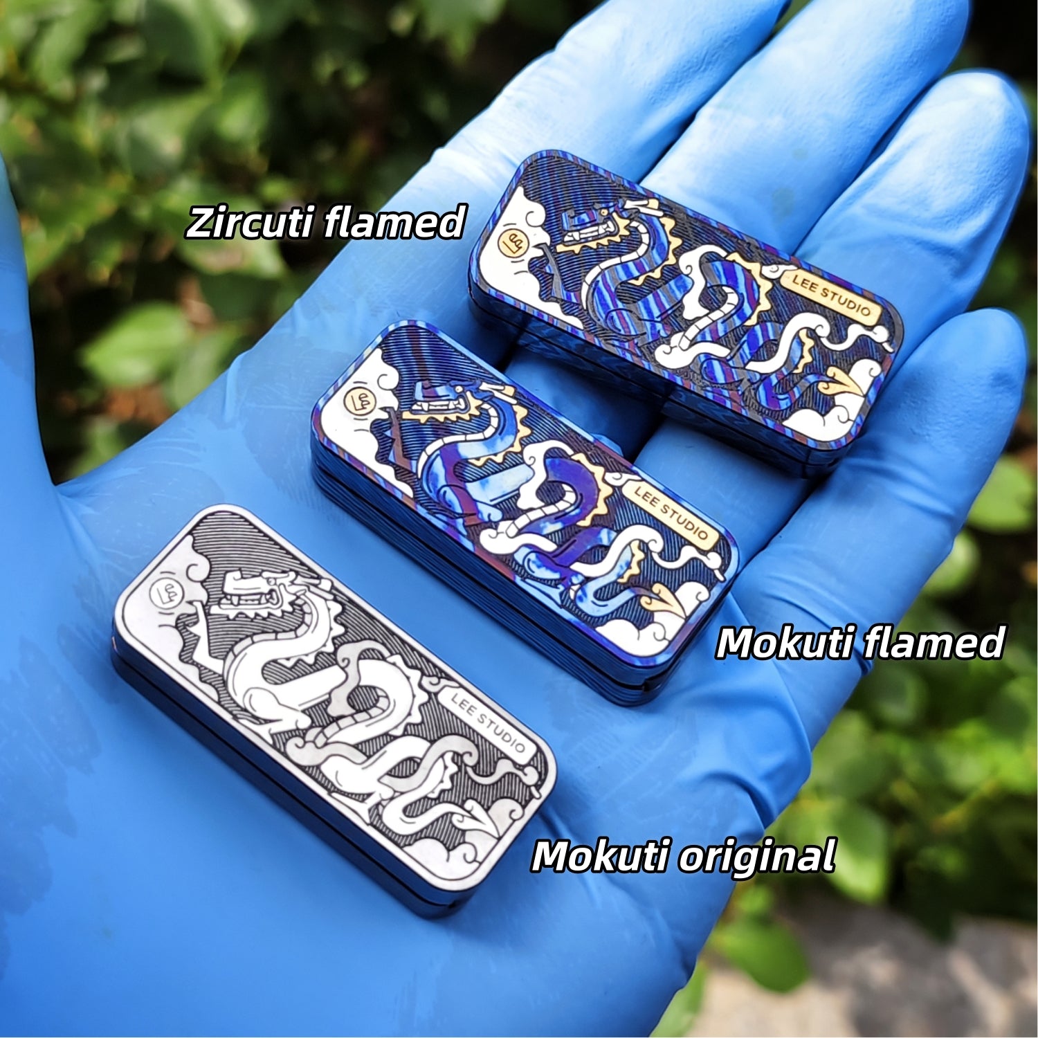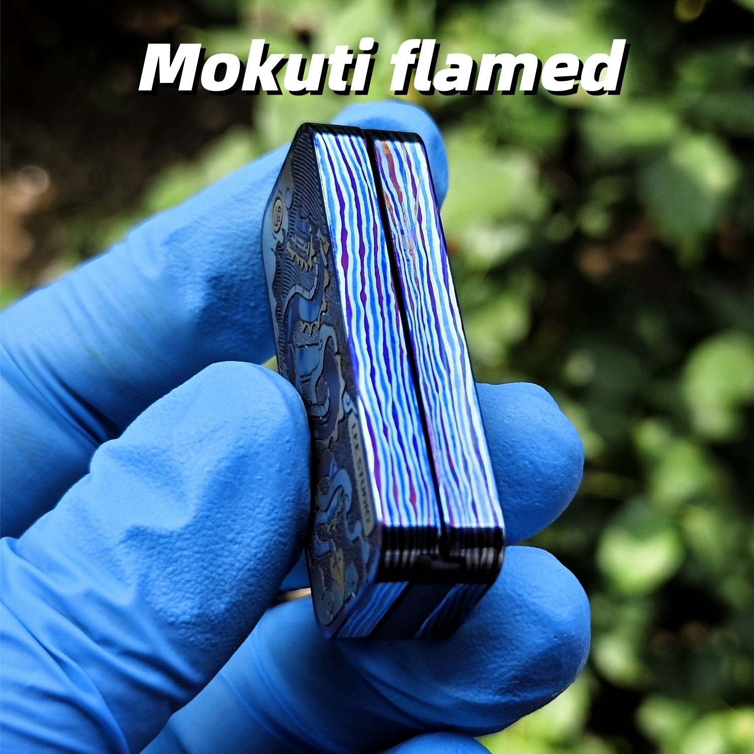 The Mokuti original version retains the original appearance of the Mokuti material, being pure and natural, allowing people to feel a simple and unadorned beauty. The flamed color treatment on the sides forms a sharp contrast with the original color on the front and back, as if showing that beneath its plain exterior lies a fiery soul. The original-color Mokuti will add a unique charm never seen before to your EDC exotic collections.