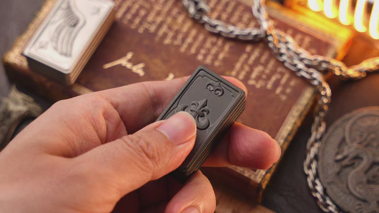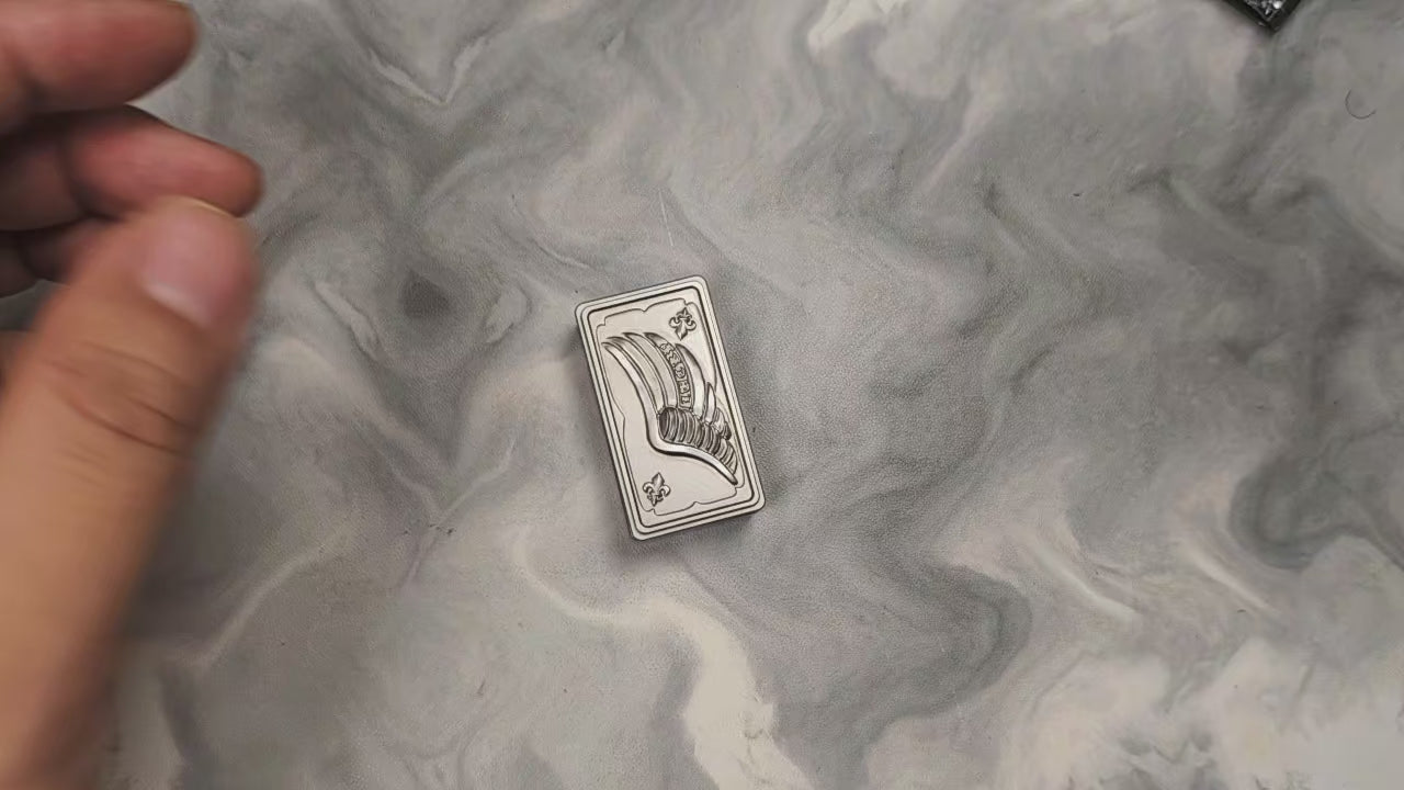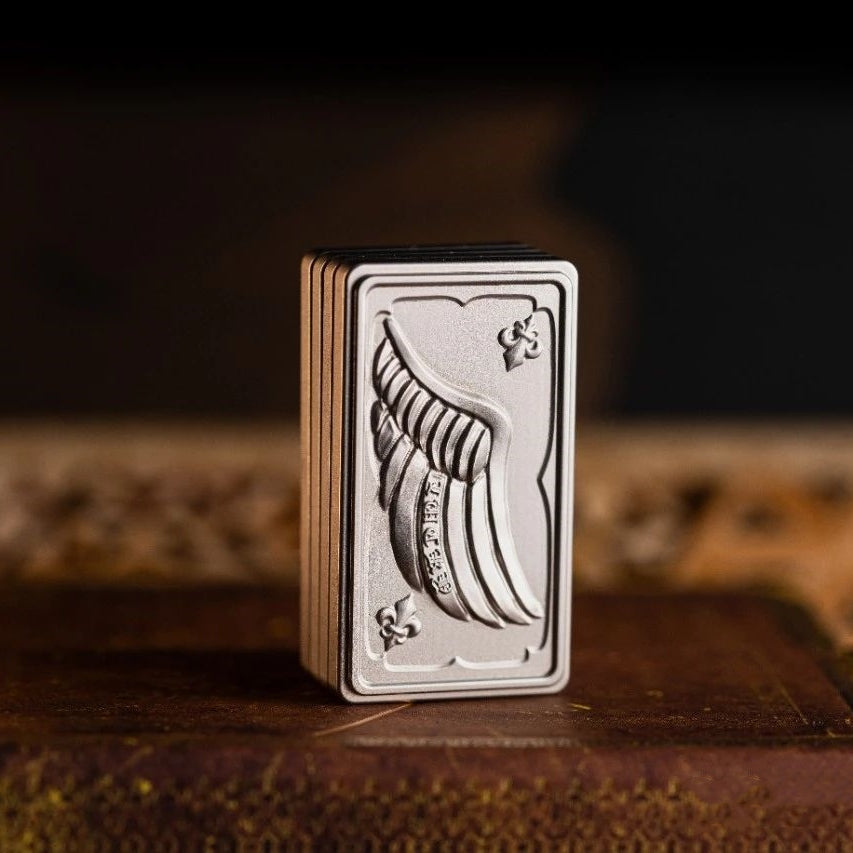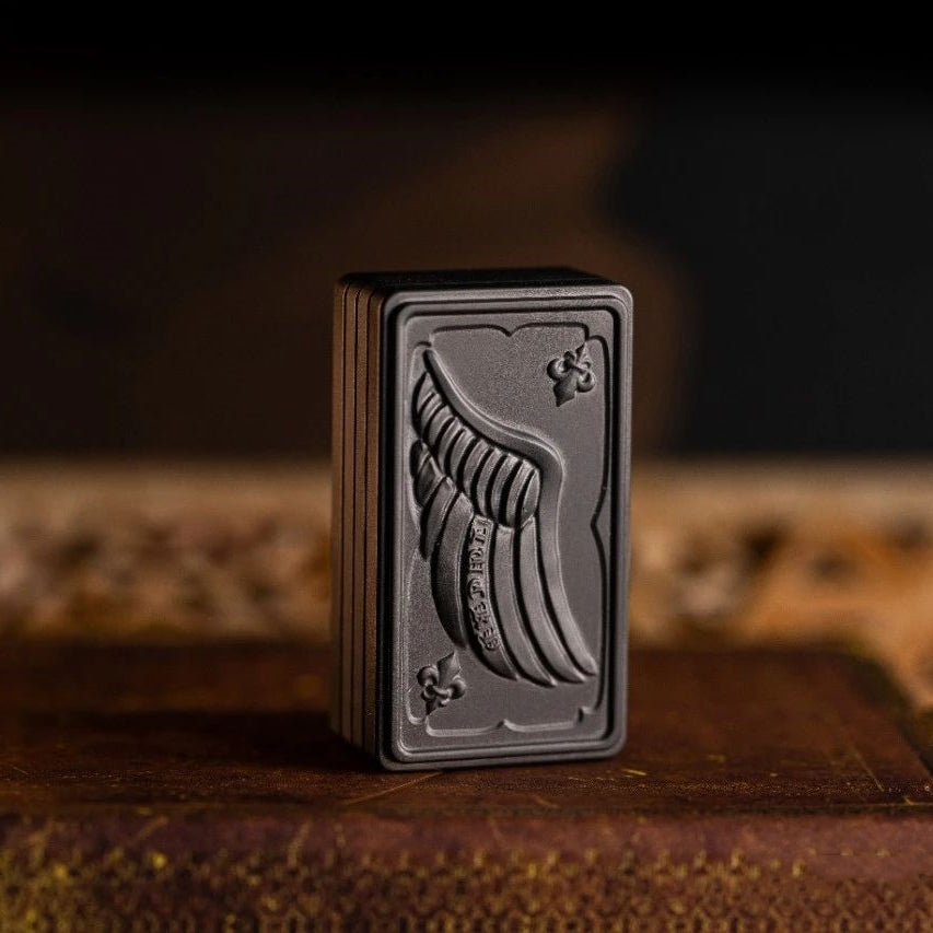 On one side is an exquisitely carved wing with the word LUCKY engraved on it, symbolizing good luck and freedom.