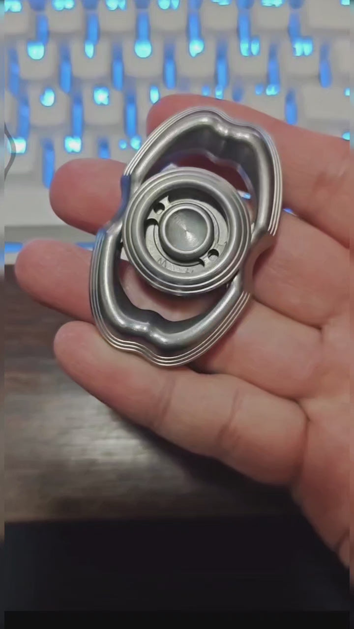 Obsidian is a round, large curved two leaf spinner. The main body and the button are both designed with large hollow openings. The button adopts two connection points. A rounded corner has been added to the hollow position of the button, and the concave part in the middle has also been chamfered, making it more rounded. The feeling of pinching the button is the perfect fit between the fingertips and the button.