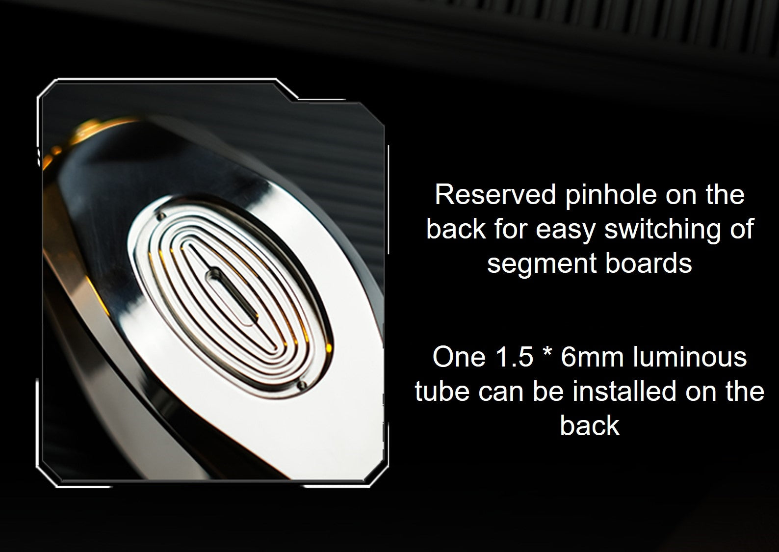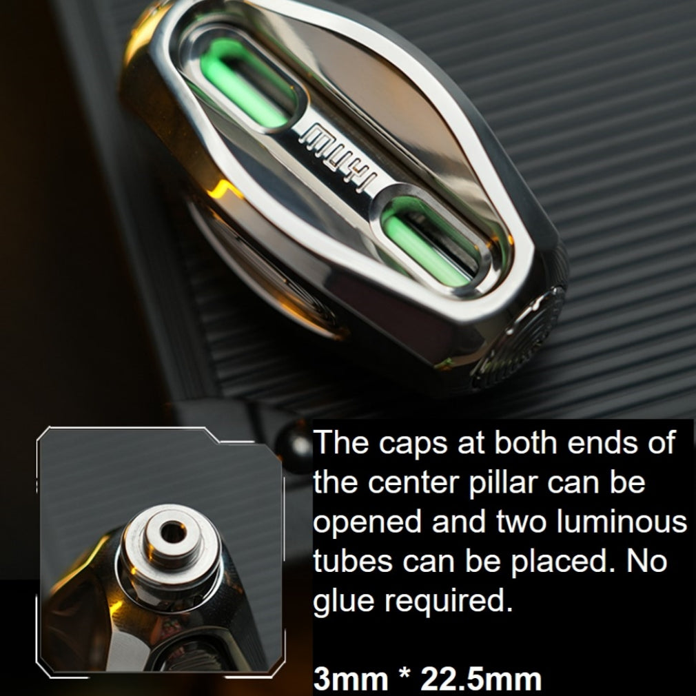 The caps at both ends of the center pillar can be opened and two luminous tubes can be placed. No glue required. Tube size is 3*22.5mm. And one 1.5*6mm luminous tube can be installed on the back.