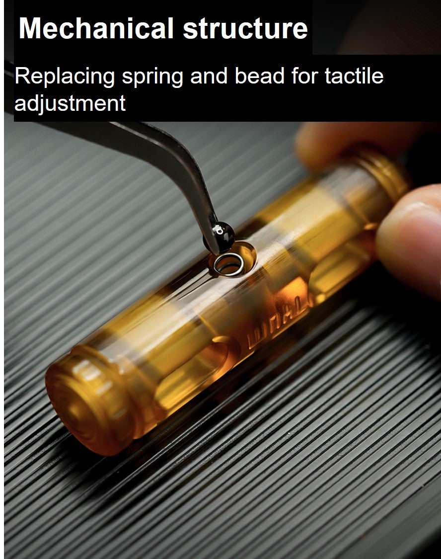 The interior is a mechanical structure without magnets. Replacing spring and bead for tactile adjustment.