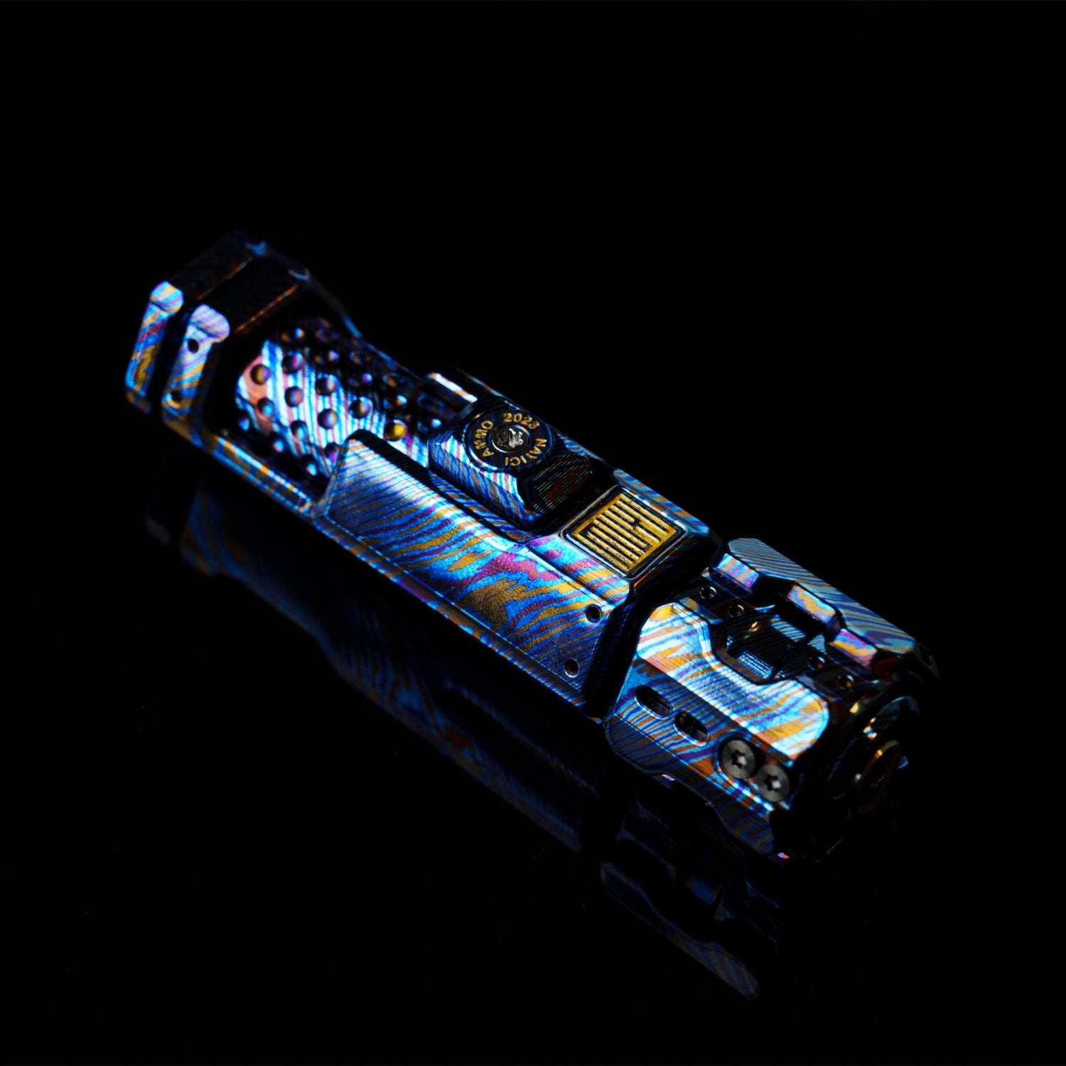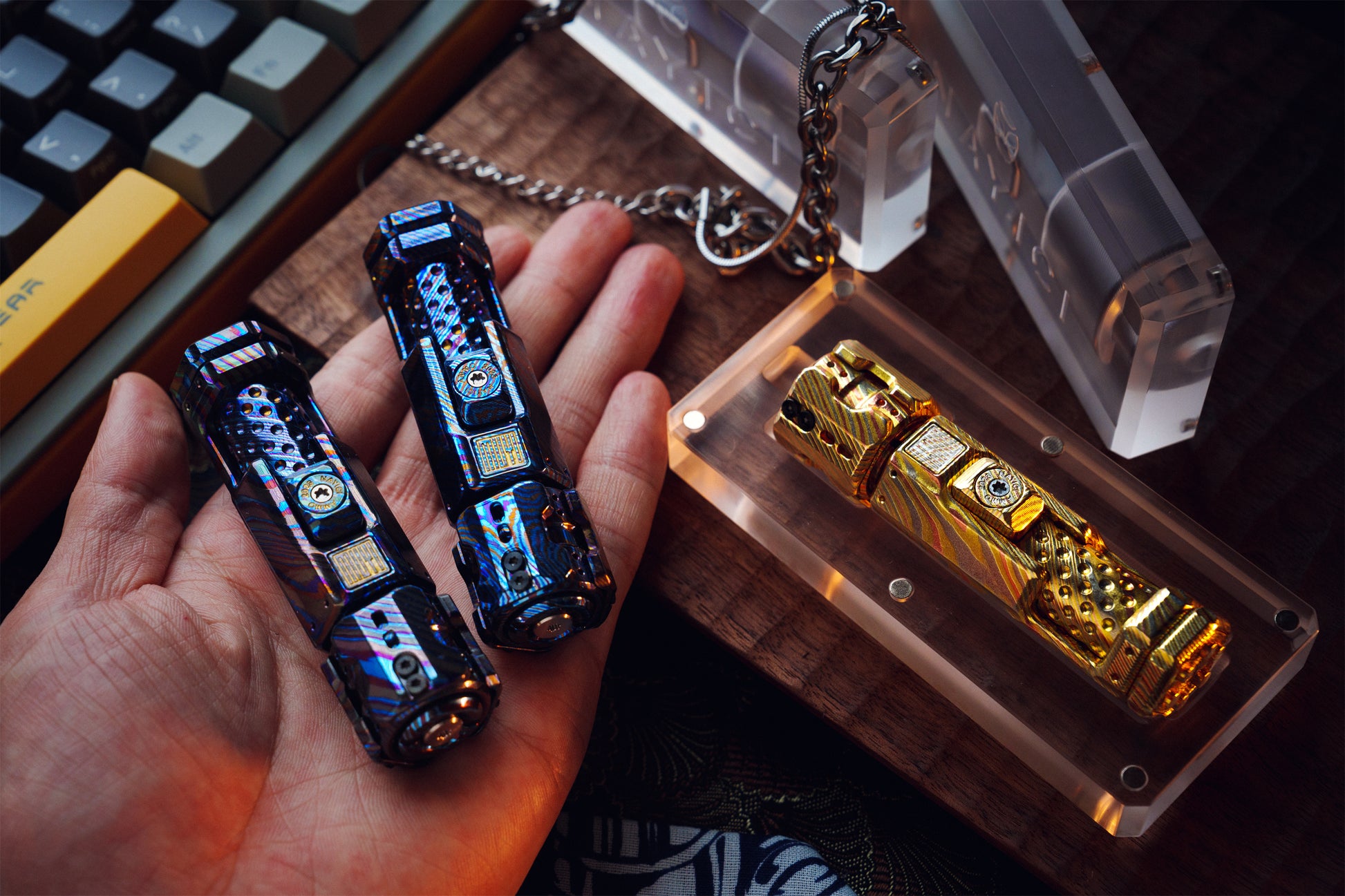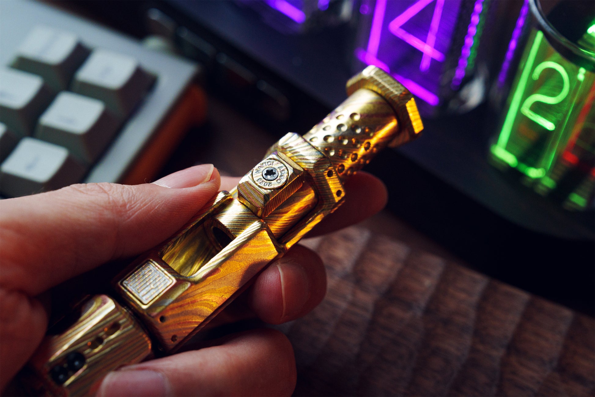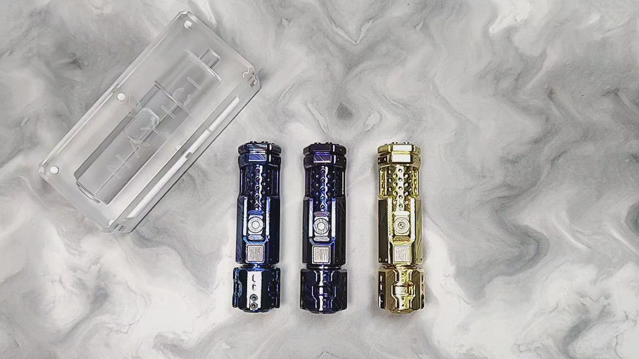 Musketeer is bolt-type mechanical structure with two-stage. Four-way push button not only can you push up and down , but you can also push left and right. The mechanical "Bolt action" structure comes with crisp sound feedback like a zippo lighter.
