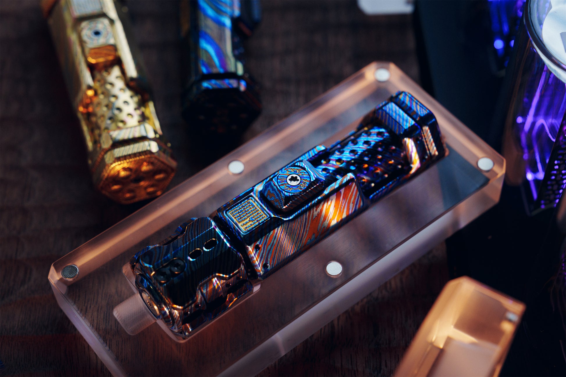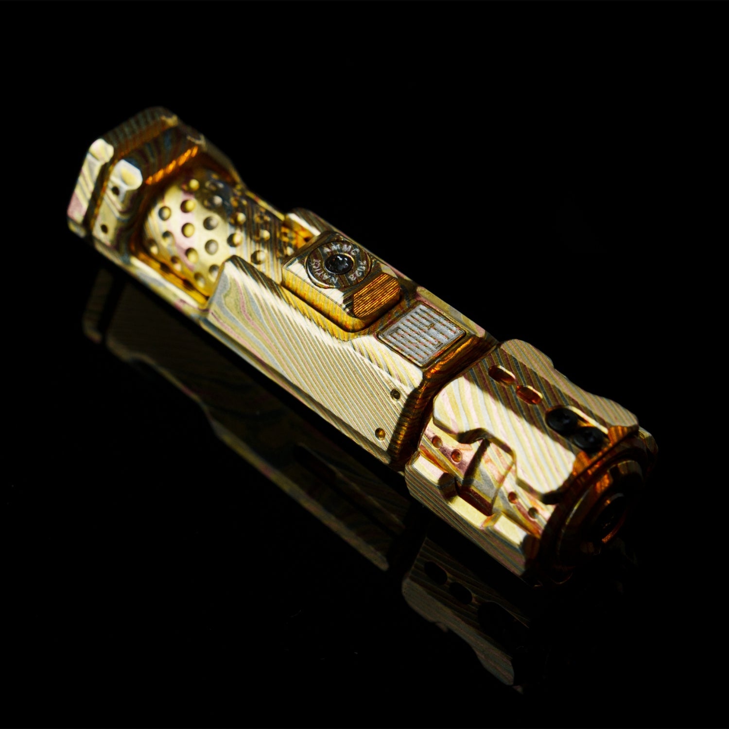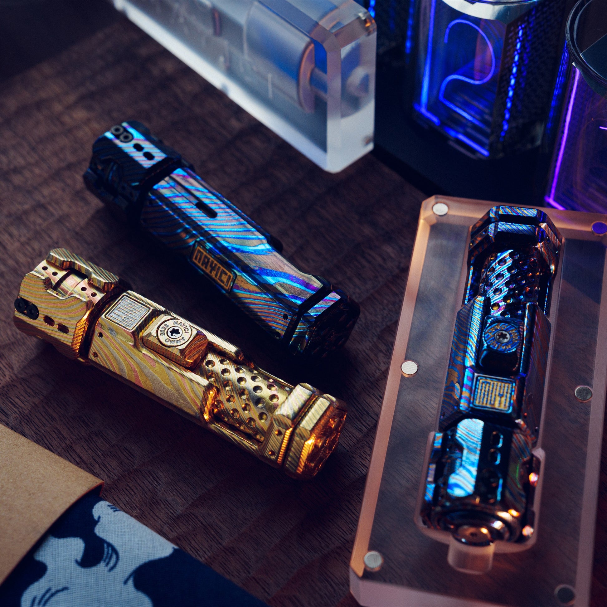 Musketeer is bolt-type mechanical structure with two-stage. Four-way push button not only can you push up and down , but you can also push left and right. The mechanical "Bolt action" structure comes with crisp sound feedback like a zippo lighter.