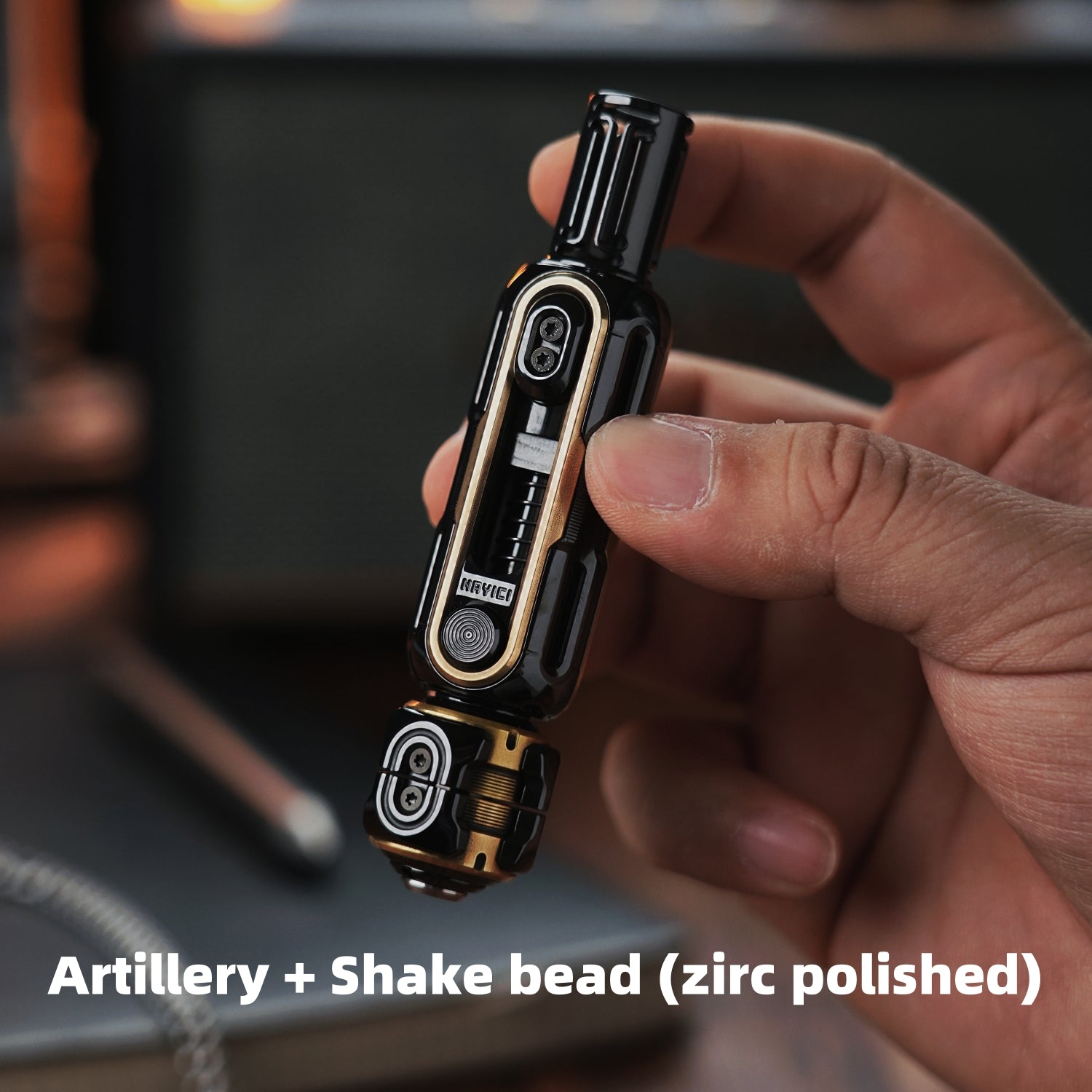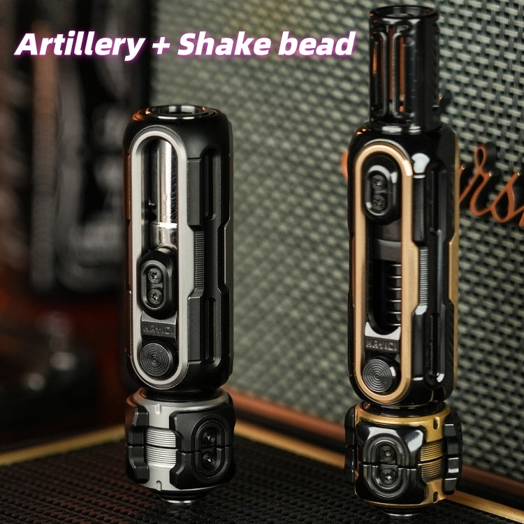 Artillery is a catapult and magnetism design toy. Charge through the mechanical spring. Press the button to instantly fire. The tuning fork structure of the hollowed barrel triggers a resonant hollow sound after firing.