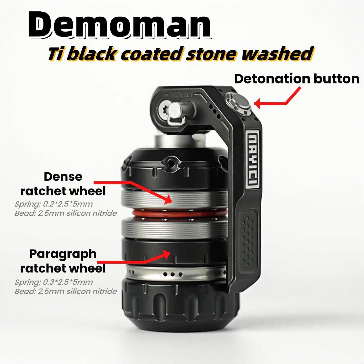Demoman is a figure-grade composite EDC toy. PEI and Zirc versions are composed of 42 components. Ti version is composed of 55 components. The structure is complex. The weight is also heavy.