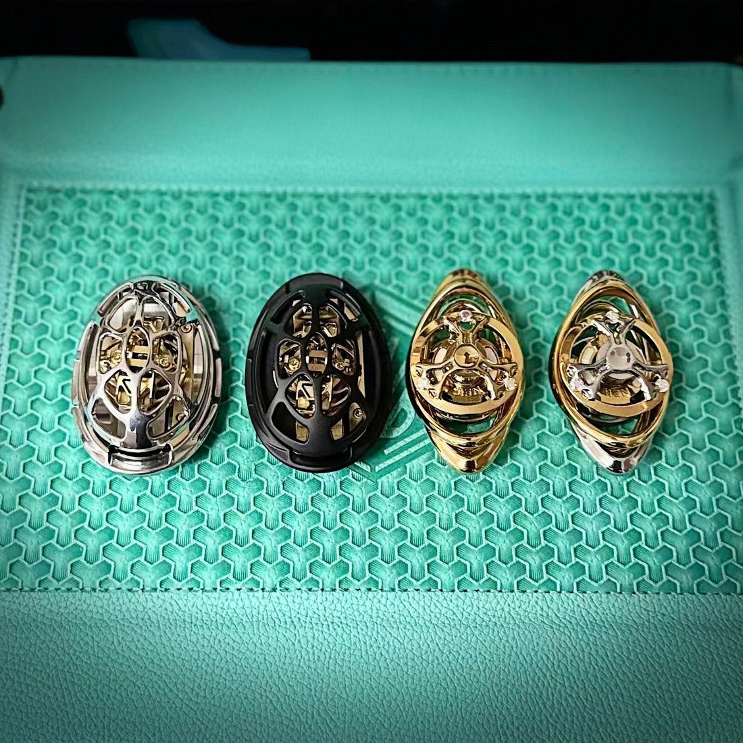 The large hollowed-out design of the appearance, combined with a series of physical chain reactions on the internal core triggered by pushing, provides you with an ultimate feedback in terms of touch, sound, and vision. The arc floating track ensures a smooth and unobstructed pushing experience without any jamming. The tourbillon-designed inner core rotates in a coordinated manner and also opens and closes in tandem. The four flywheels at the bottom can swing. Meanwhile, the two hollowed-out grooves at the bottom are not only for decorative purposes but also serve as docking positions reserved for future combination with other products.