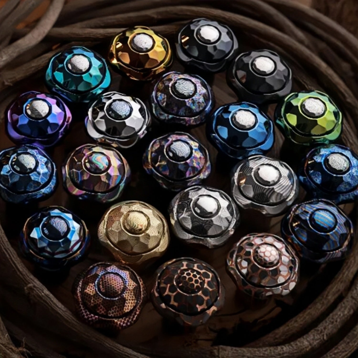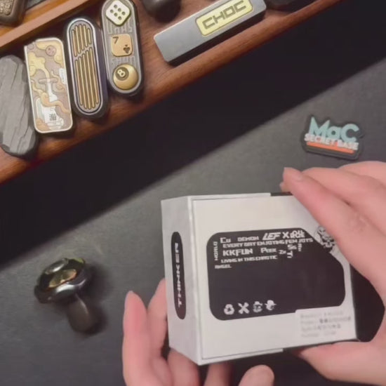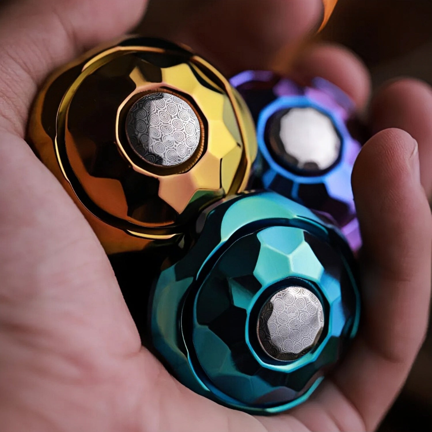 Two 4mm tungsten beads are installed inside when it leaves the factory. When you turn the outer ring, the tungsten beads continuously collide like wind chimes, and then slowly drive the inner ring to start rotating. After a relatively long-lasting state, the inner and outer rings rotate synchronously. Then you can stop the inner ring or the outer ring, and then enter the state of slow linkage again. There are two types of bead grooves inside, which will have different effects. Changing different beads also has different feedback.