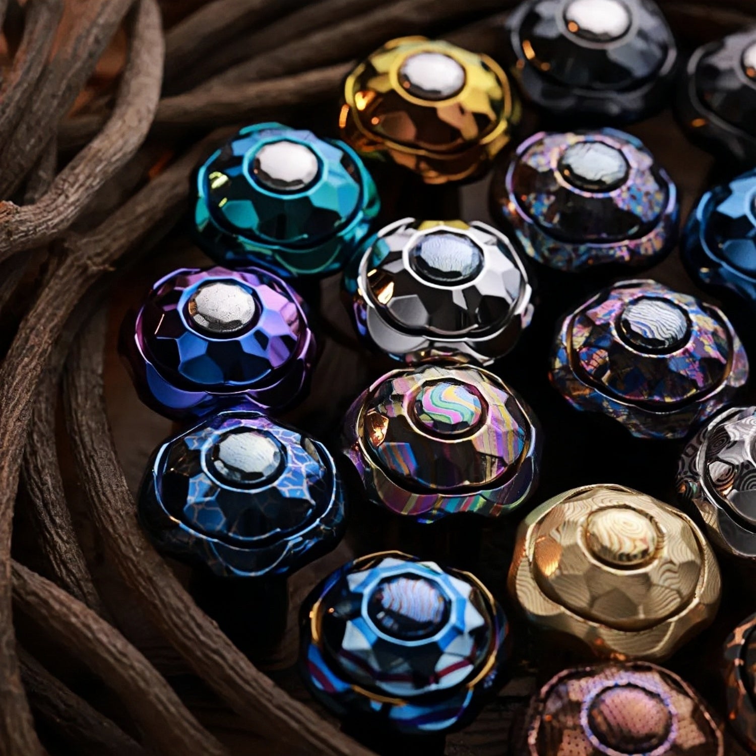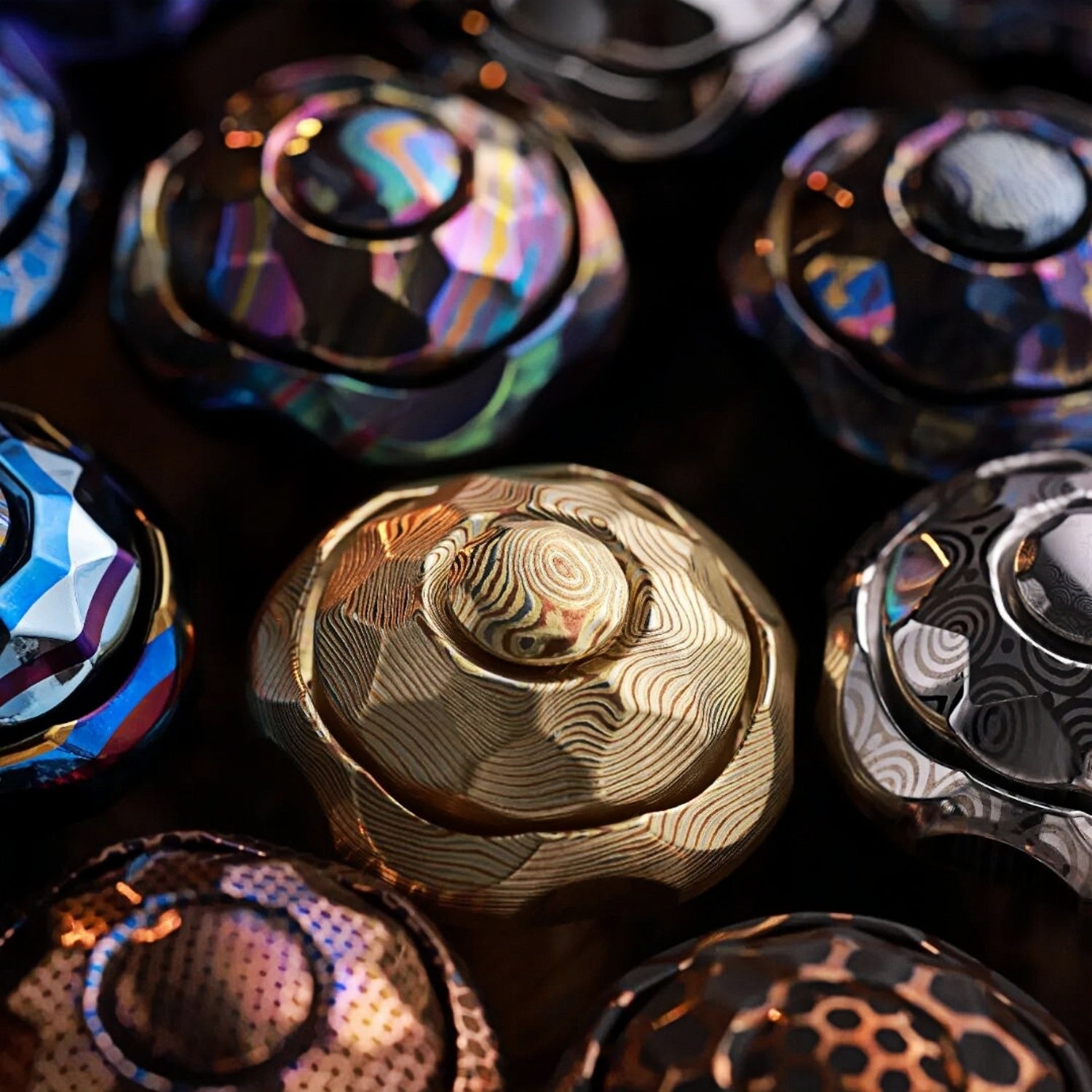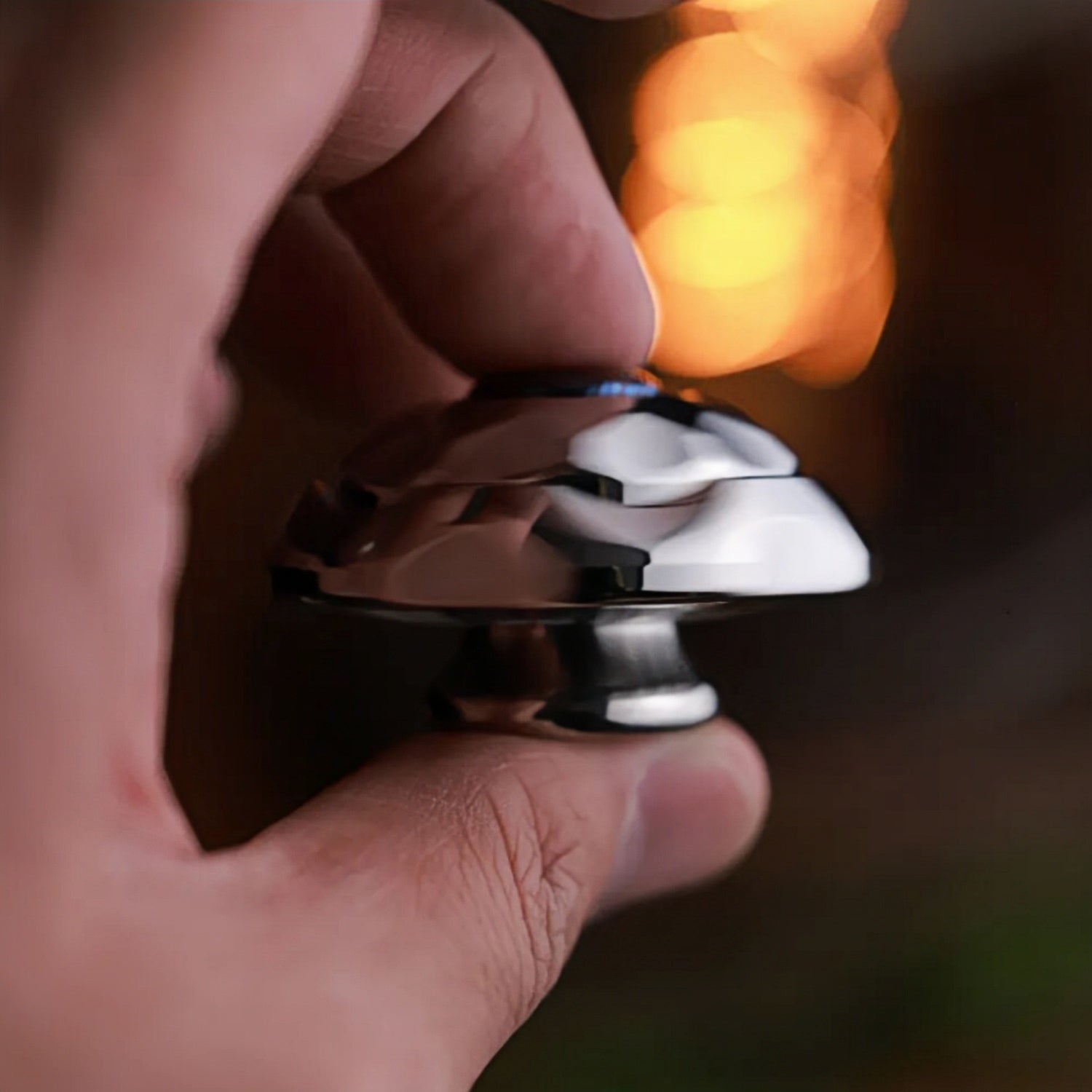 Two 4mm tungsten beads are installed inside when it leaves the factory. When you turn the outer ring, the tungsten beads continuously collide like wind chimes, and then slowly drive the inner ring to start rotating. After a relatively long-lasting state, the inner and outer rings rotate synchronously. Then you can stop the inner ring or the outer ring, and then enter the state of slow linkage again. There are two types of bead grooves inside, which will have different effects. Changing different beads also has different feedback.