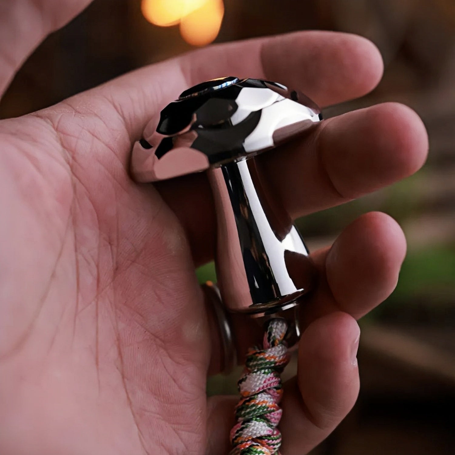 When it leaves the factory, it is in the form of a scepter. There is a magnetic paracord accessory at the bottom of the mushroom handle, which can not only increase the firmness of the grip but also be woven into a bead to enhance its appearance.