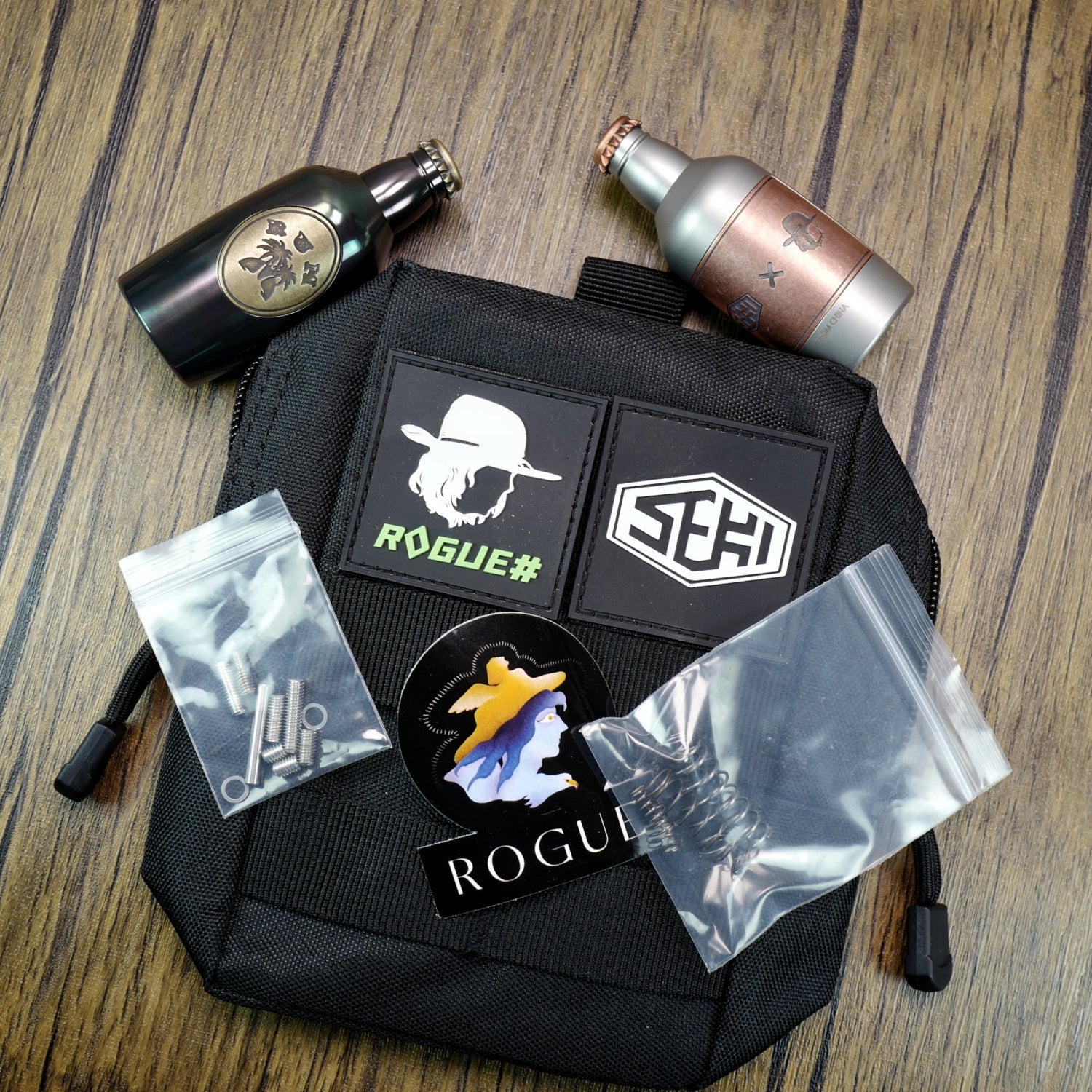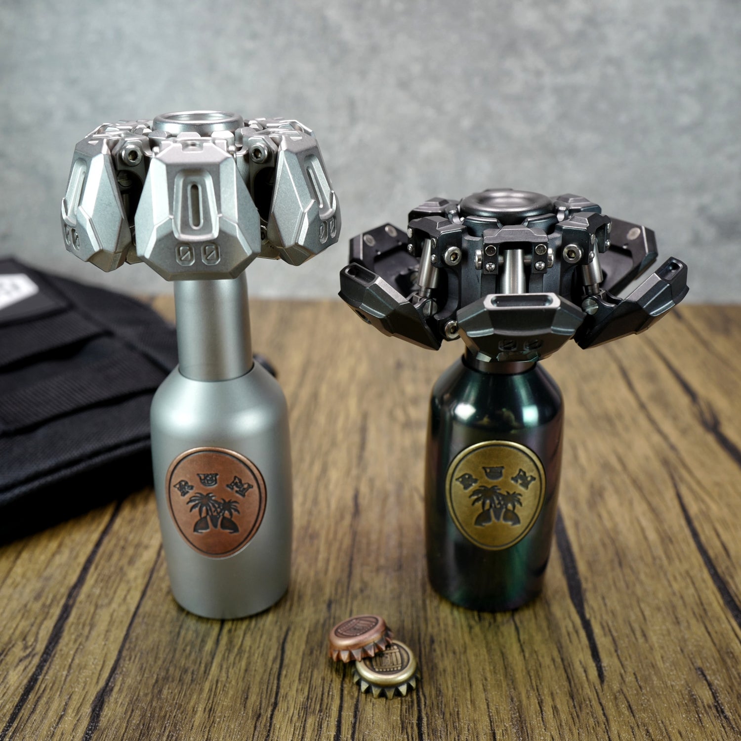 - Scepter and base of spinner. After the bottle cap is rotated and removed, the Rum becomes a spinner rod, which can fit most of the spinner with R188 bearing. Because of its heavy weight (SS 300g, zirc 253g), it can also be used as a spinner base, which is very stable on the table.
