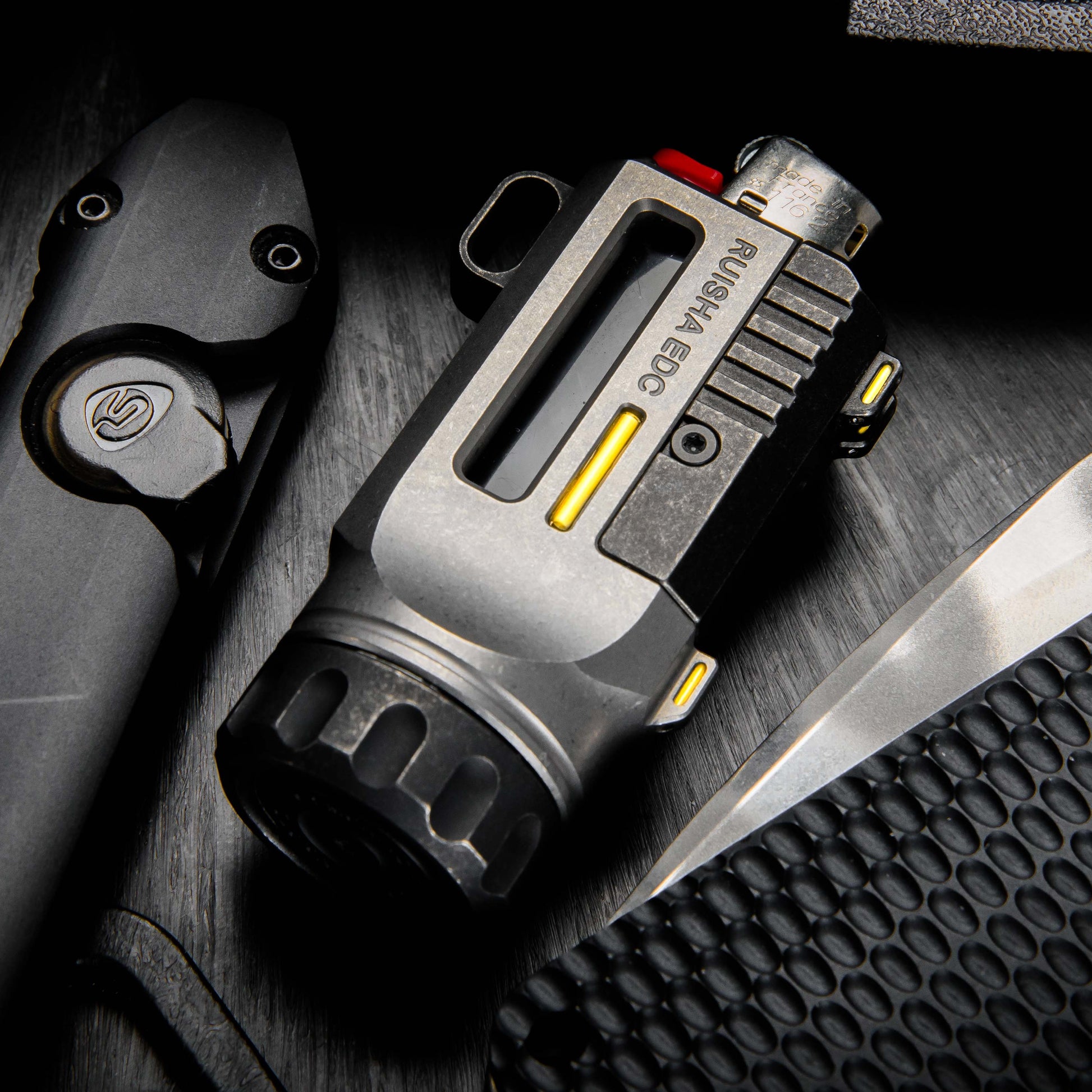 The V-2 BIC lighter case has multiple functions. Material is Titanium (Tc4). You can put a BIC J5 lighter in it easily. The size and shape of the case allow you to comfortably use the lighter function.