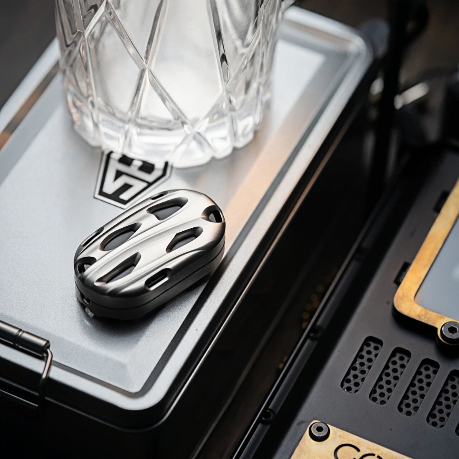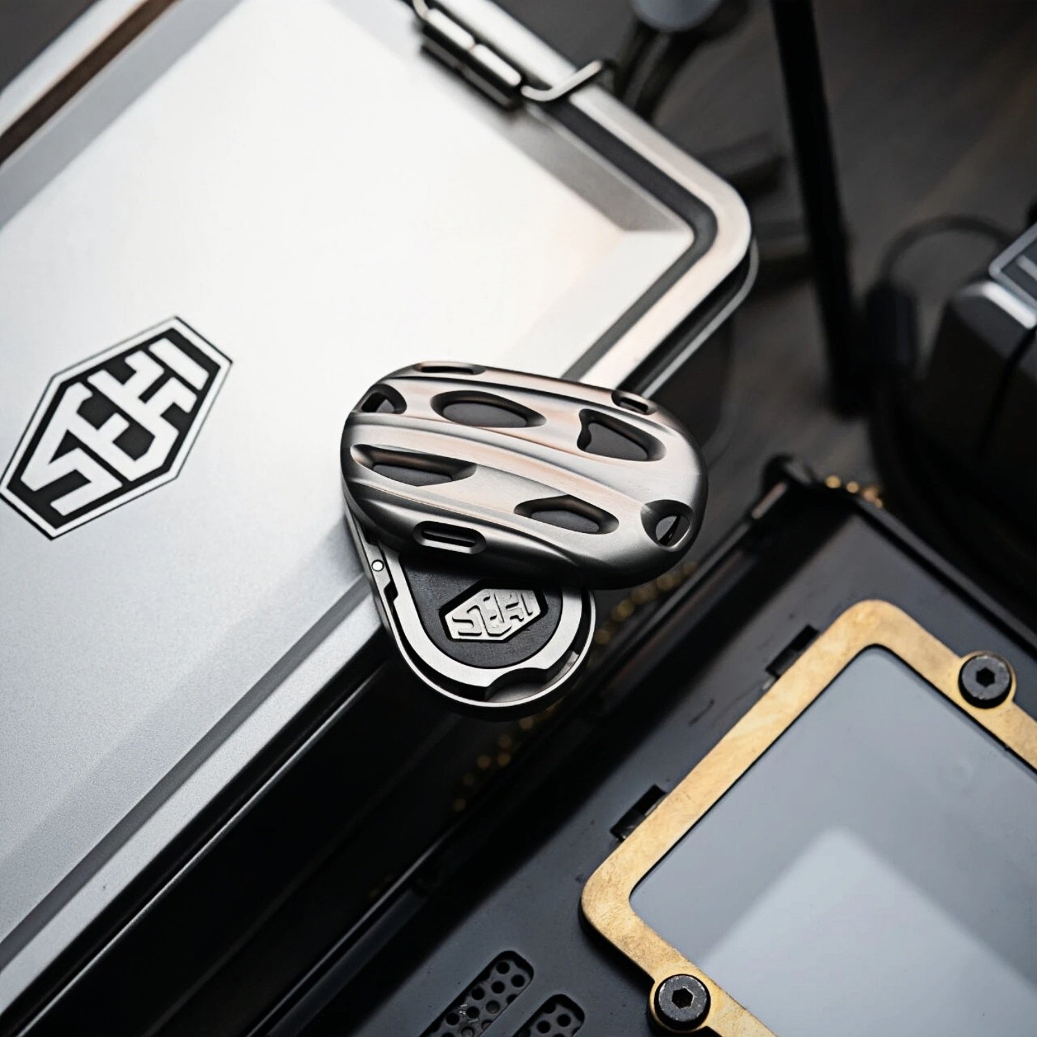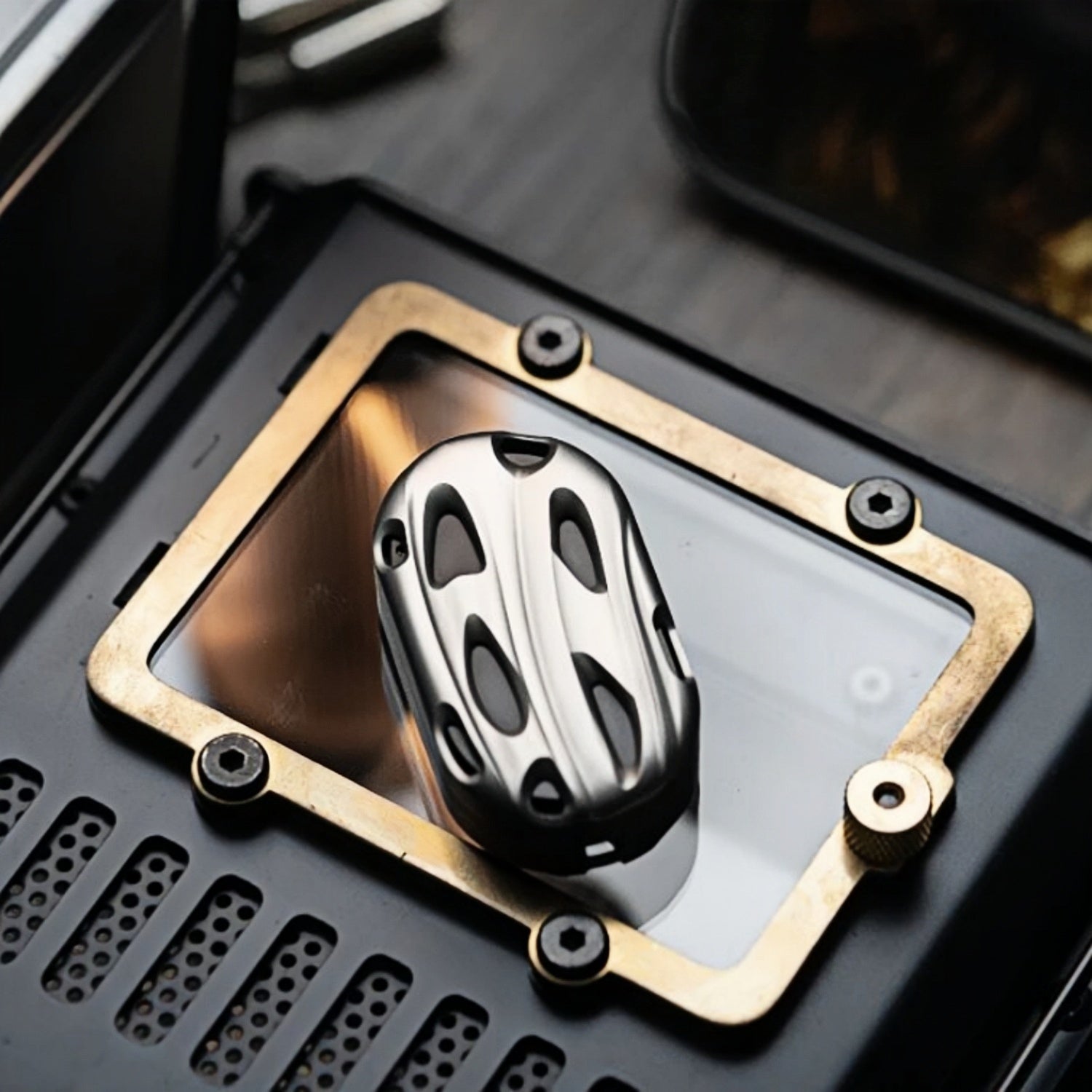 The first-released version is made of SS. It features a sand-blasted, hollowed-out and irregularly-shaped outer shell, paired with a core treated with a black-plating process. The outer shell can be disassembled and replaced at any time. The core is the key to achieving delayed feedback and the Duang effect.