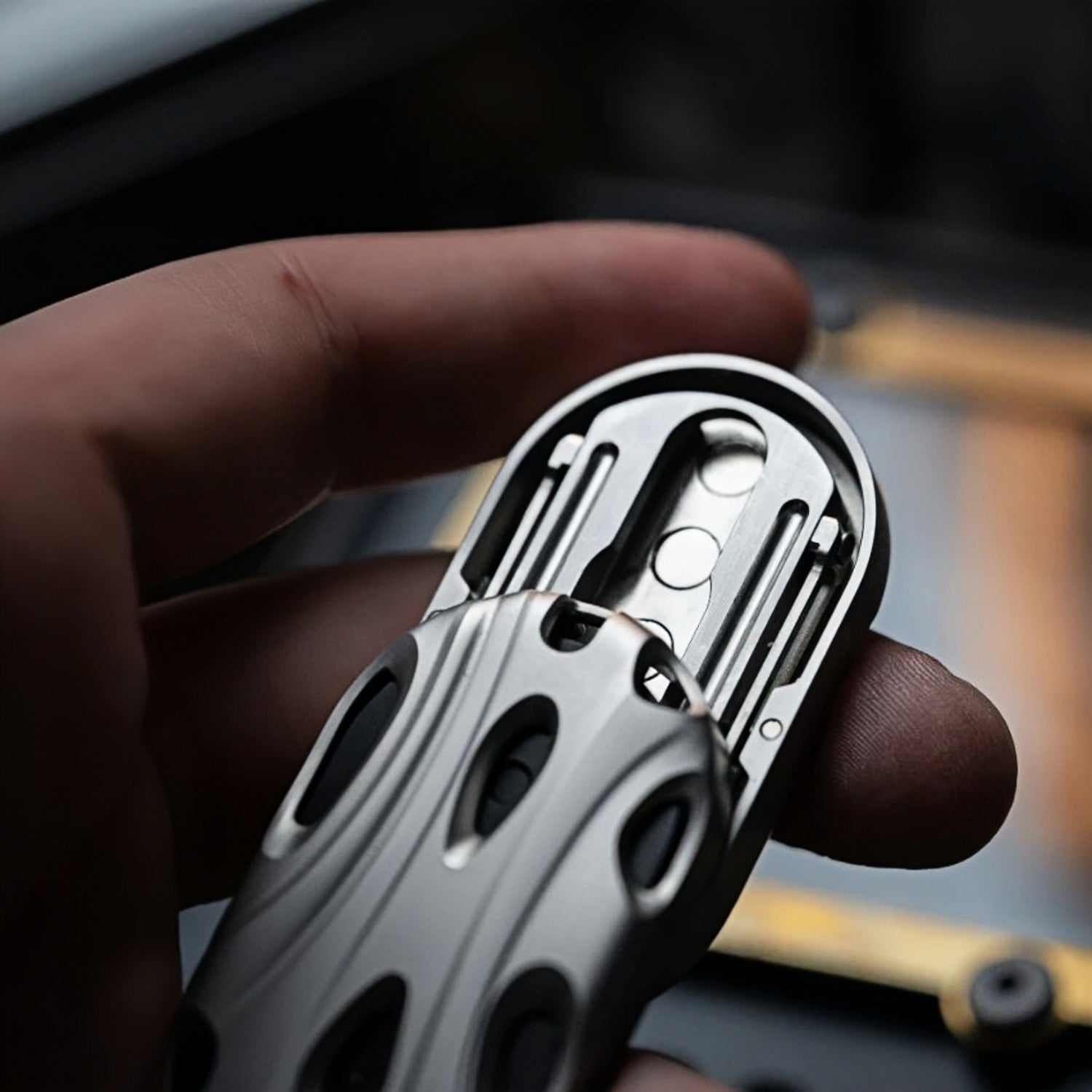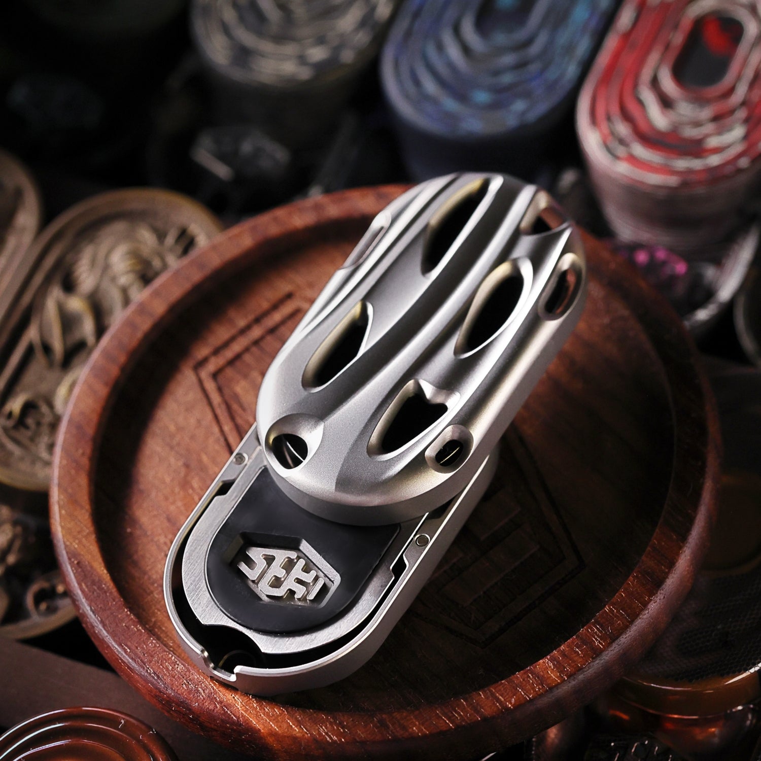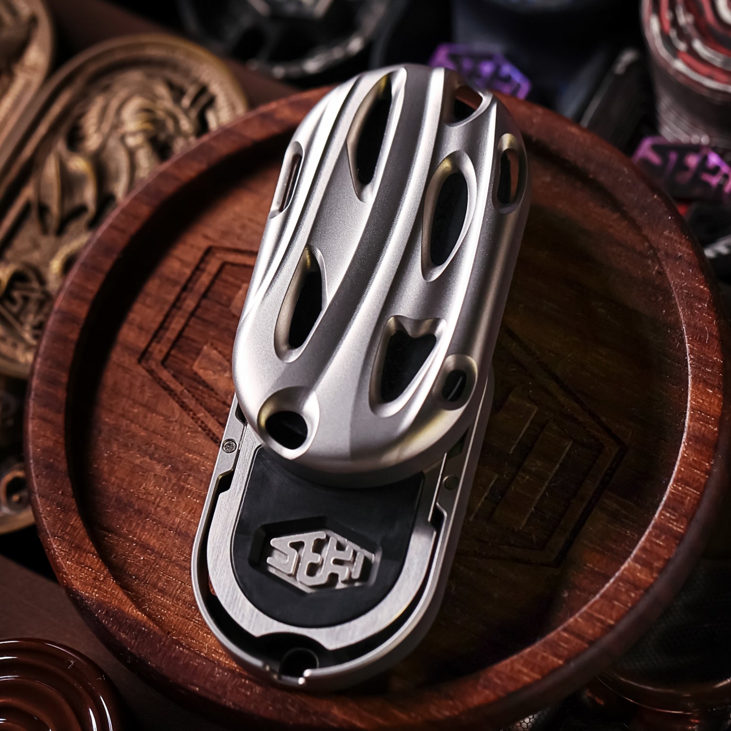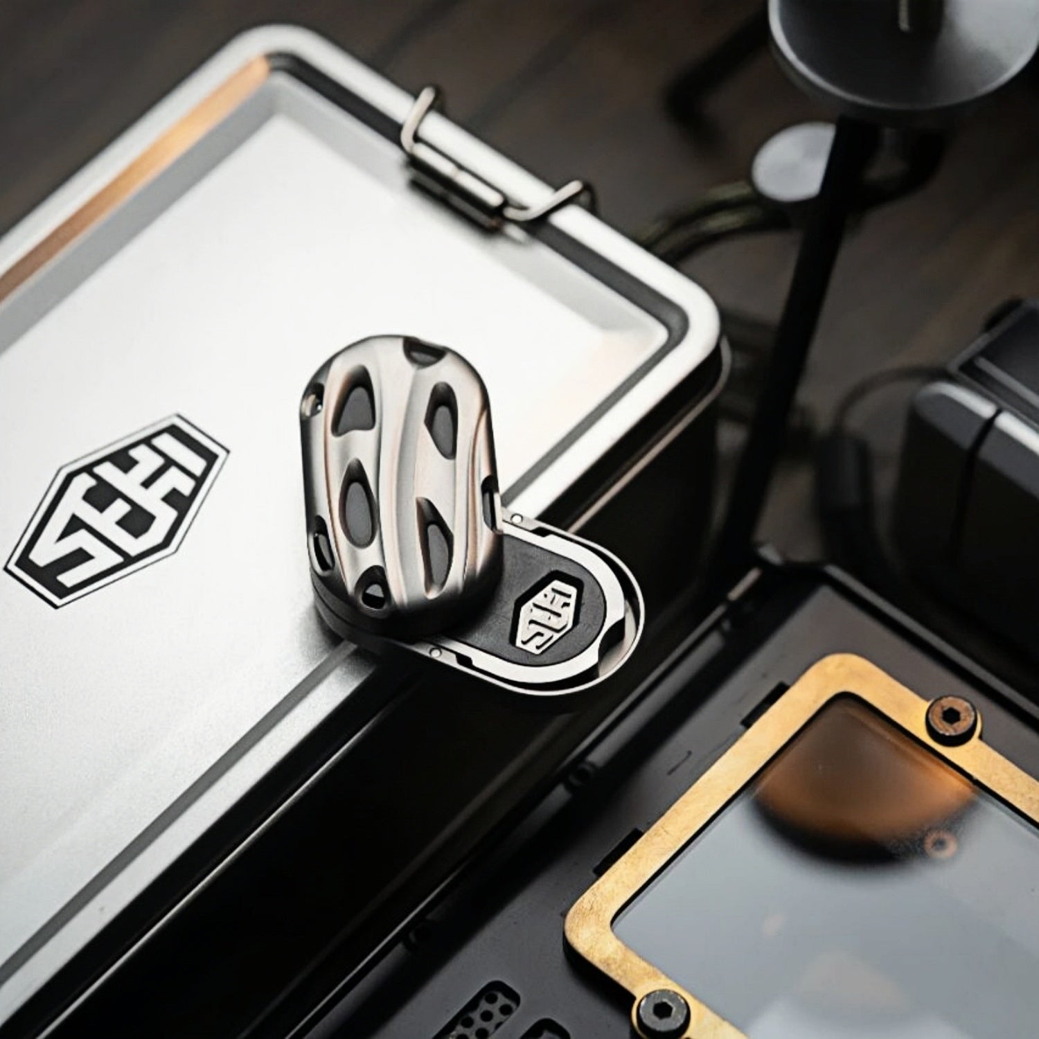 The first-released version is made of SS. It features a sand-blasted, hollowed-out and irregularly-shaped outer shell, paired with a core treated with a black-plating process. The outer shell can be disassembled and replaced at any time. The core is the key to achieving delayed feedback and the Duang effect.