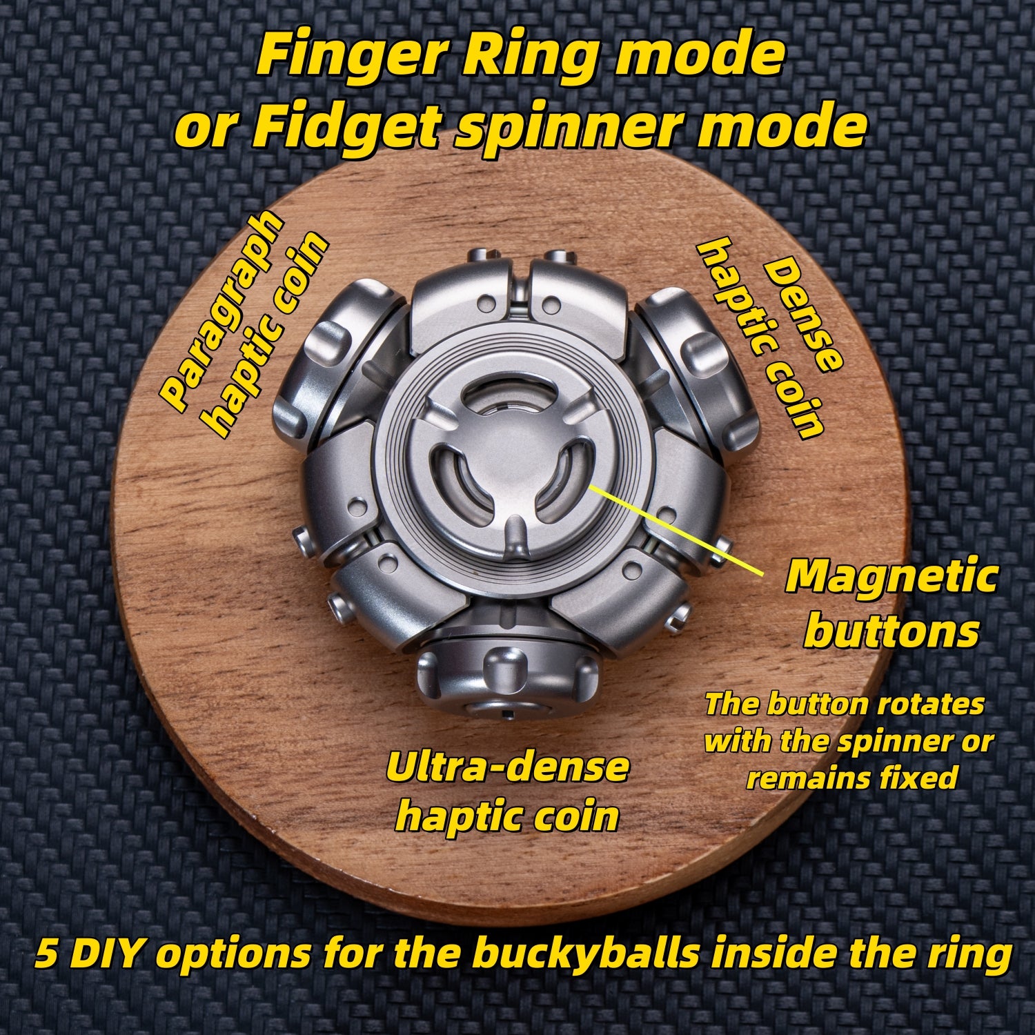 It's a Fidget Spinner. Just install the magnetic buttons, and you can instantly switch between the ring mode and the spinner mode.