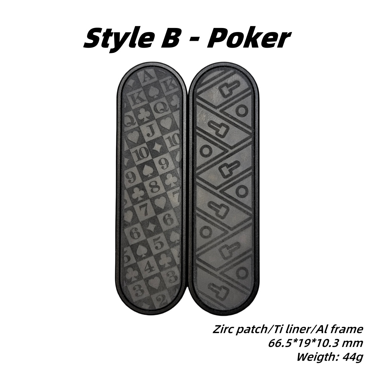 The full zirc version is currently the top-of-the-line version. All of the outer frame, patches and tracks are zirconium alloy with polishing surface treatment. The engraved lines are clearer. The feeling of holding and playing with it is super silky. There's no need to use Teflon stickers.