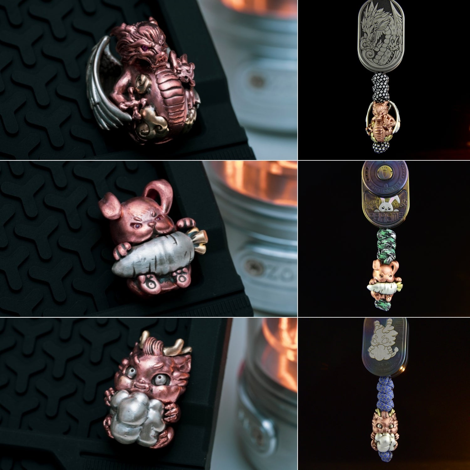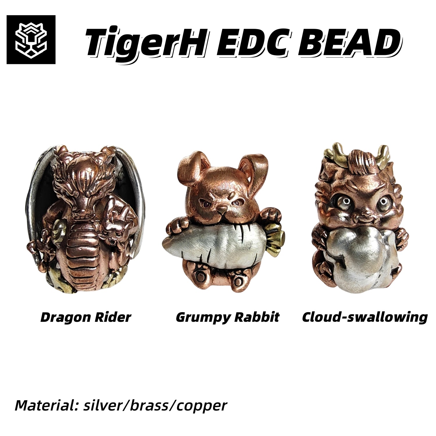 TigerH EDC has designed and produced three types of pendants, namely Dragon Rider, Grumpy Rabbit, and Cloud-swallowing. Each type is limited to 299 pieces globally.