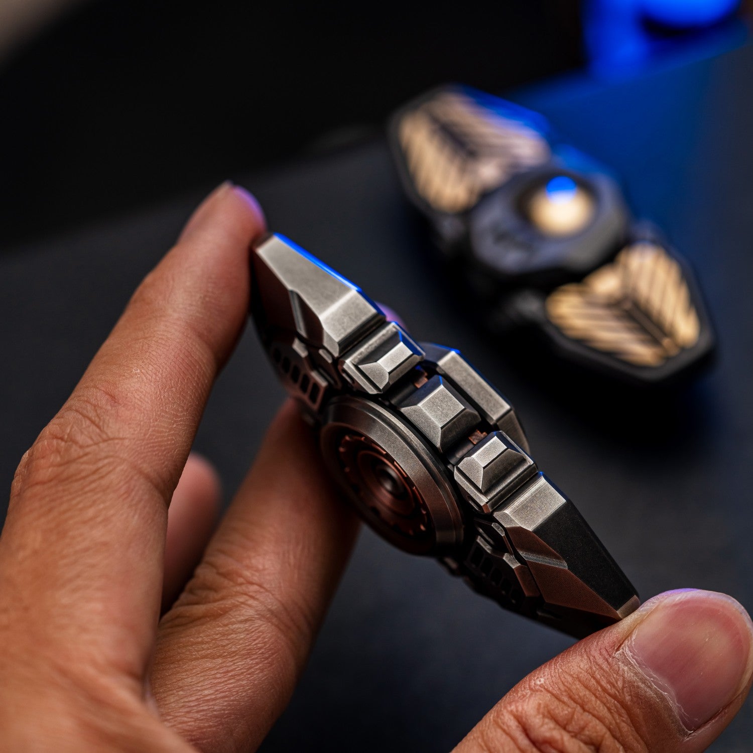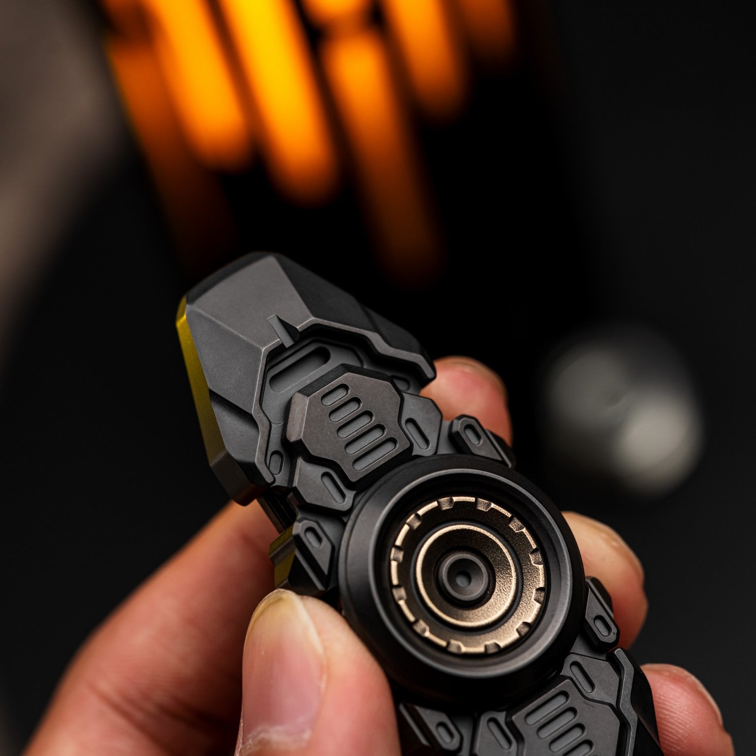 The track uses POM beads, which have a soft texture and can effectively avoid deformation caused by impacts. We also do not recommend replacing ceramic or steel balls on our own. Internally equipped with 12×2mm and 6×1.5mm tritium tube slots. It's cool to light up while the spinner unfolds.
