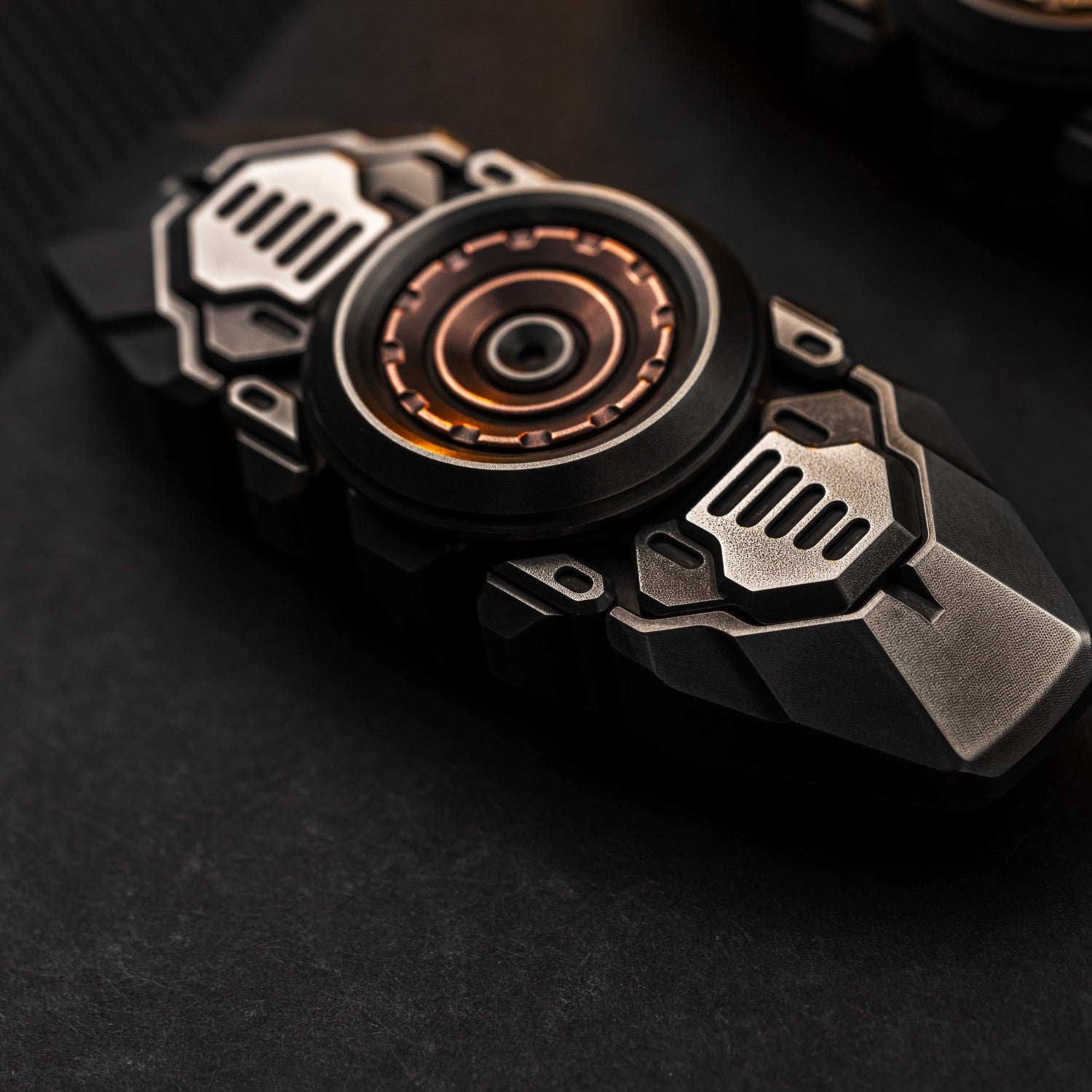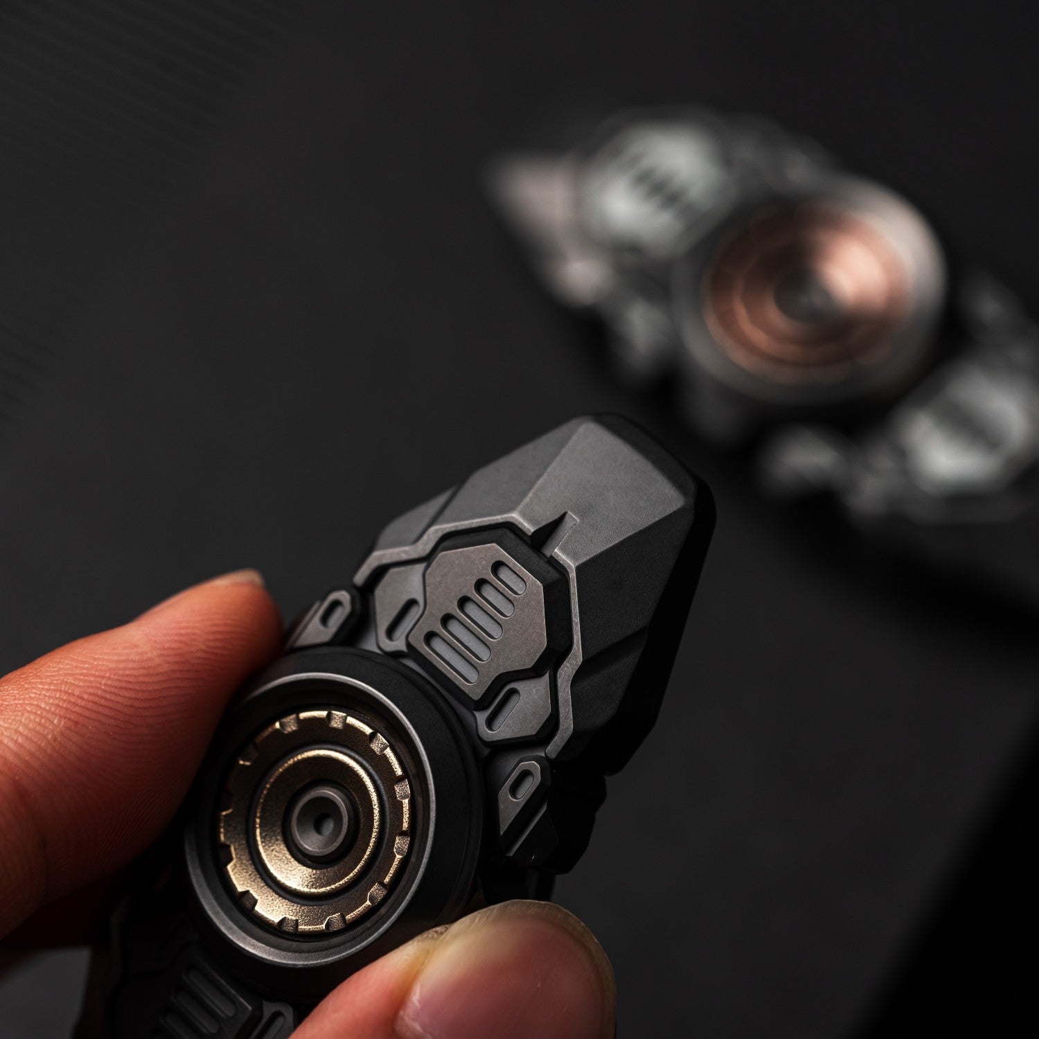 In terms of structure, this is a stretchable spinner. When spinning, the nail plates on both sides will extend. The internal structure is the common design of beads and tracks for sliders. This structure can effectively avoid direct friction between the main body and the nail plates, while also improving the smoothness of the plates when thrown out.