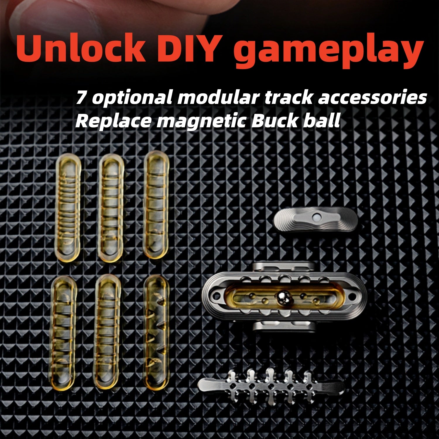 There are seven types of modular track accessories that can be replaced to unlock the Buckball gameplay. The feeling and sound of each track are different.