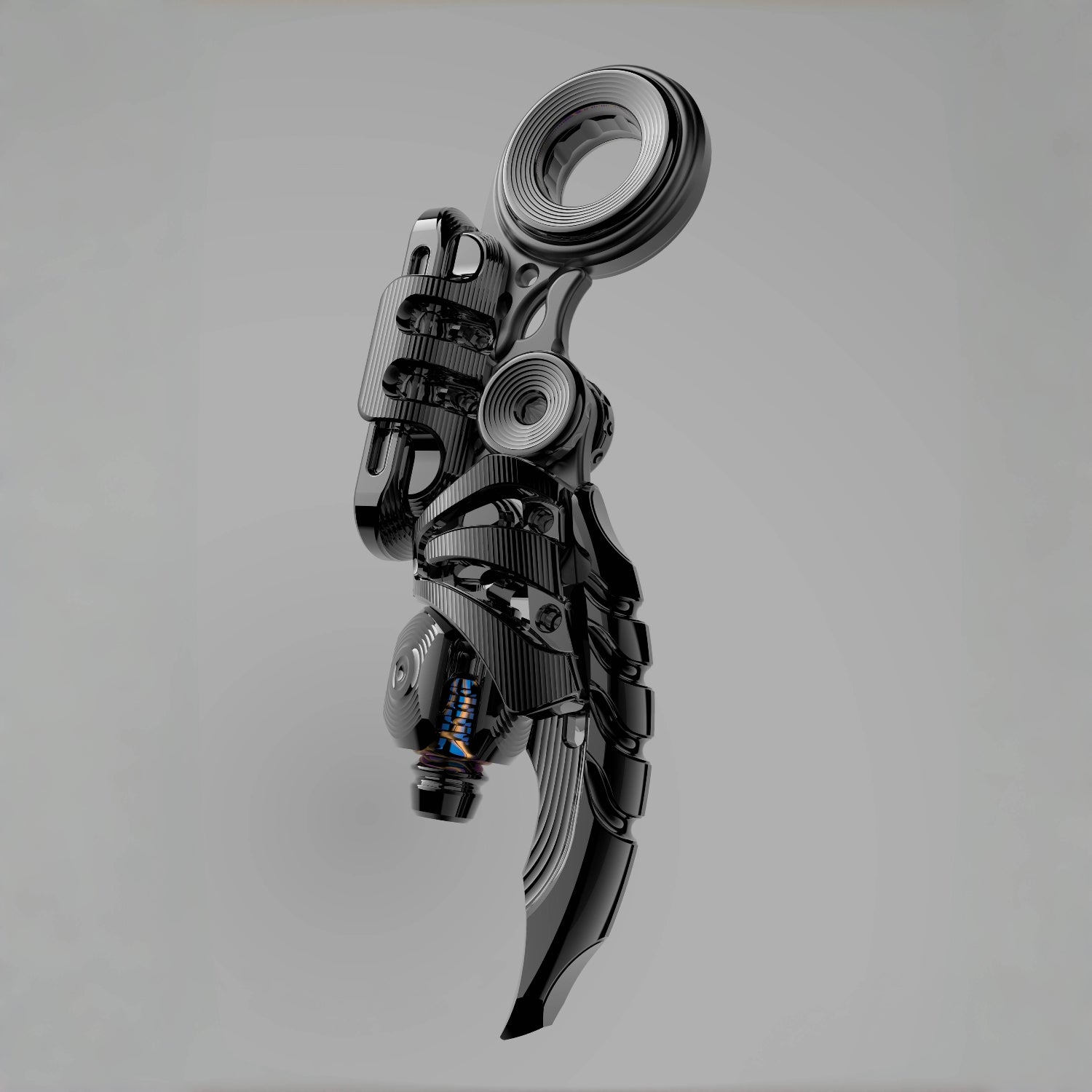 The appearance combines the alien design style with the mechanical style of bio cyber. The overall image is steel ribs wrapped around the spine, with the reactor heart beating within it. It also has an aggressive silhouette of a face hugging bug, combining mechanical regularity with biological lines. You can see the heart beating continuously through the gap between the exoskeletons.