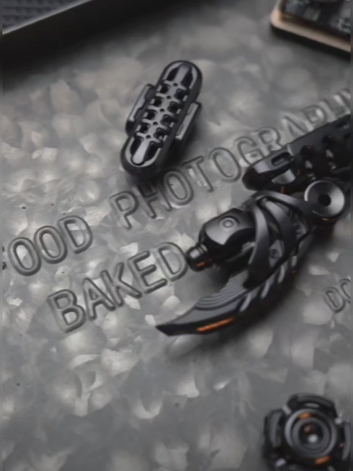The EXOSKELETON zirconium version uses a new smooth surface treatment technology. Compared with the traditional polishing technology, the smooth treatment technology can penetrate into the complex surface of the metal without blind spots, making the object surface more uniform, the inner side of the track smoother, and the corner details better preserved.