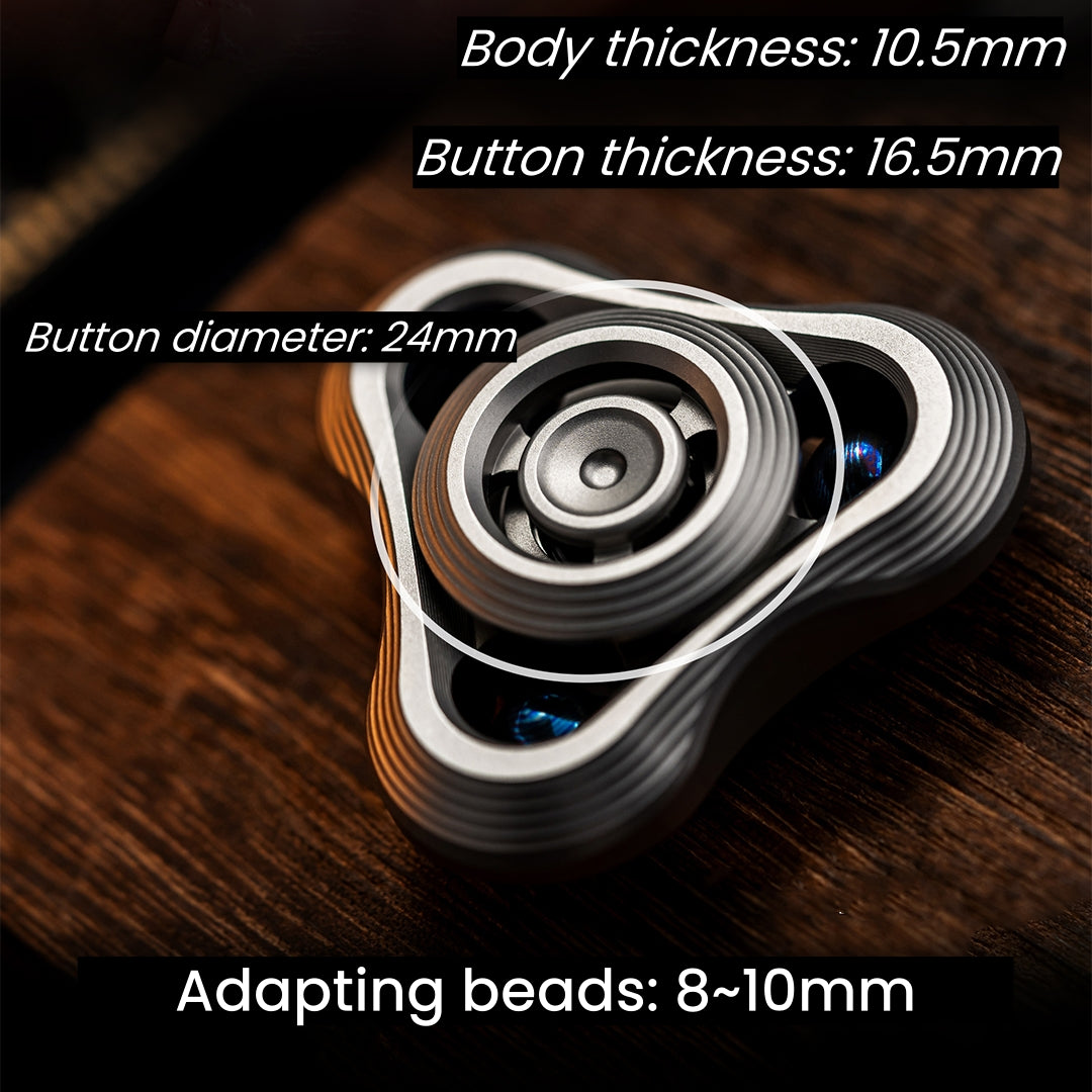 Shockwave is a three leaf spinner with bead grooves. The hollow buttons and the main body design language are unified. Their outermost layer has a stepped shape, full of sophistication. Overall rounded without edges and corners, which makes it feel very smooth when touched. The button is concave in the middle, providing a strong sense of security when held.