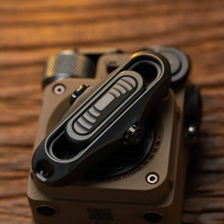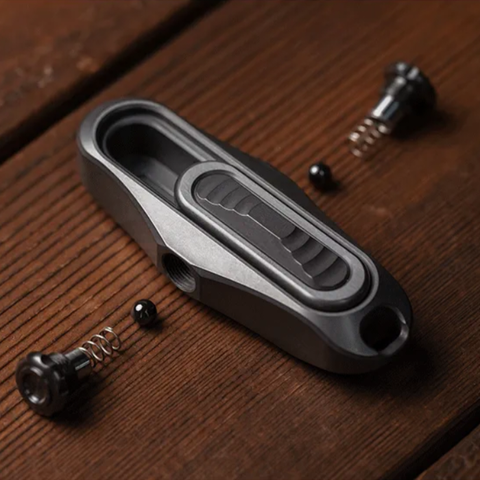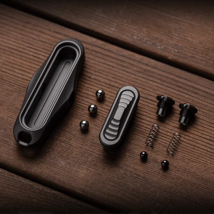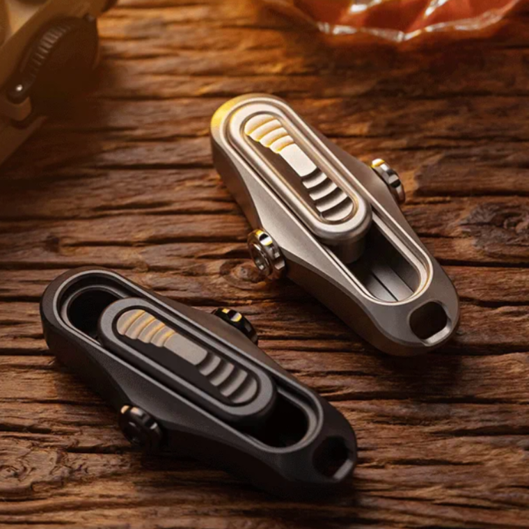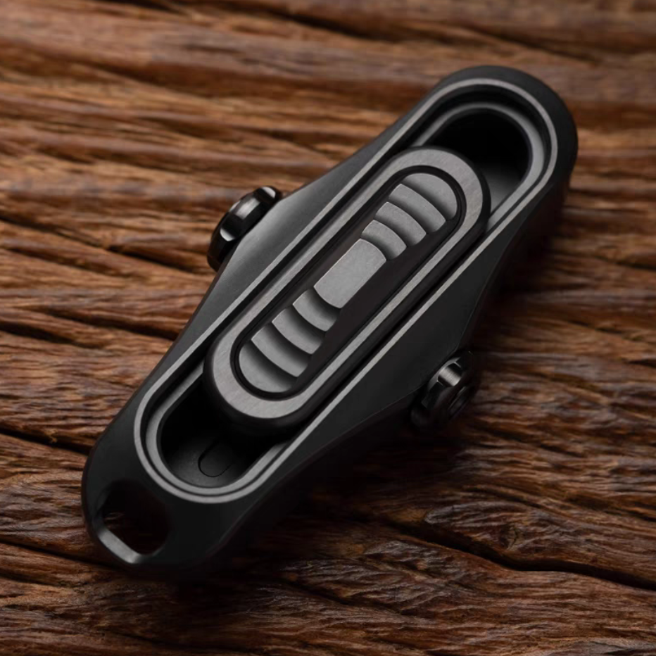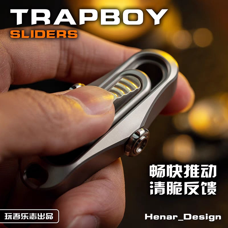 Trapboy is a mechanical structure slider. The journey consists of four sections. The force can be adjusted through the knob on the side. The hole at the tail can be used to thread the lanyard.