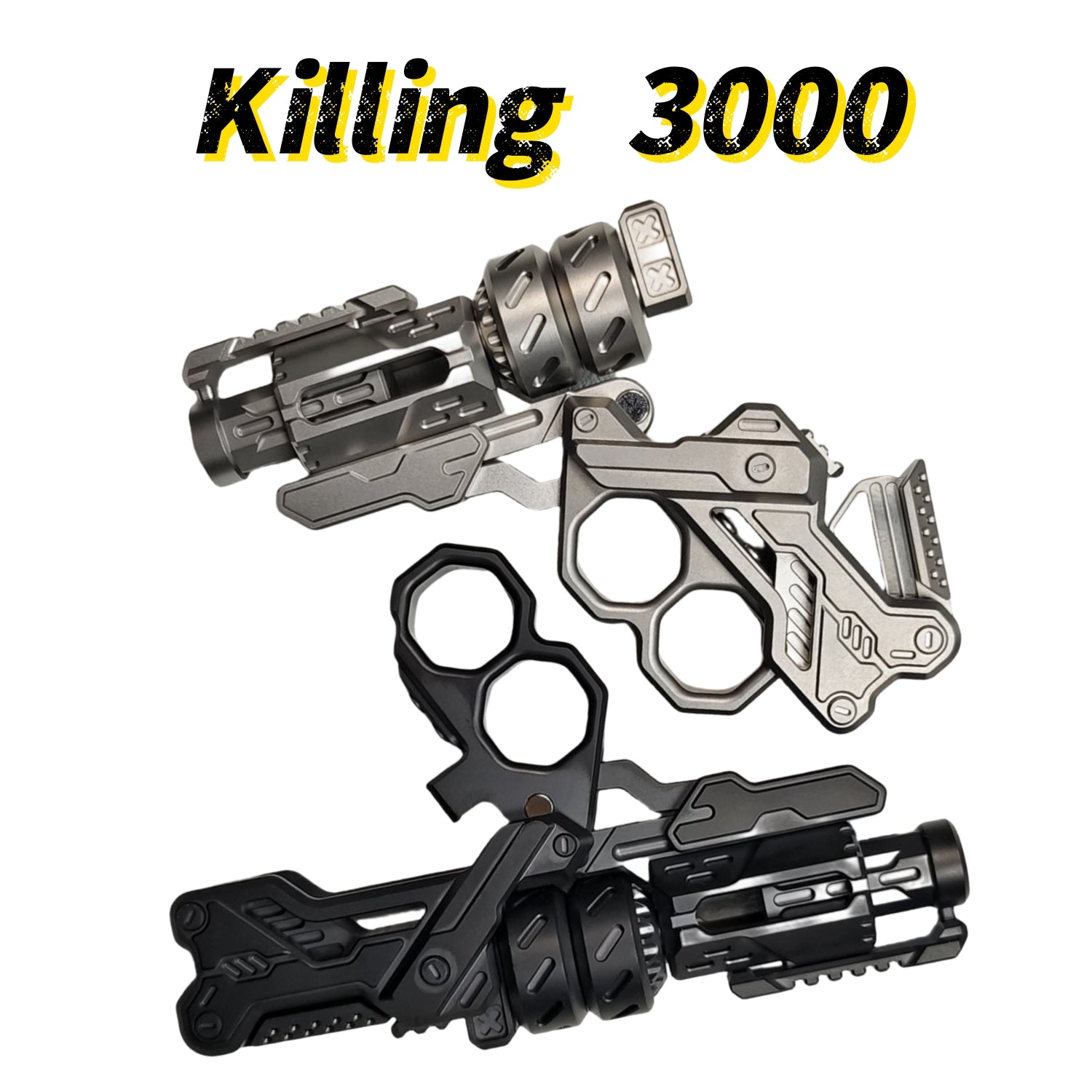 Killing 3000 is a metal composite toy model. The inspiration comes from the Winchester M1873. The grip feels tightly fitted to the gameplay. The appearance is endowed with a strong sense of weaponry. The weight and feel achieve an ultimate balance.