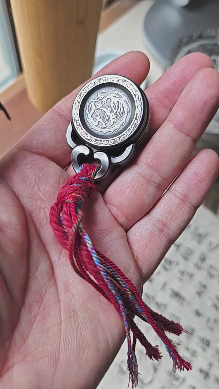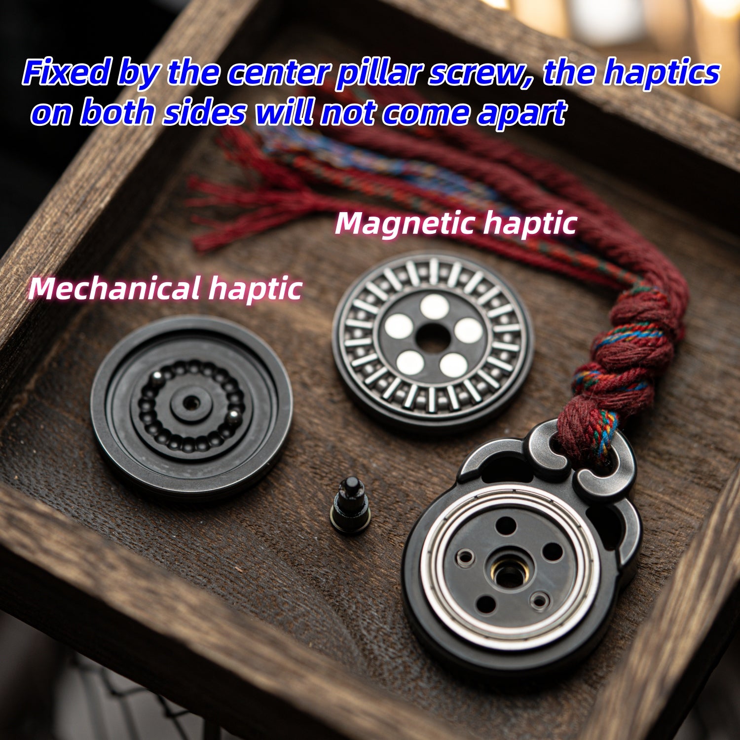PanYun is a transliterated name. In Chinese, it means playing with clouds. One side is a magnetic structure haptic. The other side is a bidirectional mechanical ratchet structure haptic. Both sides can rotate in both directions. Tassels have been tied on when it left the factory.